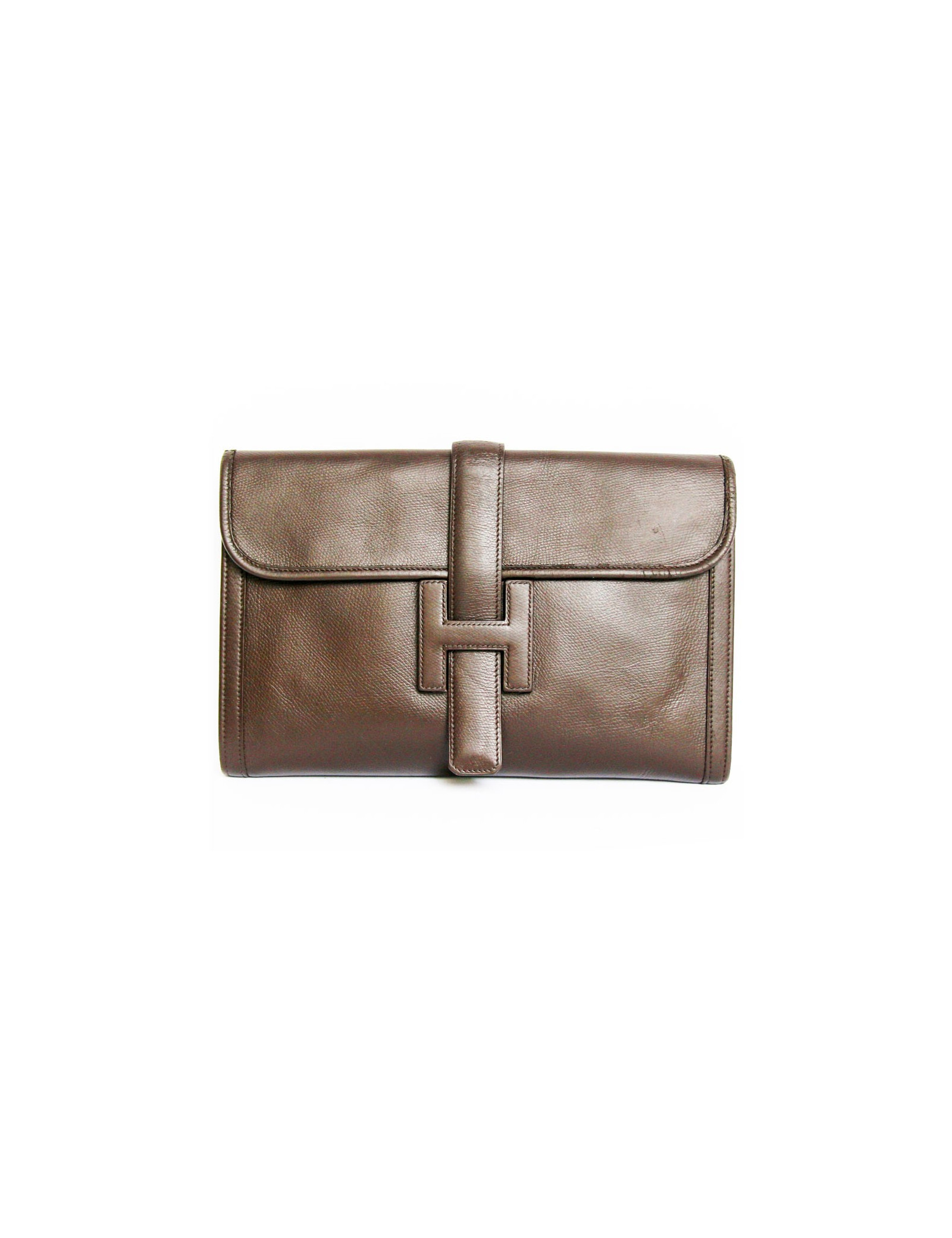 Chocolate brown leather HERMES Jige pouch