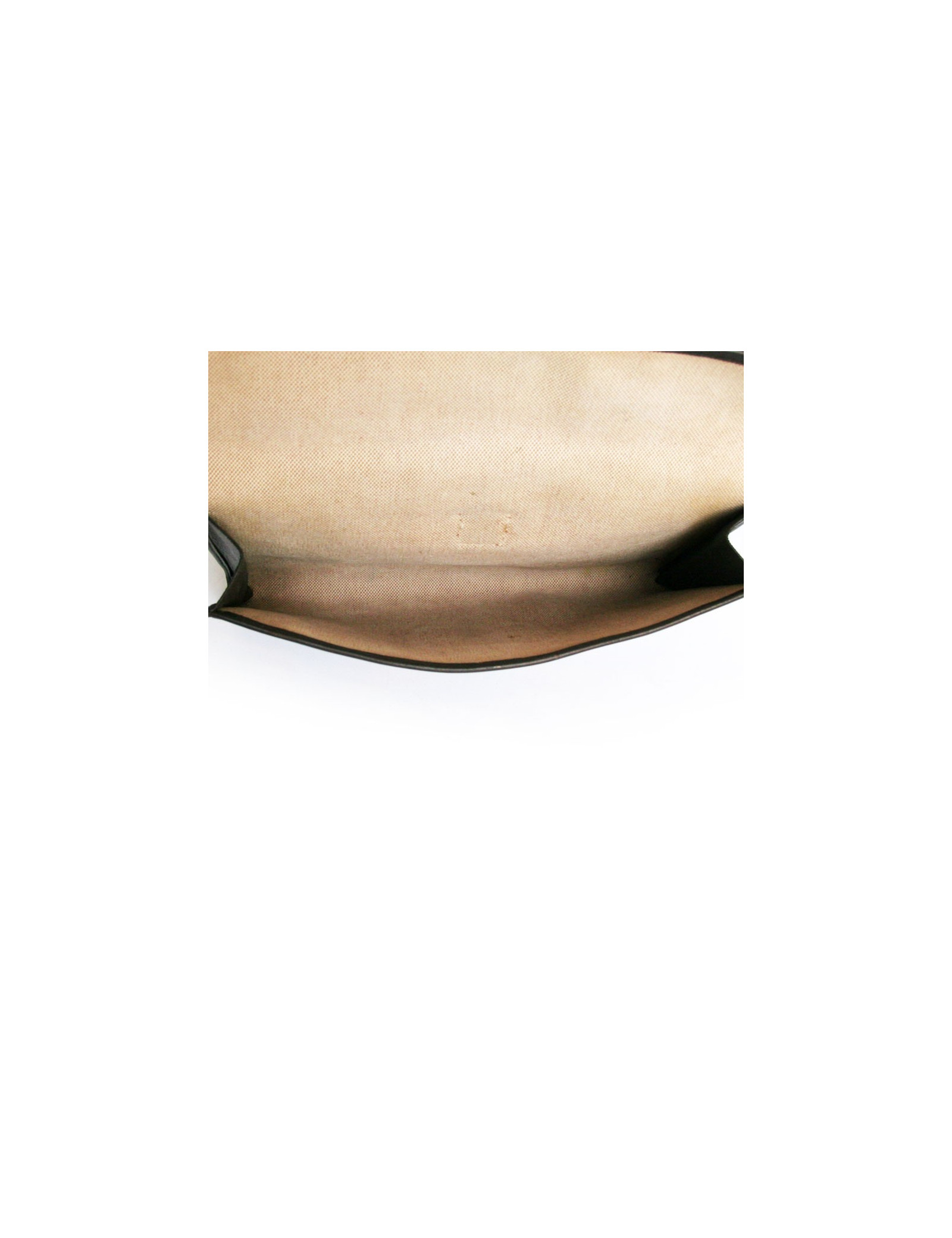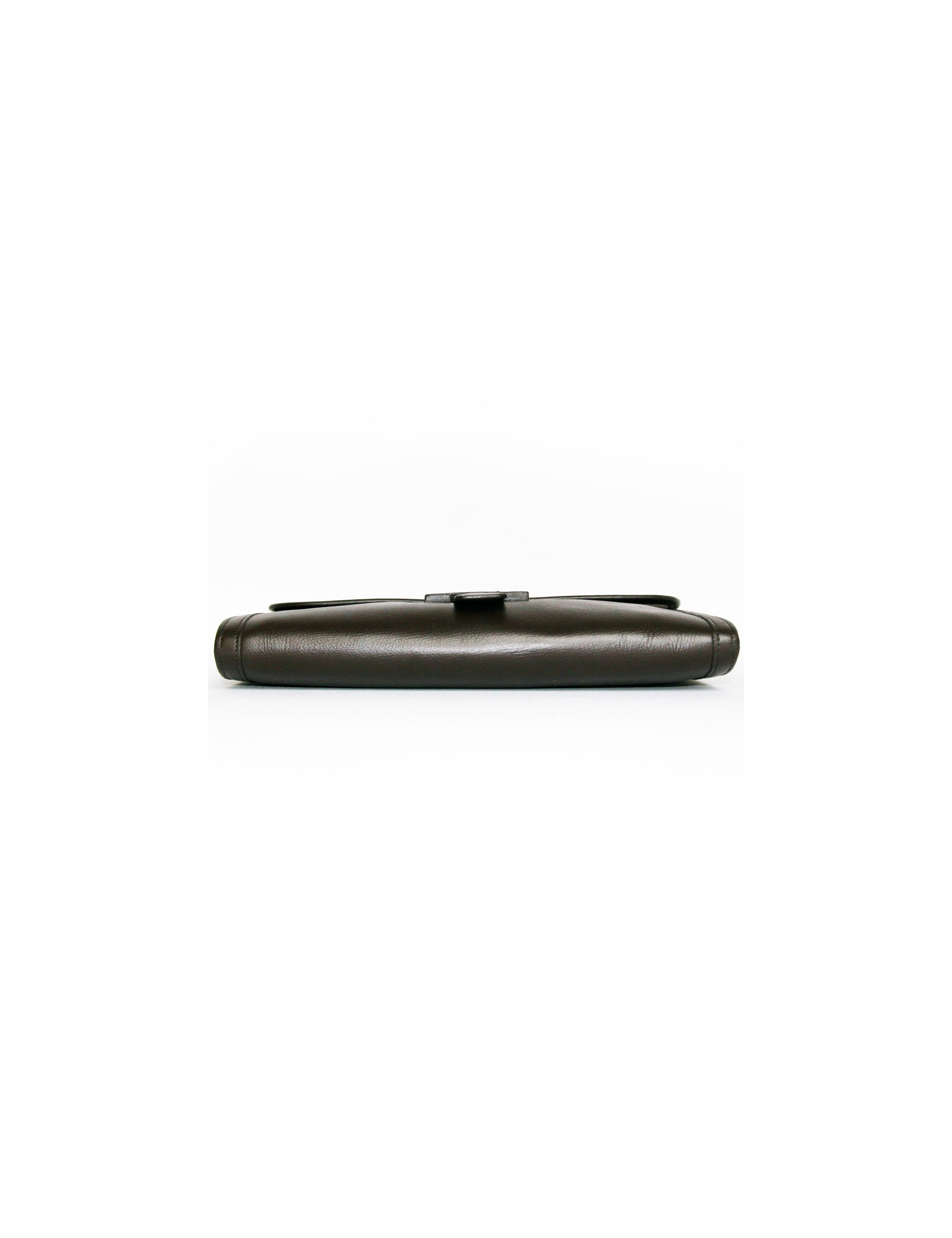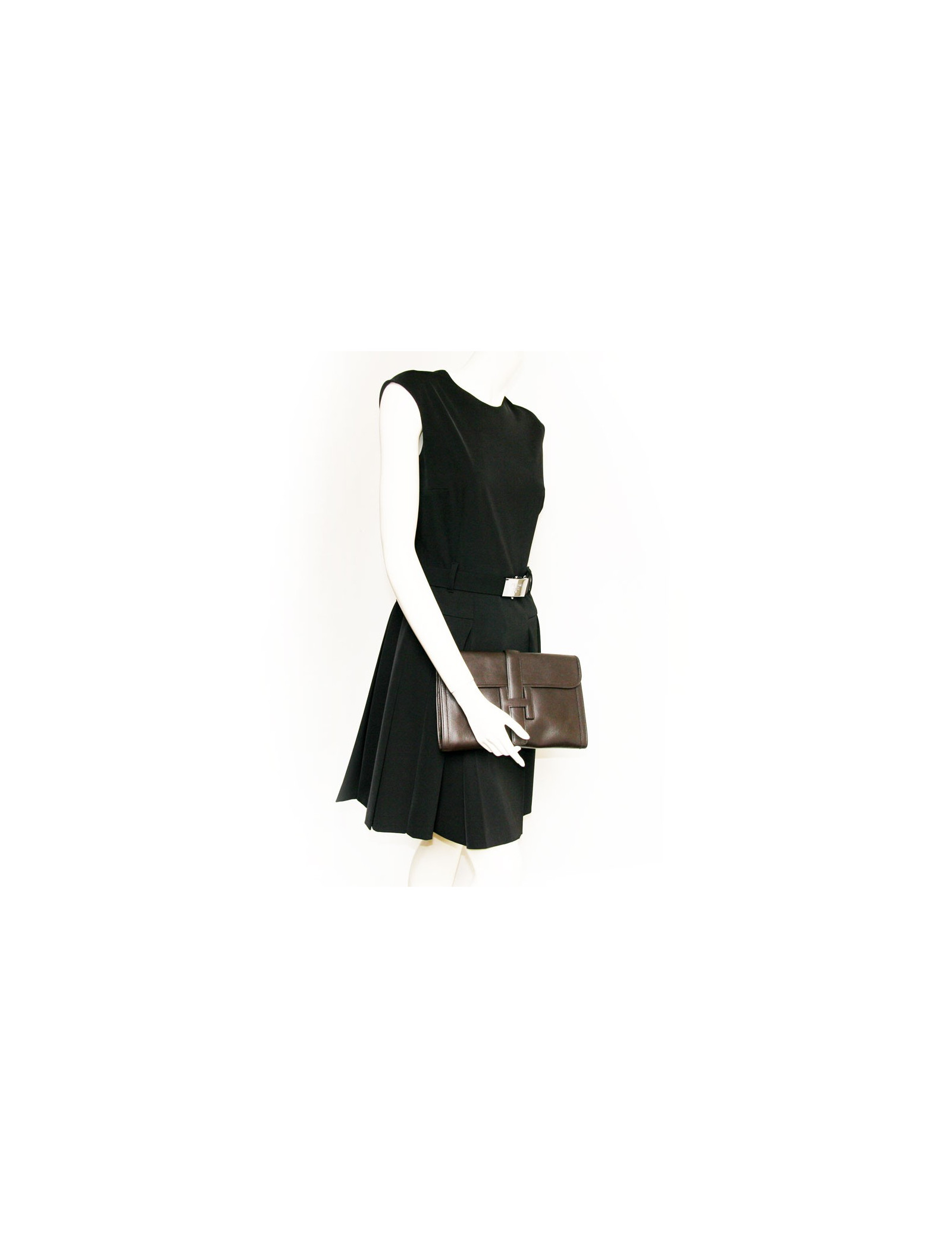 Pouch Jige of Hermès in chocolate brown color leather. The Interior is beige canvas. Letter G in a round.