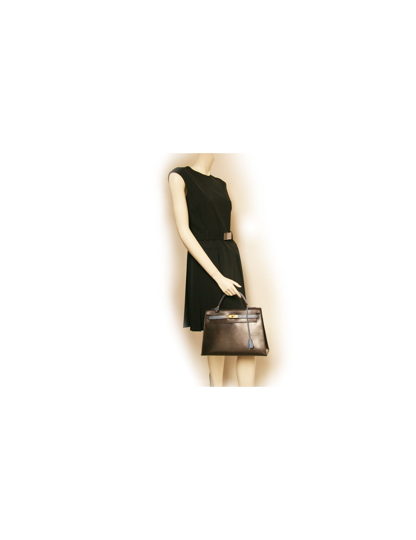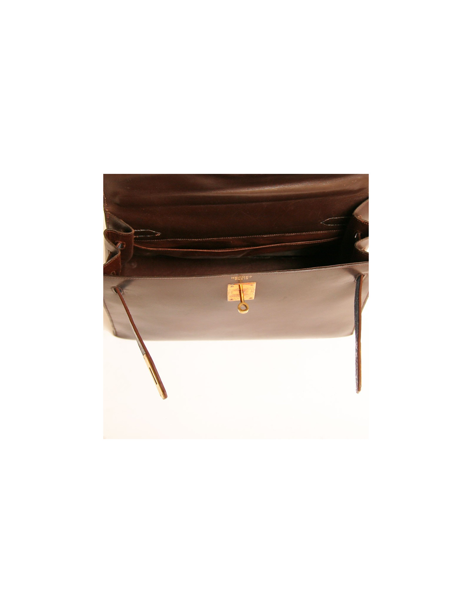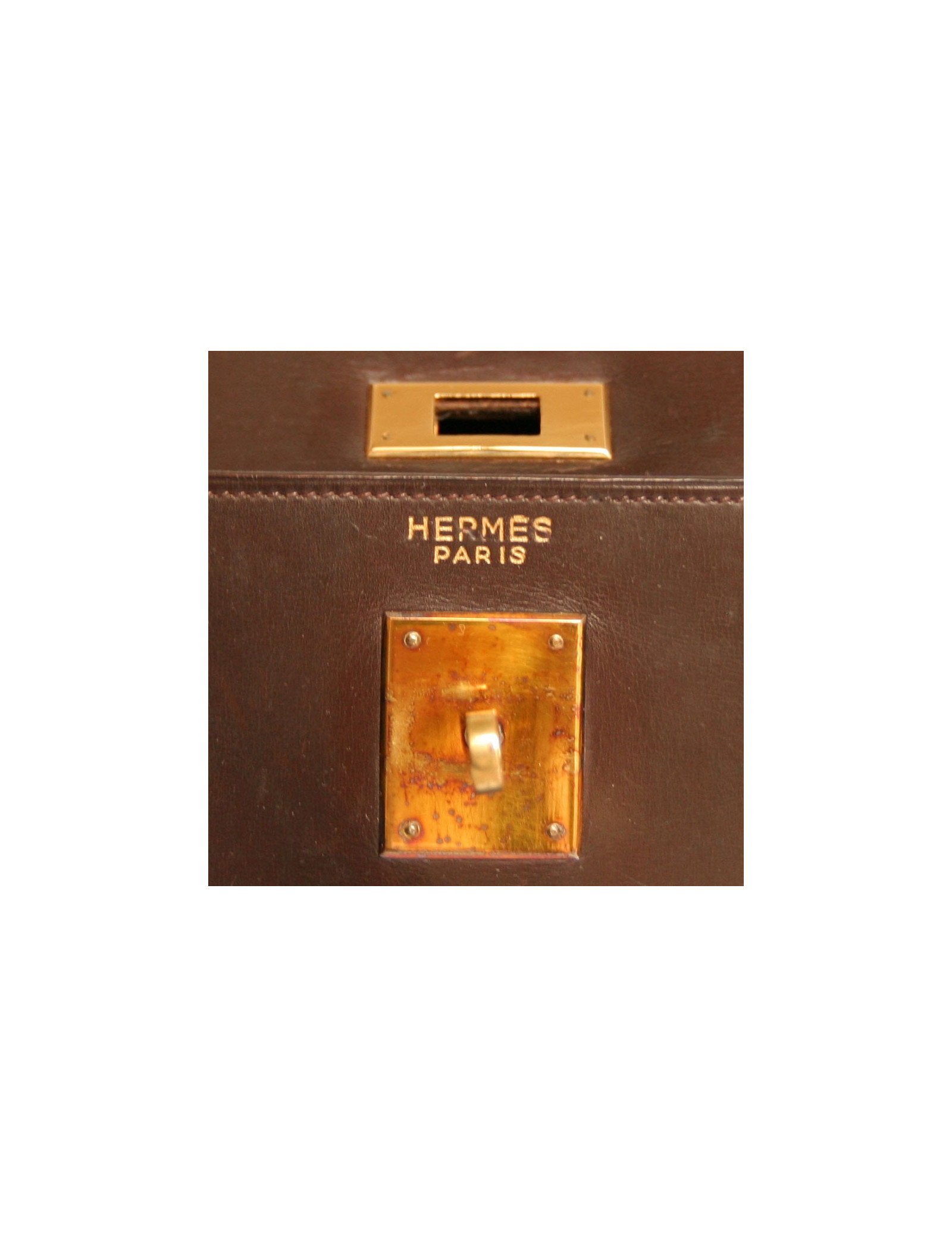 Sublime bag Kelly sellier 32 HERMES, vintage Brown with links box and Cove in crocodile blue jeans (probably made by a craftsman)