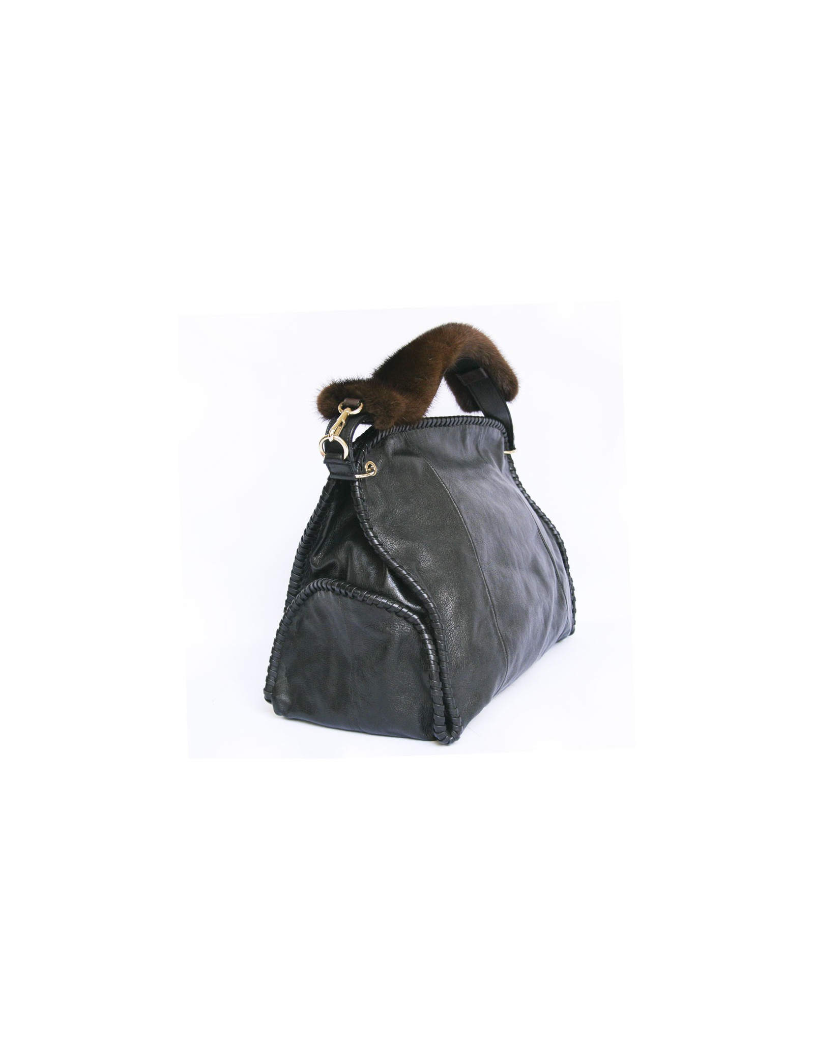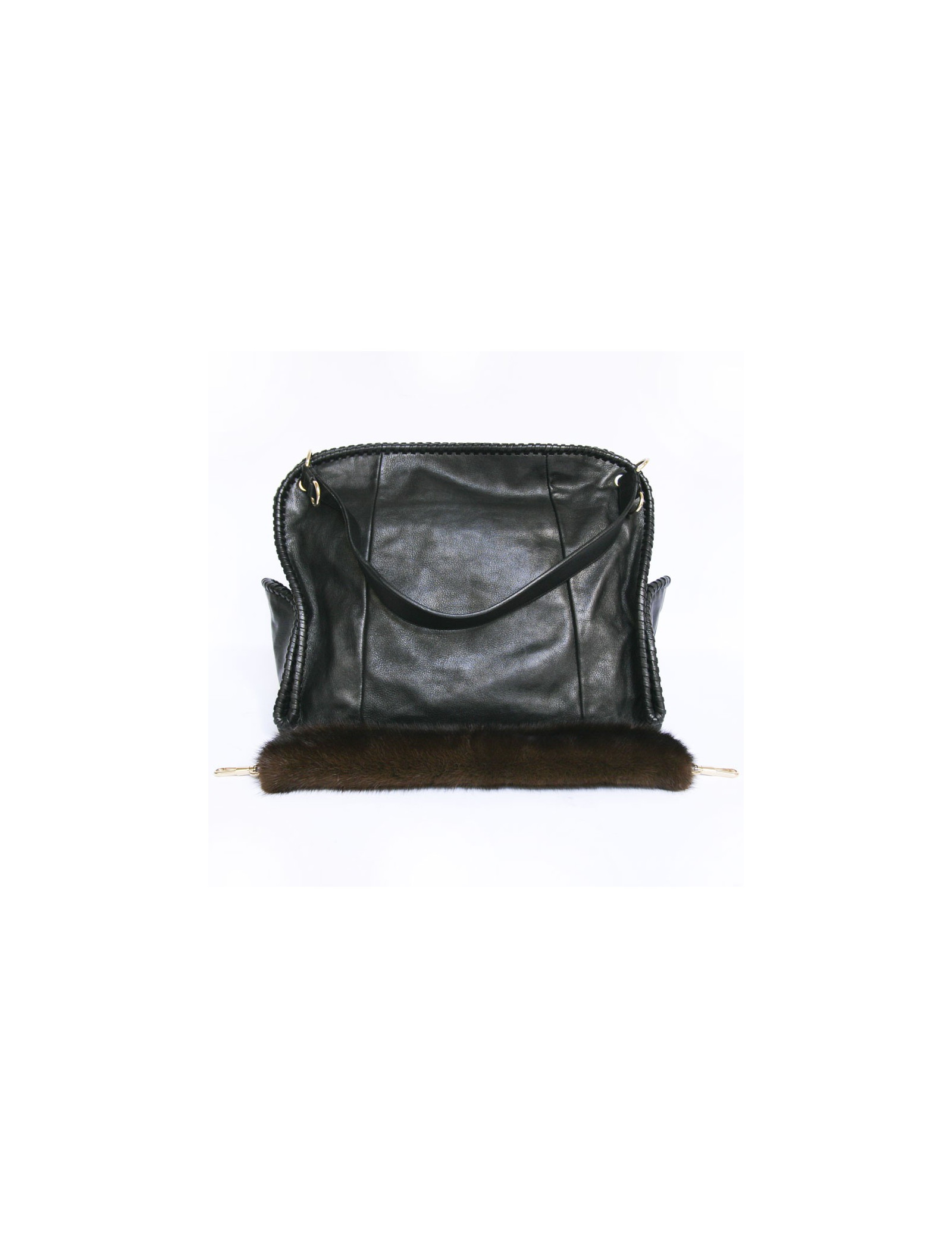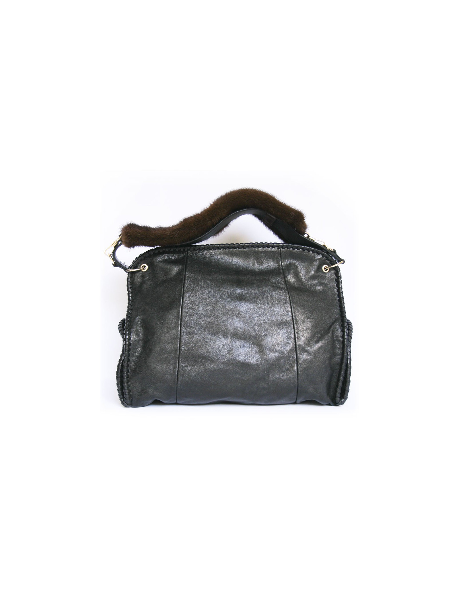 The House Yves Saint Laurent in black leather and mink tote bag. Very convenient for everyday life because it can contain all your accessories. All the way round the bag is leather braid. A snap closure. The Interior is black satin with a large zipped pocket. The hardware is gold metal. He wears shoulder using a shoulder strap. It is covered with a removable mink skin if desired. In very good condition.