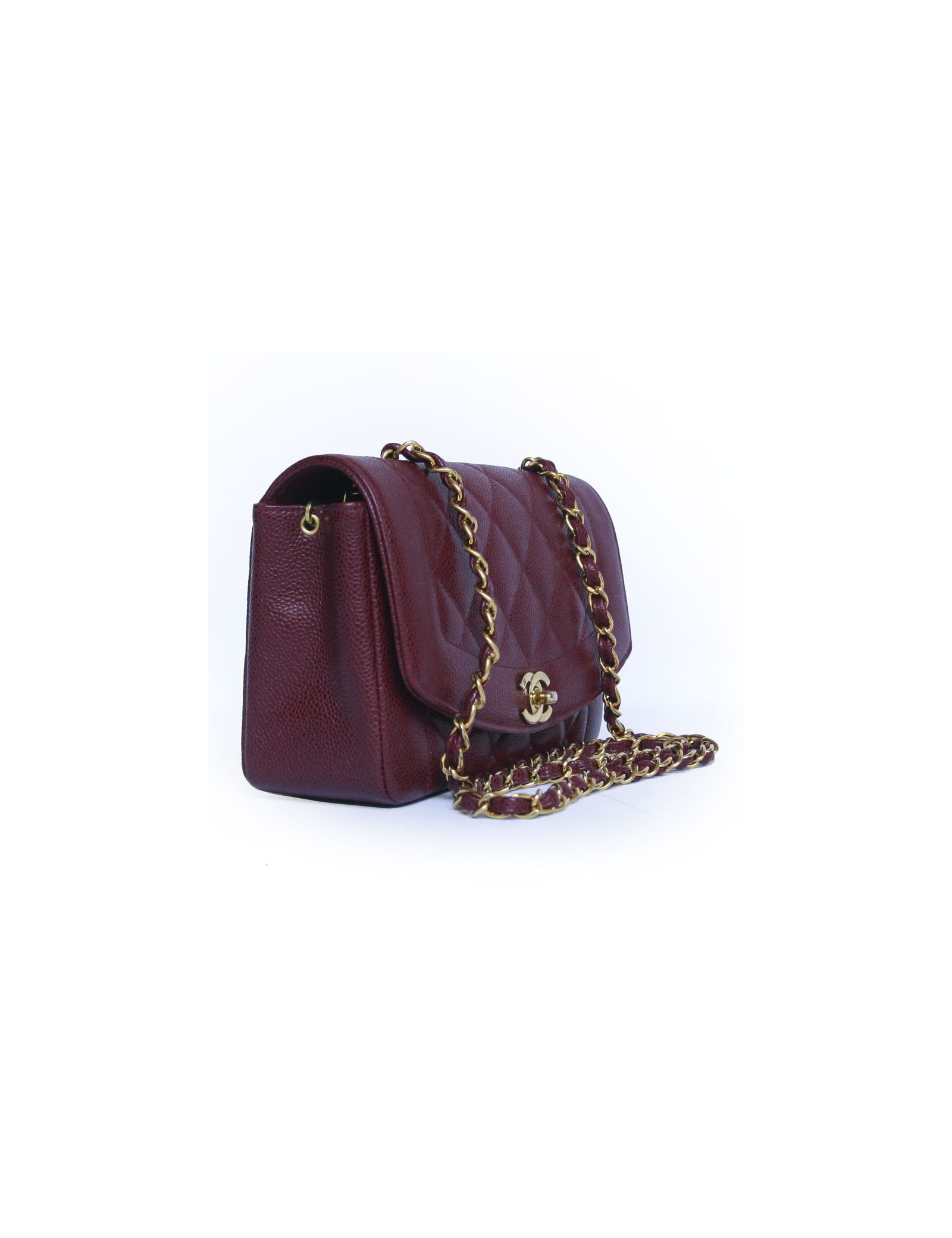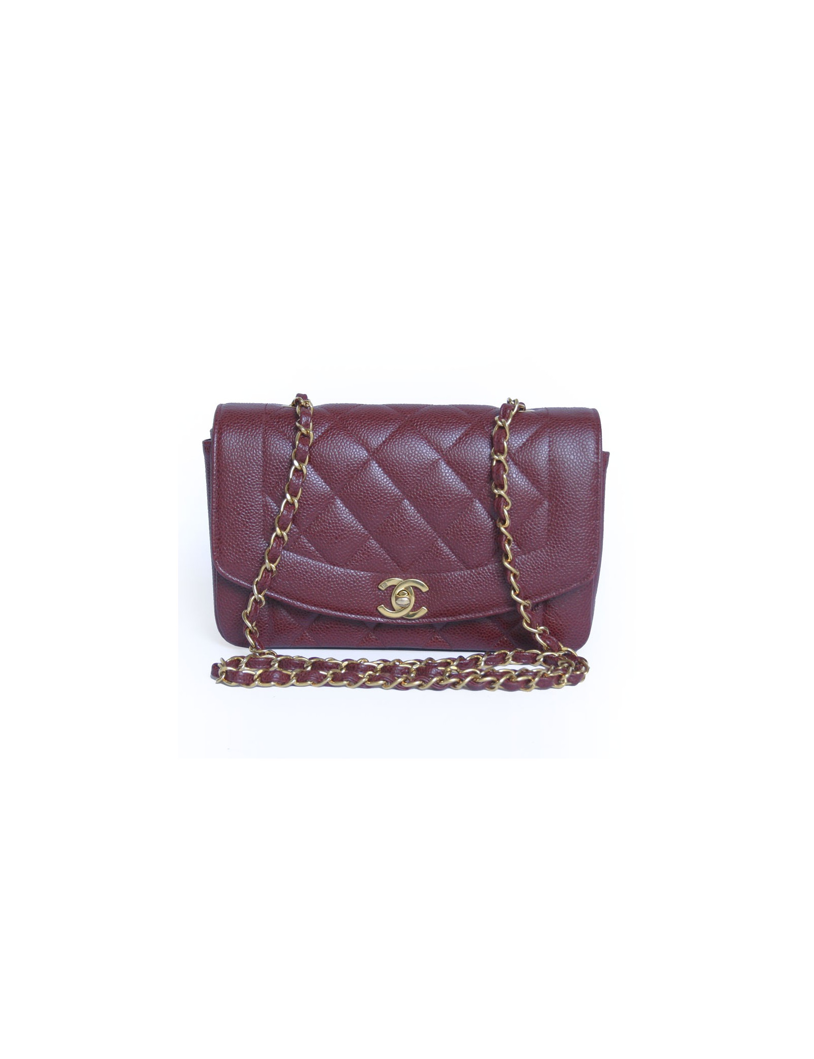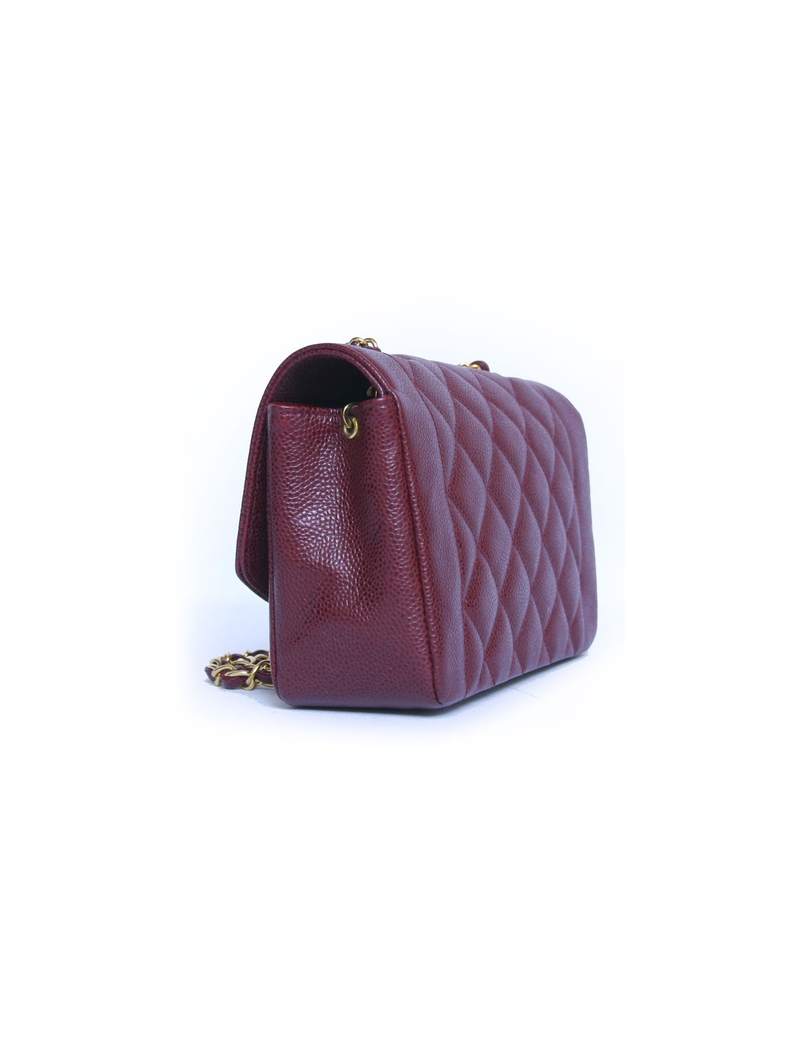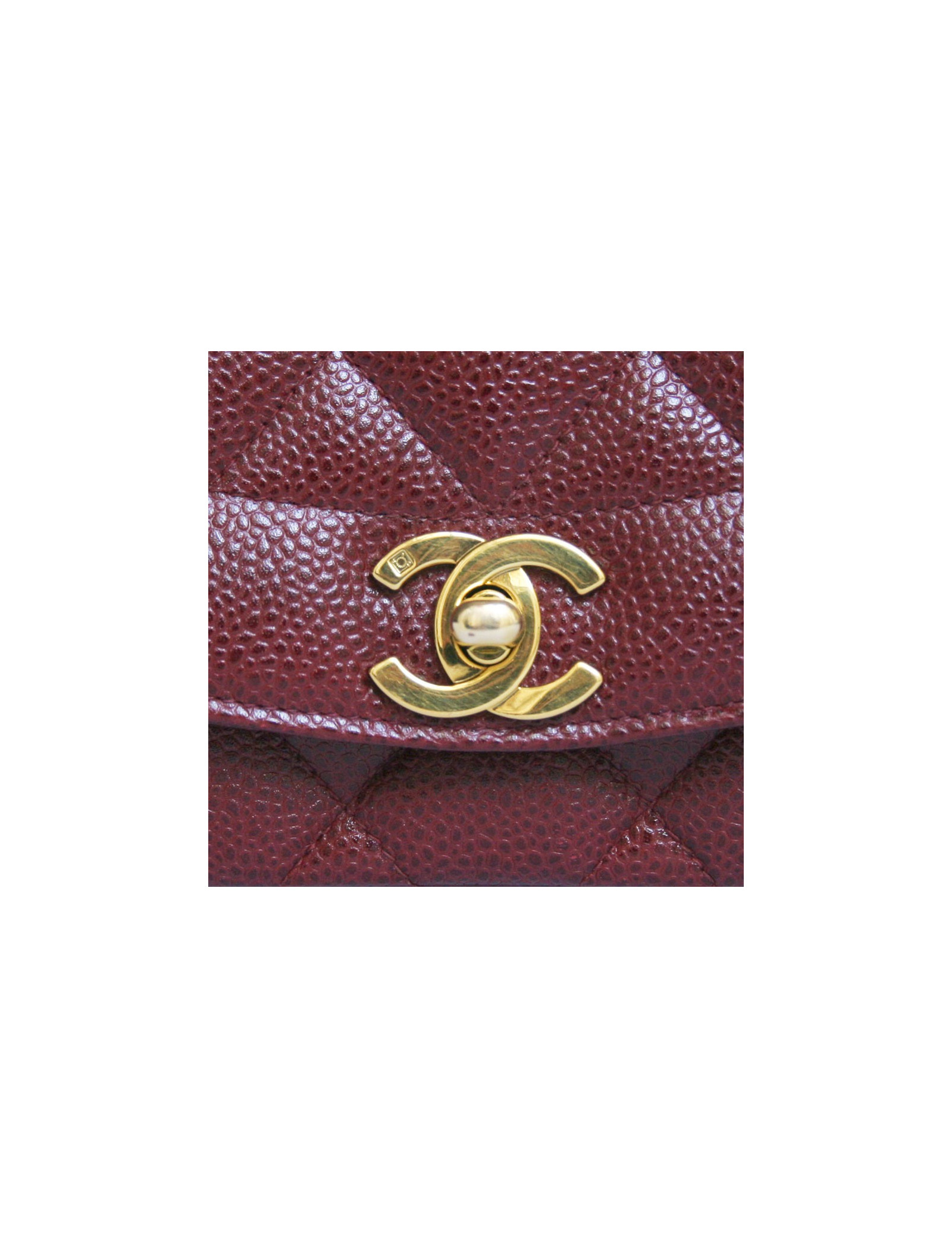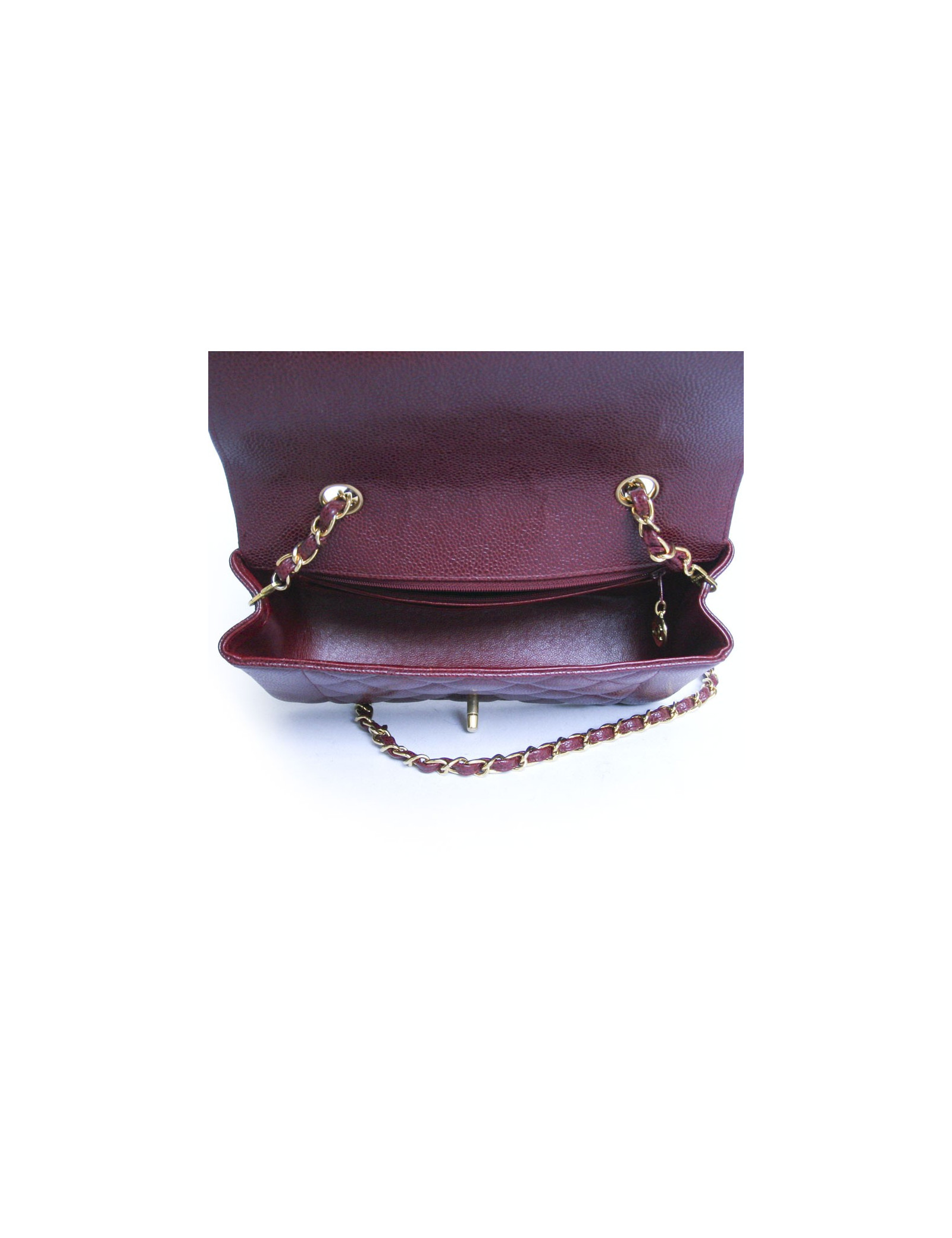 Timeless Chanel bordeaux caviar leather bag. The fittings are in golden metal. Two inside pockets including one zipped. Closing "CC". He wears shoulder using a chain and leather shoulder strap. Hologram 28... In very good condition.