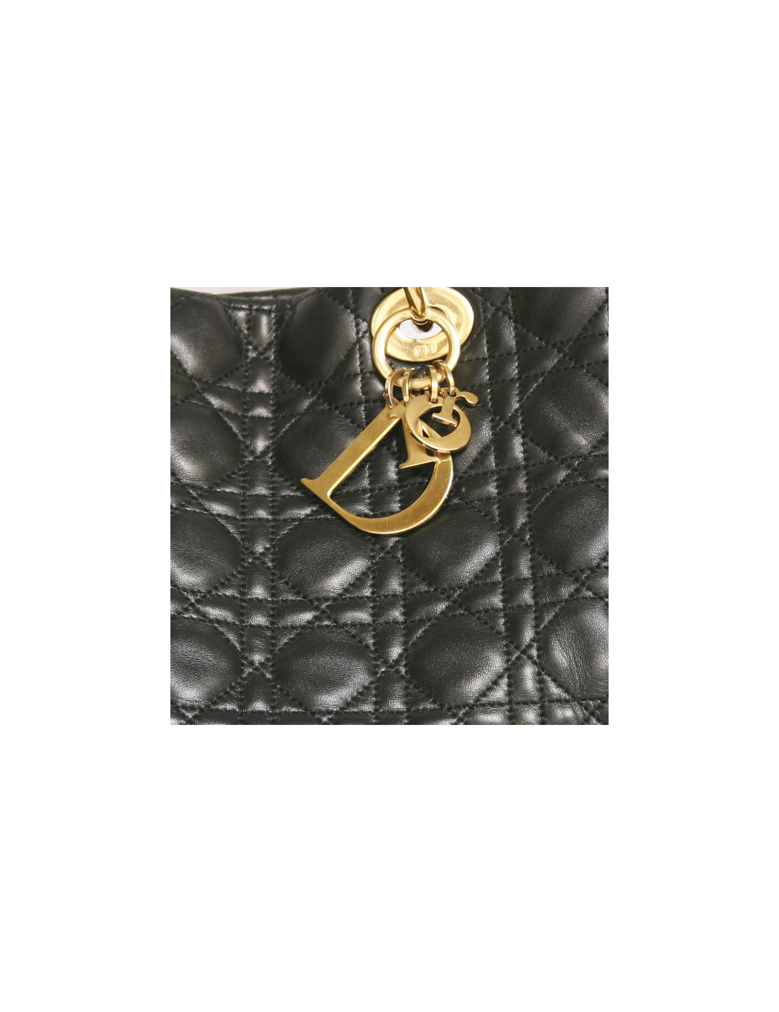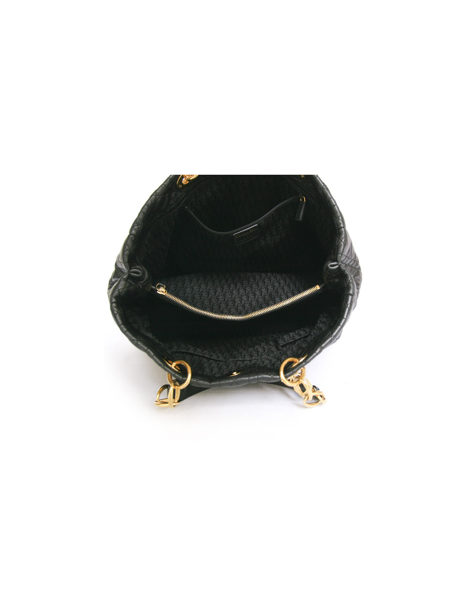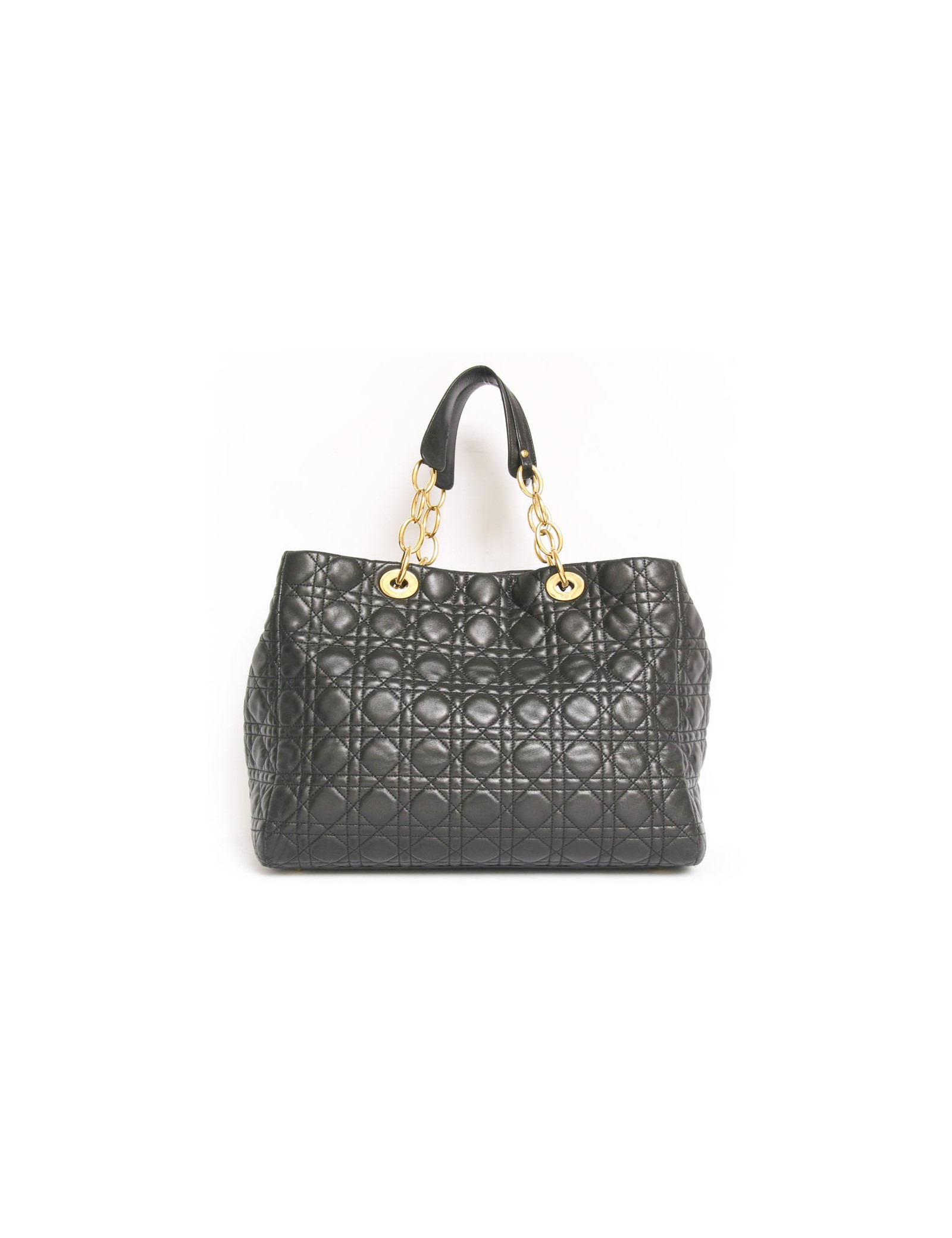 Tote bag by the House Christian Dior black cannage leather. The jewelry is gold metal. Magnetic closure. The Interior is black monogram canvas with two storage spaces separated by a large zipped pocket. There are 3 pockets including one zipped. Double handle. In very good condition. Map of authenticity.