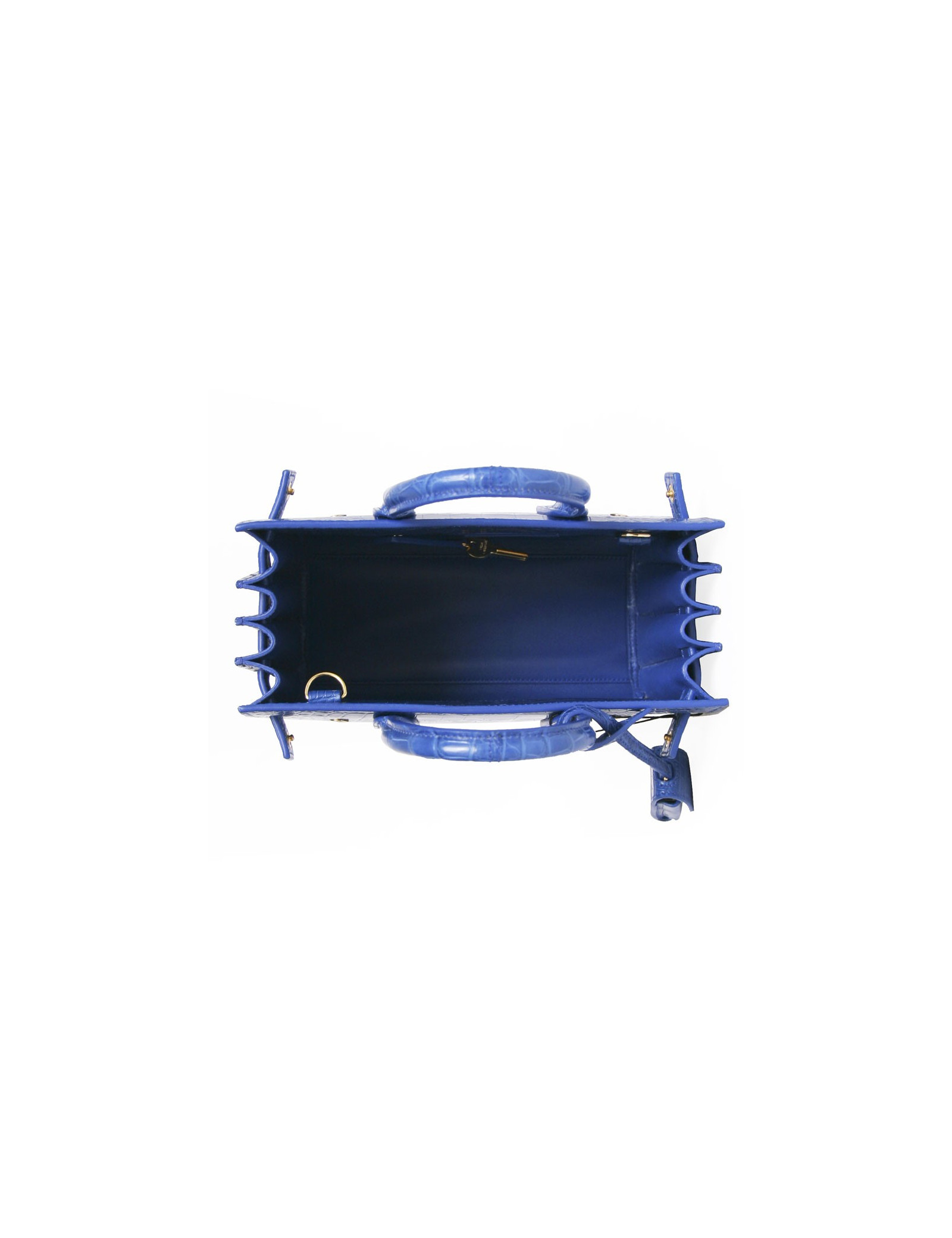 Bag 'baby' bag of day of the Lawrence House in Royal Blue crocodile. A true gem! It is handmade using a double handle as well as the shoulder through a removable shoulder strap. New condition.