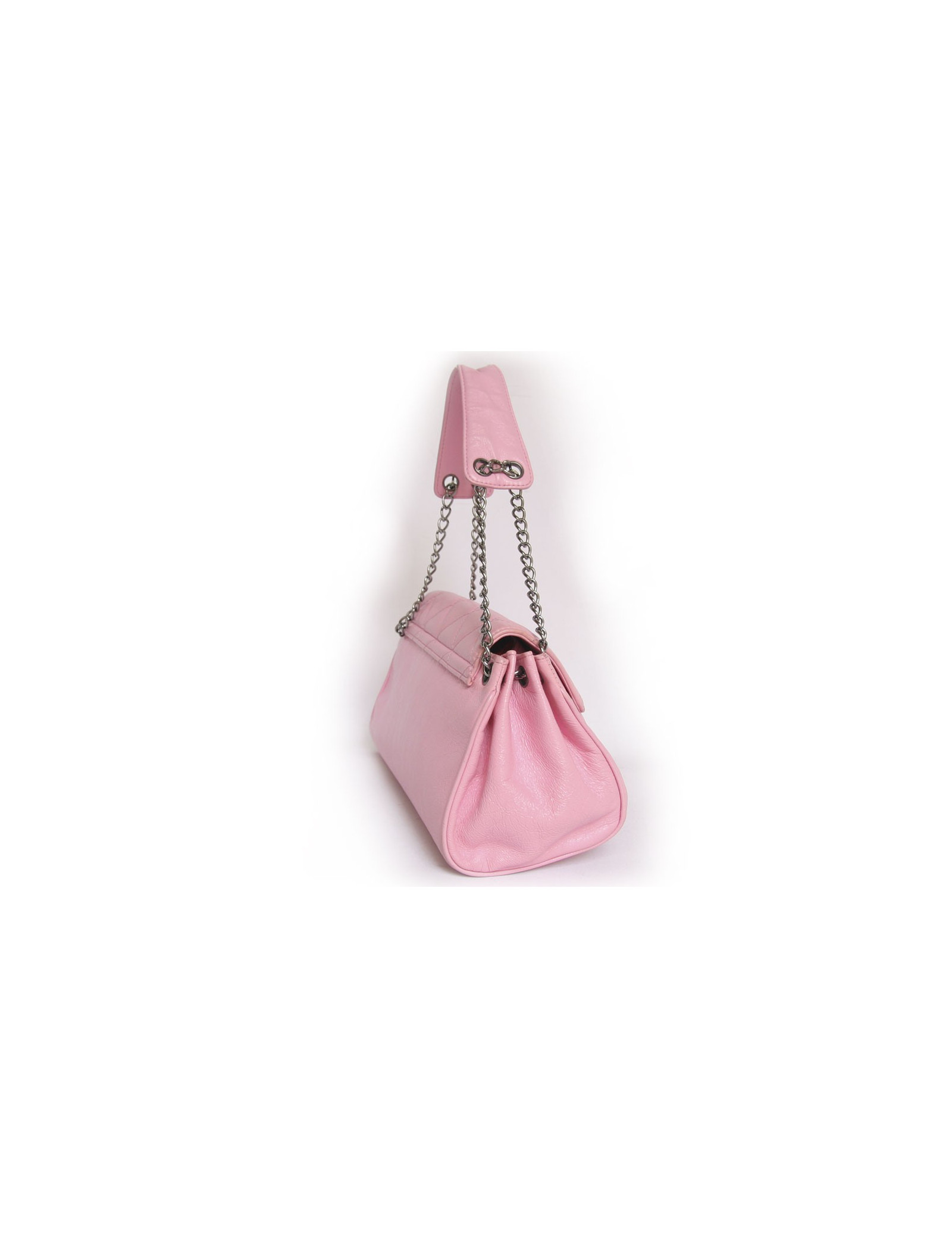Chanel bag in aged pink leather. The hardware is in silver metal. The interior is in beige monogram canvas.