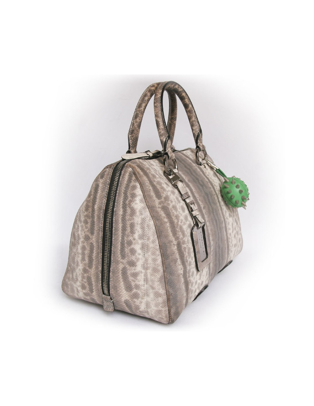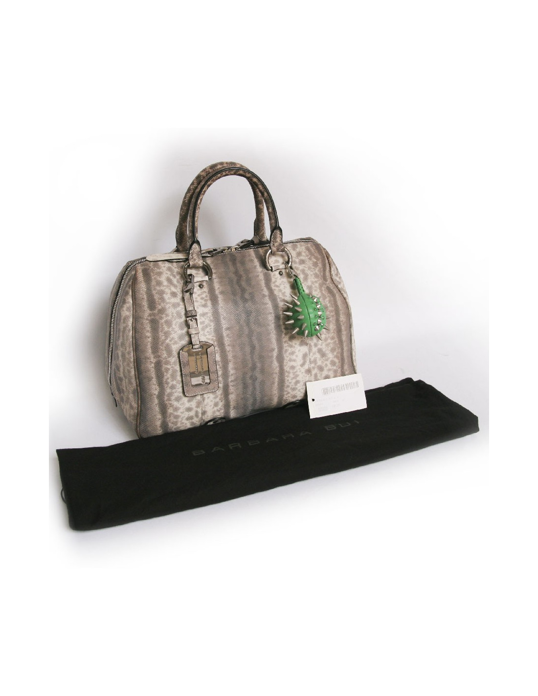BARBARA BUI in python with a fetish charm green bag. Zipper closure. The fittings are silver-plated. The Interior is in suede calf leather color taupe with 3 pockets including a pocket. Double handle for hand carry. In very good condition.