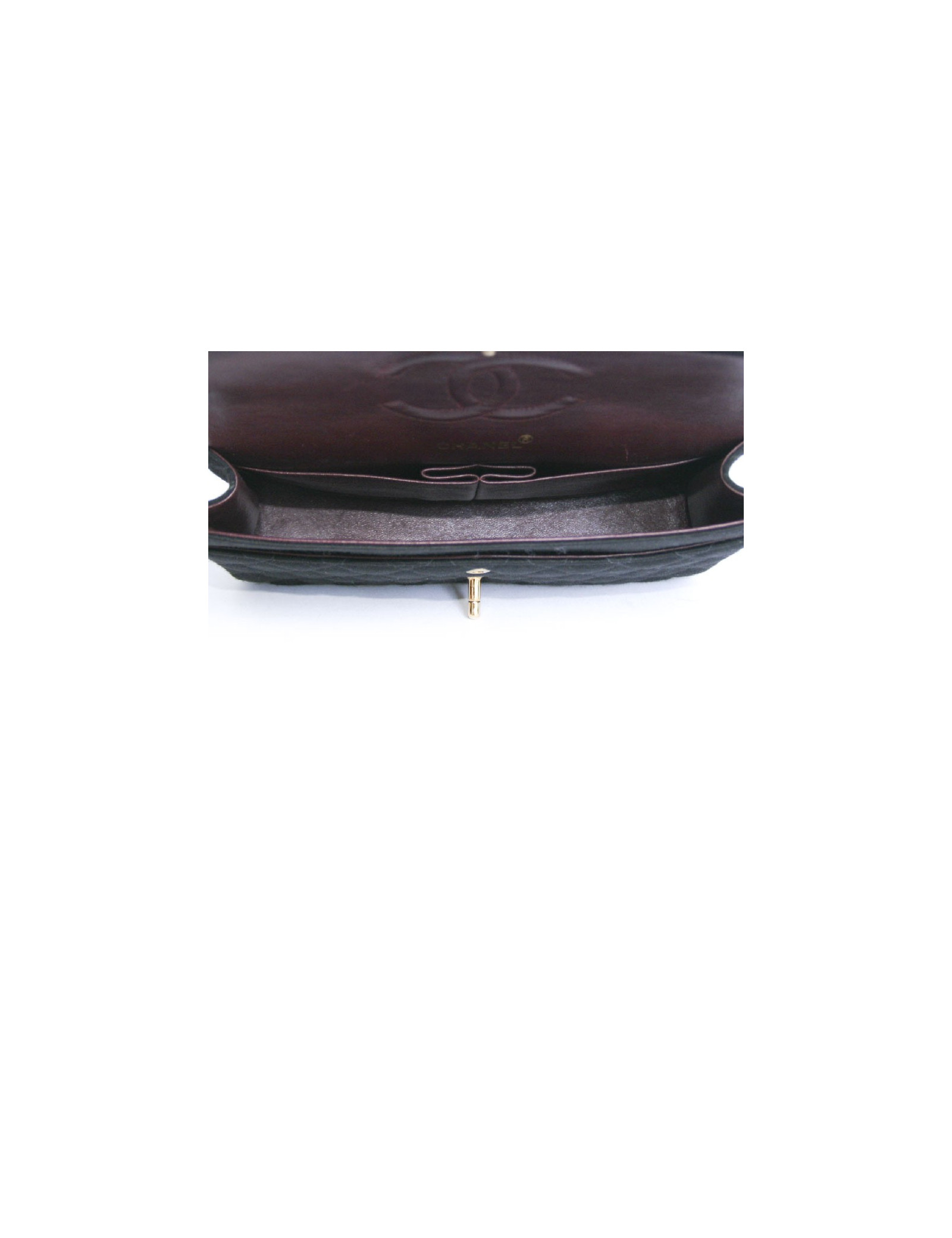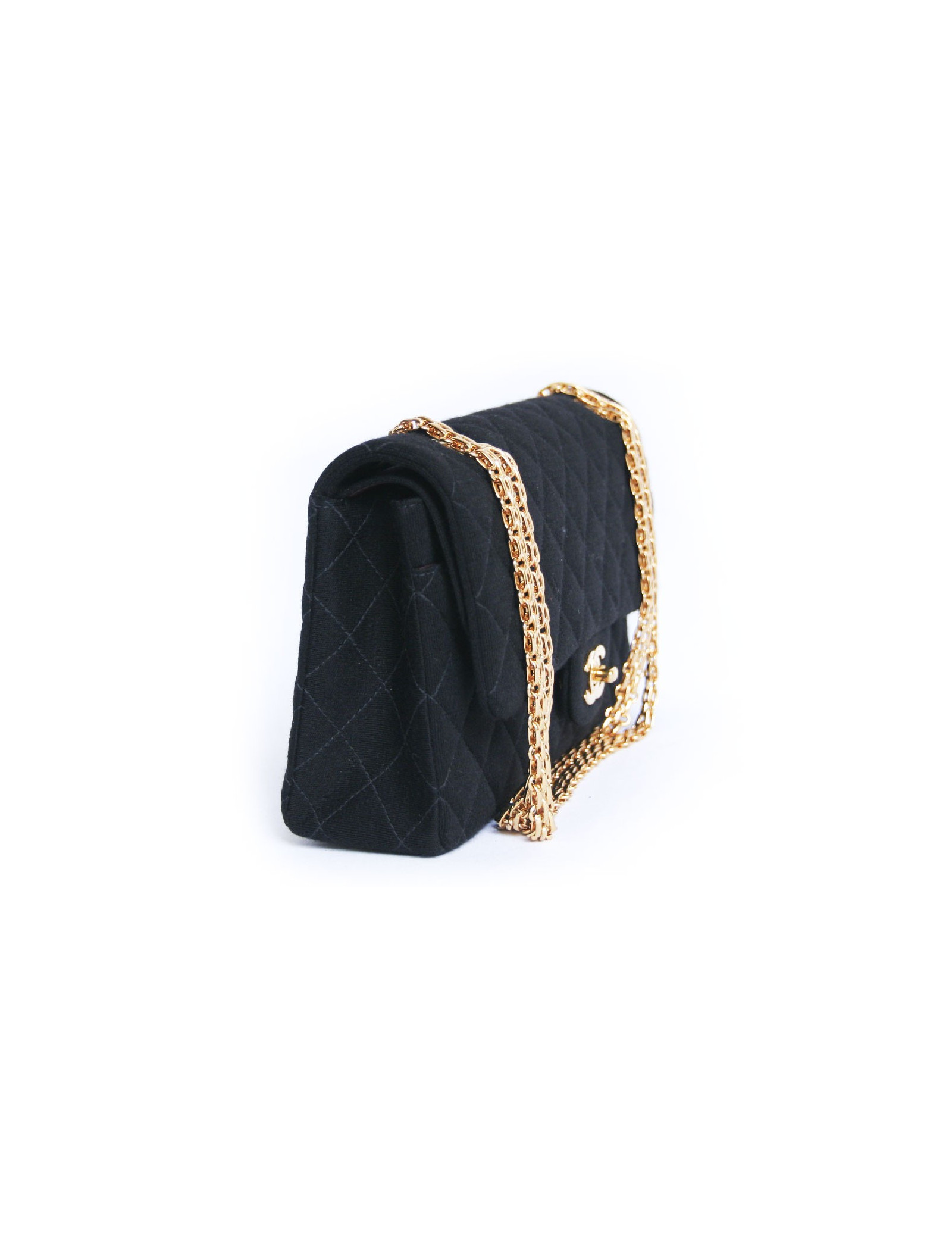 Mythical bag Timeless from the House of Chanel in Black jersey. The jewelry is gold metal. Clasp "CC". Double flap. The Interior is in Burgundy leather with 3 pockets. Another is located at the back of the bag. In very good condition.