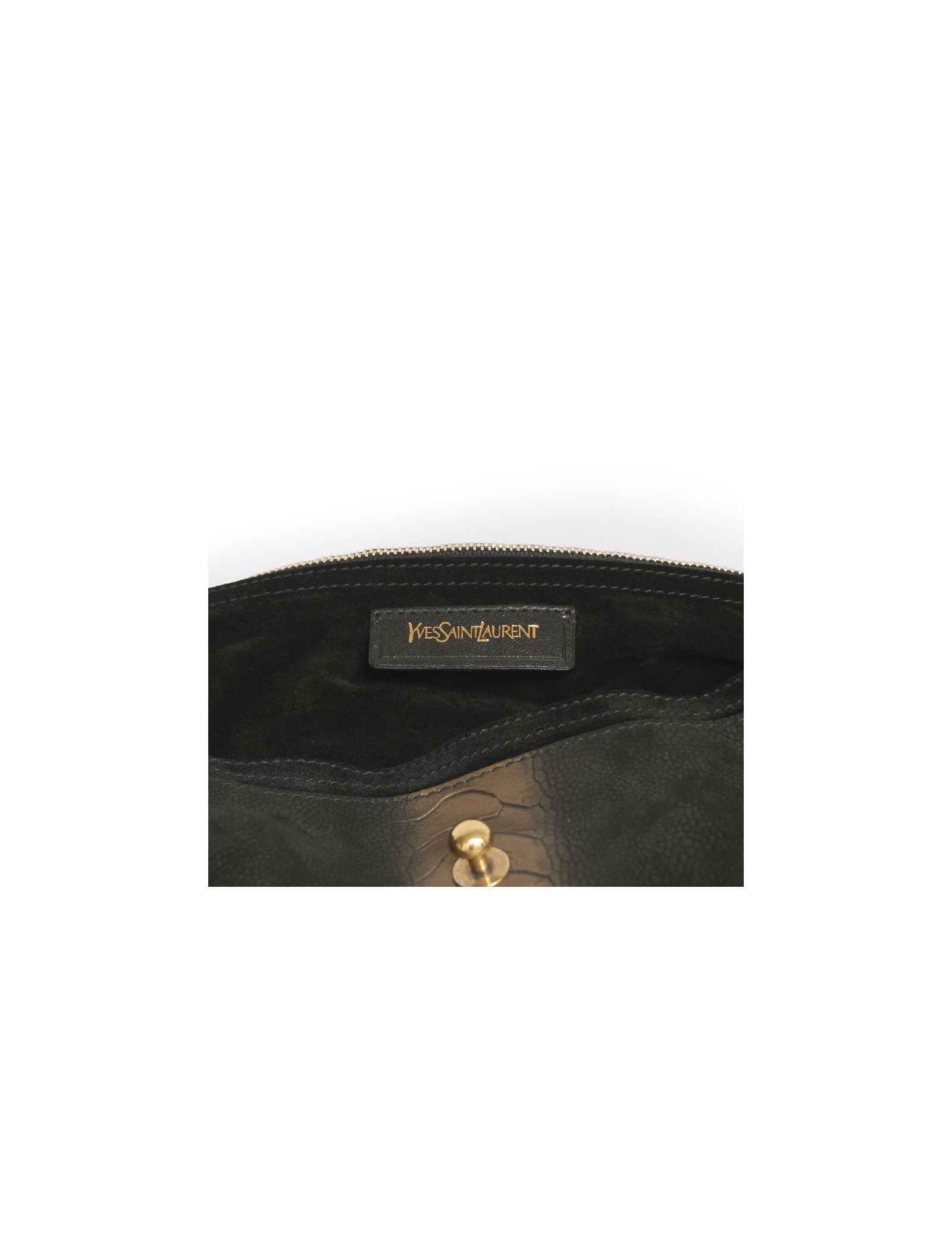Beautiful and timeless Muse 2 bag of House Yves Saint Laurent black and gold leather. The filling is made of gilded brass. It is worn at the shoulder using a handle. The Interior is separated into two compartments by a zippered Central Pocket suede. Number of authenticity: 1971... In very good condition.