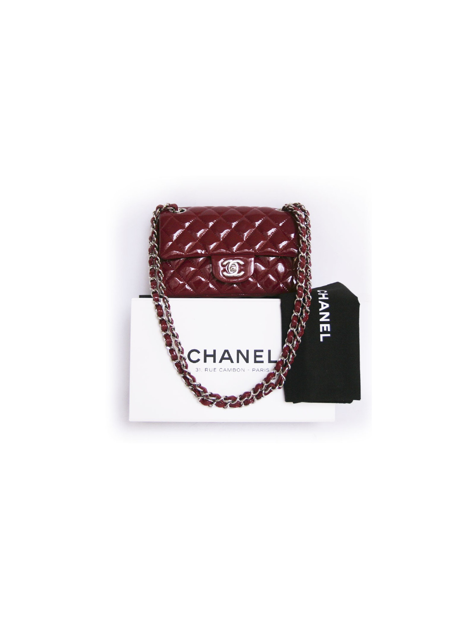 Great bag patent leather Chanel House Timeless Raspberry. The hardware is silver metal. Clasp 'CC'. It is worn at the shoulder using a shoulder strap in silver metal and leather painted the same color as the bag. The Interior is leather with two pockets and one zipped. Hologram: 1552... Comes from the press 2014 sales. In excellent condition.