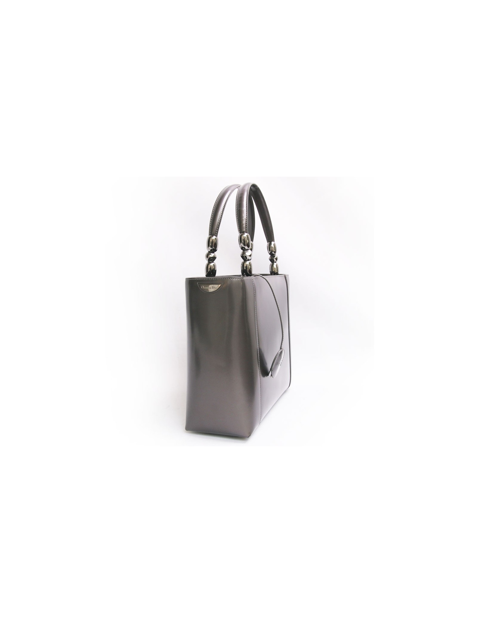 Bag "Lady Perla" of Christian Dior patent leather of the color gray. Zipped. The hardware is silver metal. Tinker Bell and padlock. The Interior is cloth monogram with a zipped pocket. It is worn by hand as well as the shoulder using a removable shoulder strap. In very good condition. been very little.