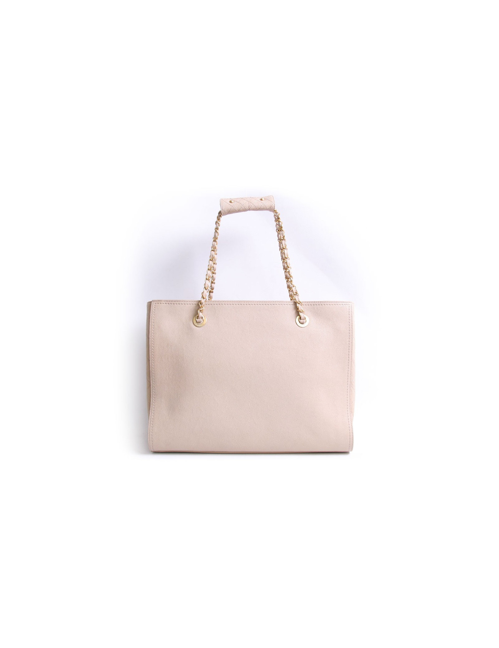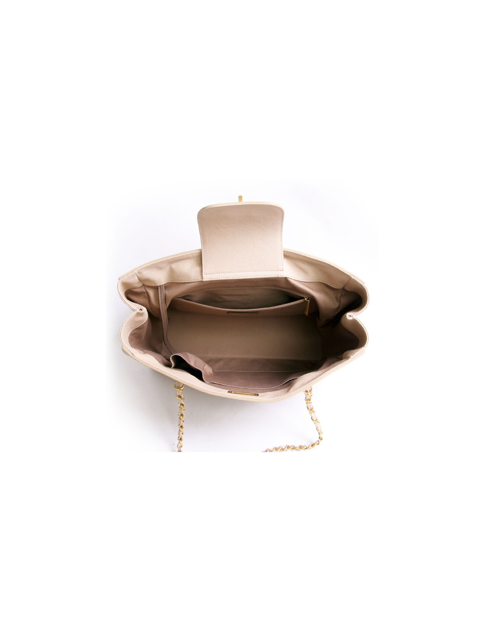 Bag Chanel House natural leather tote. It is underseeded on the front and rear leather and leather underseeded on the sides. The jewelry is gold metal. Miss clasp. L ' Interior is brown canvas with 3 pockets one zippered and one for smartphone. In very good condition. Been very little