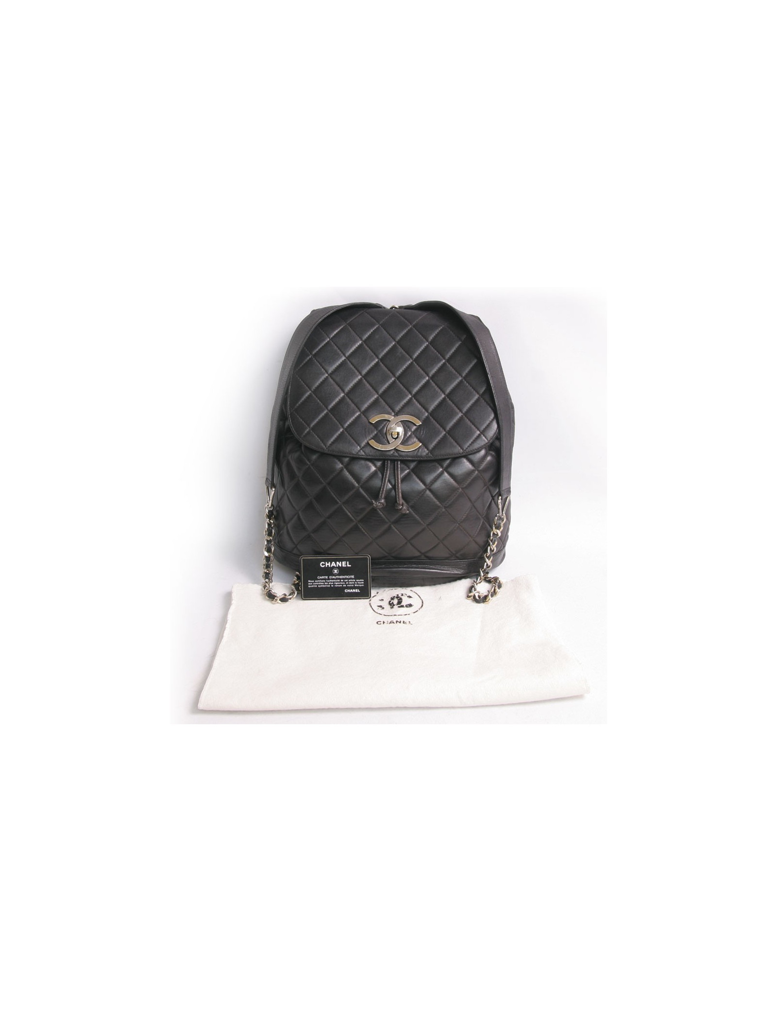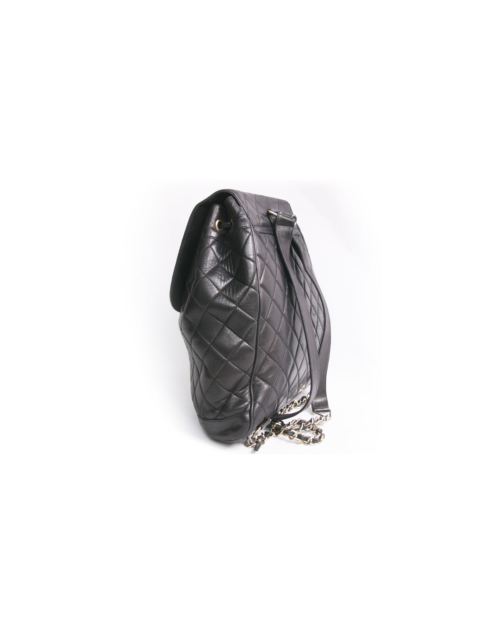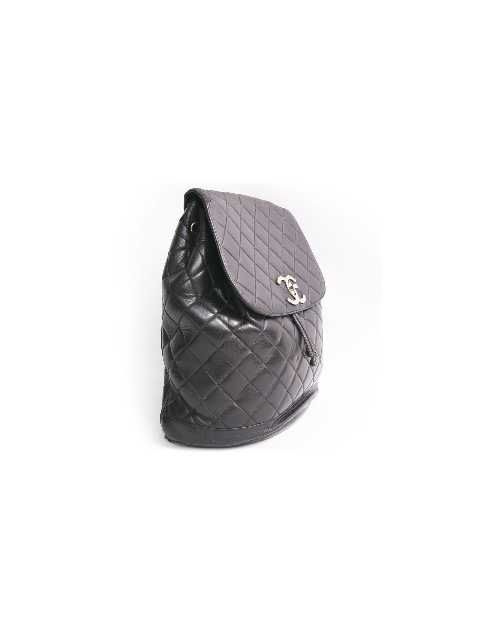 Collector! Backpack Chanel Black quilted lamb leather. Clasp 'CC'. The fittings are in gold metal but the gilding has faded due to his age. The Interior is Burgundy smooth leather with a large zippered pocket. Authenticity card 1155... State vintage. The link on the two black leather handles will drop out, you just have to sew him up. Slight wear to the leather on the top of the flap.