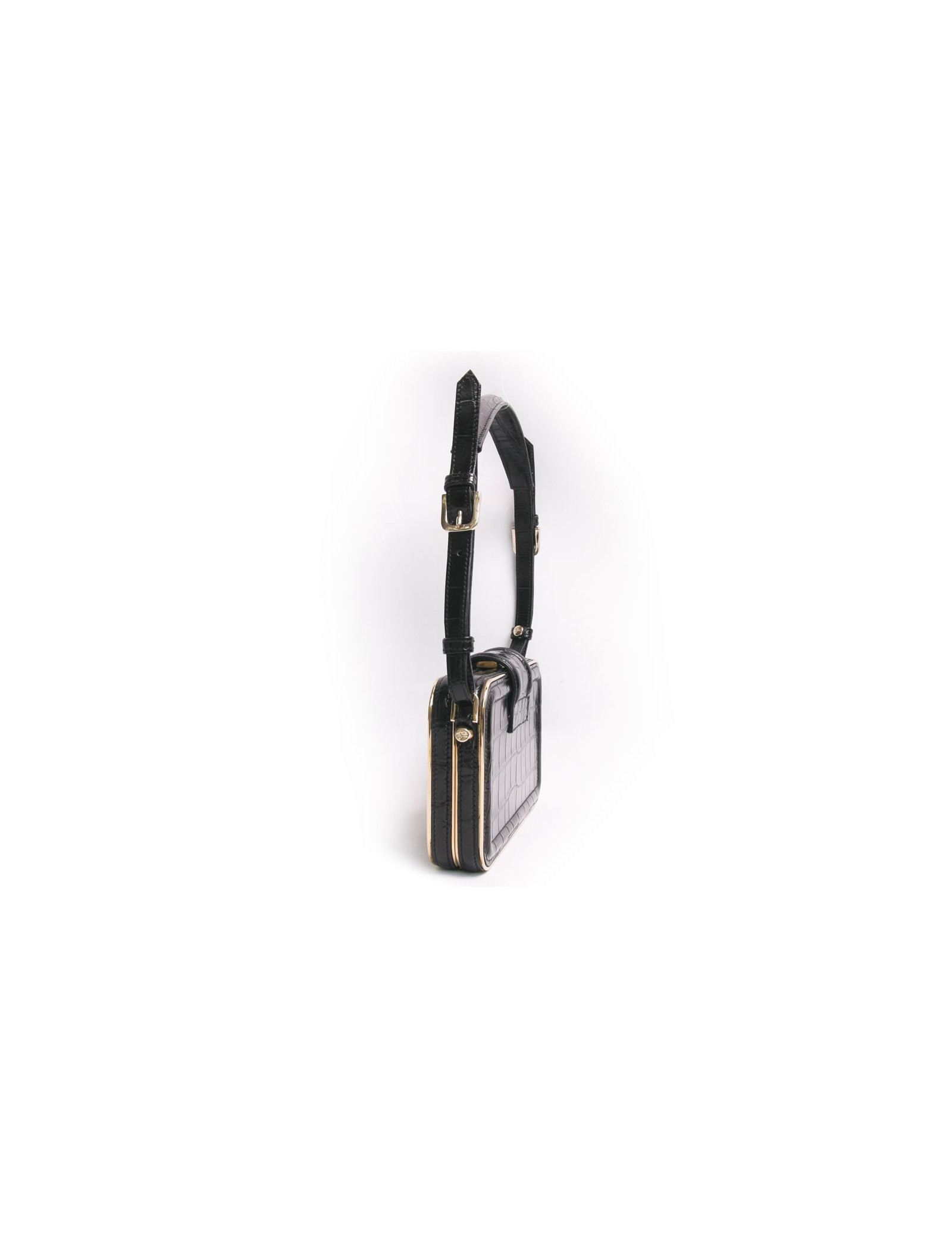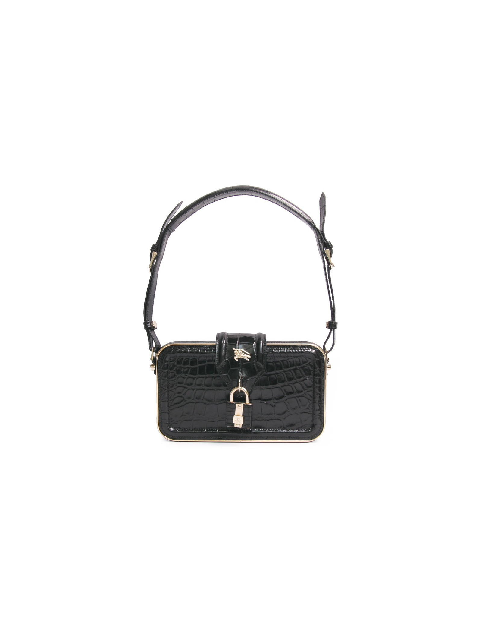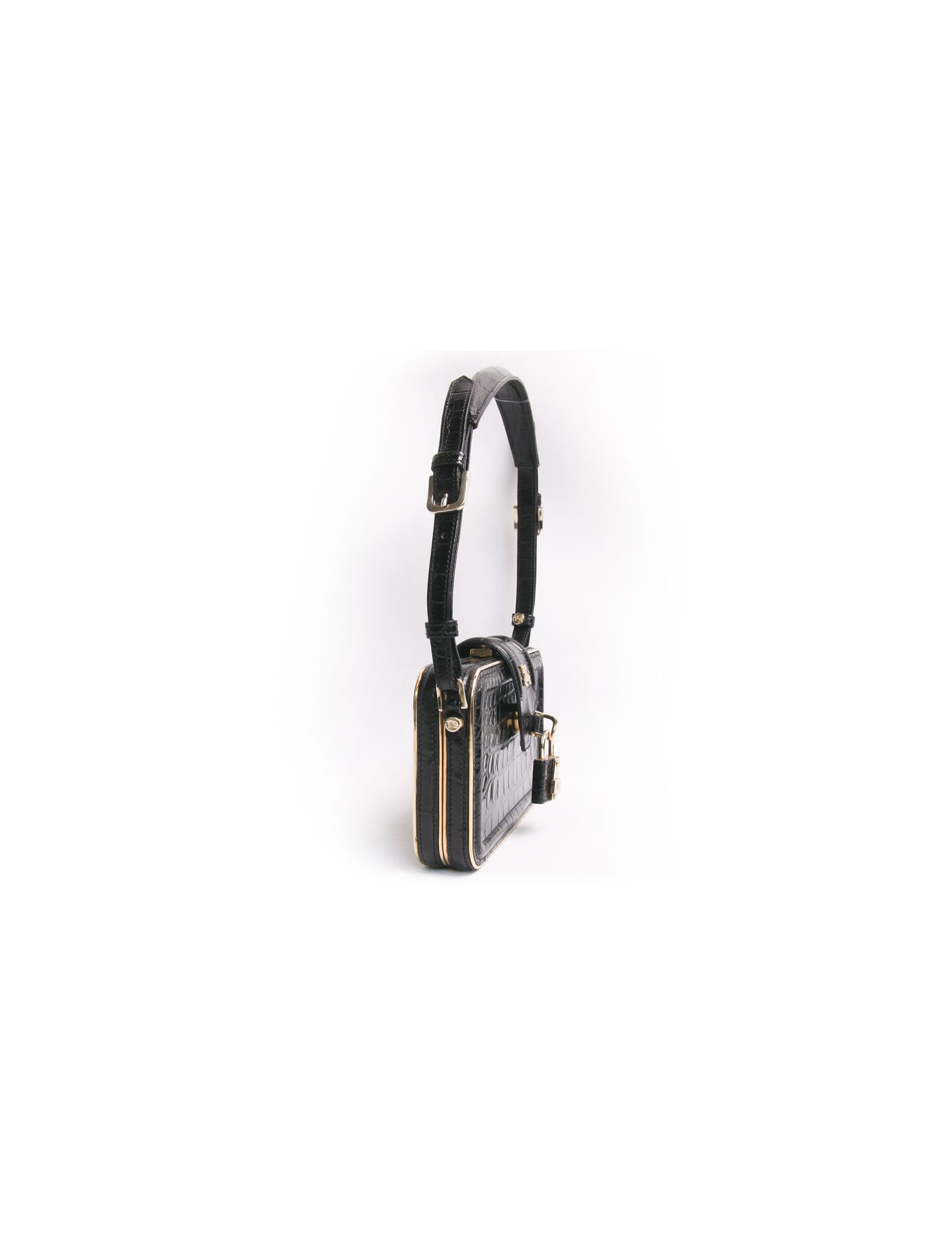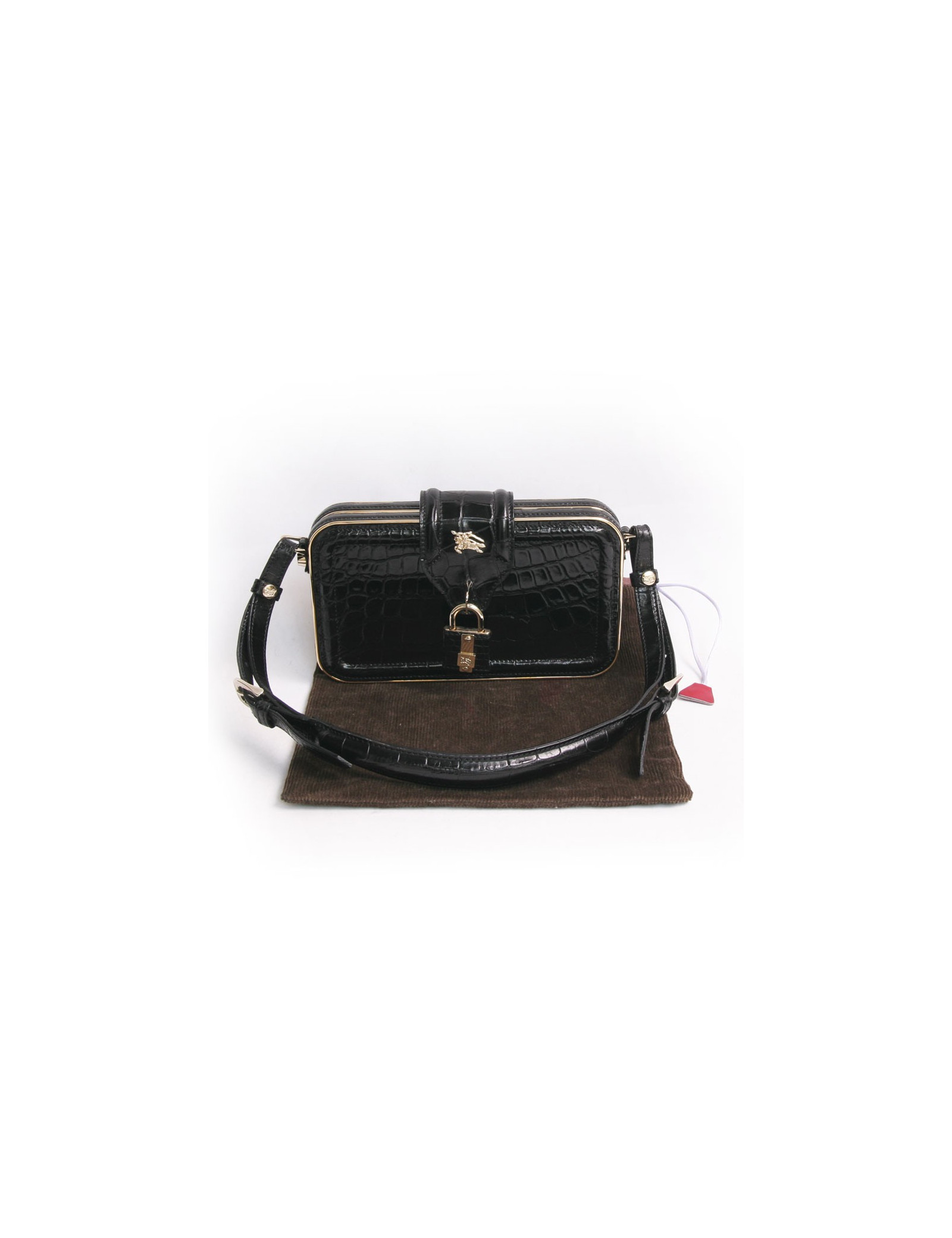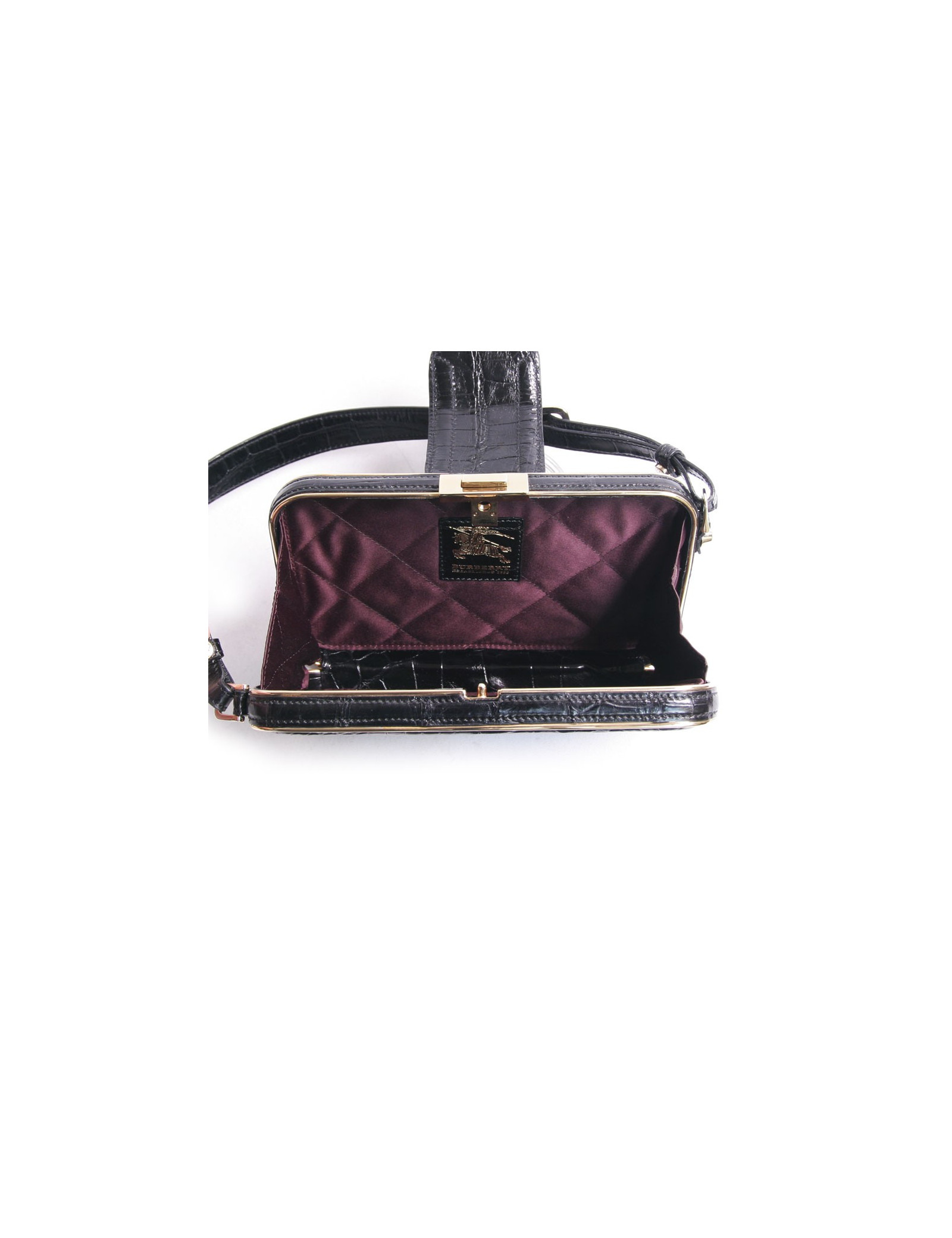 Beautiful house Burberry black crocodile clutch. The jewelry is made of metal gold. Closing pressure. The Interior is in Burgundy quilted canvas. It is worn shoulder using an adjustable strap with a reinforcement. In very good condition.