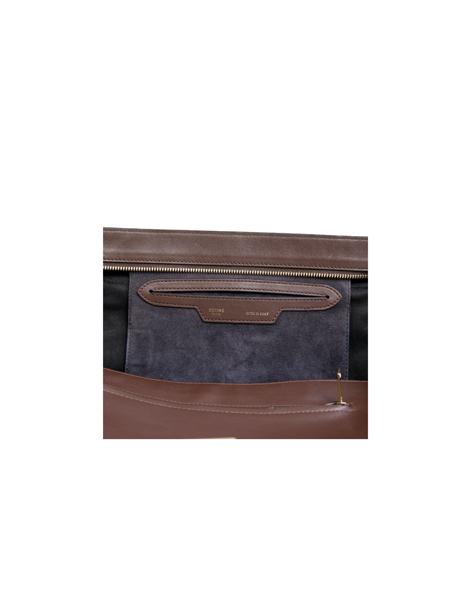 The mythical bag Céline HABs Trapeze smooth calf leather, Navy Blue, black and Brown. The jewelry is gold metal. Zipped. Inside is in Navy Blue nubuck with a flat pocket and one on the front. It can be worn by hand using a handle as well as the shoulder with a removable shoulder strap. In very good condition.