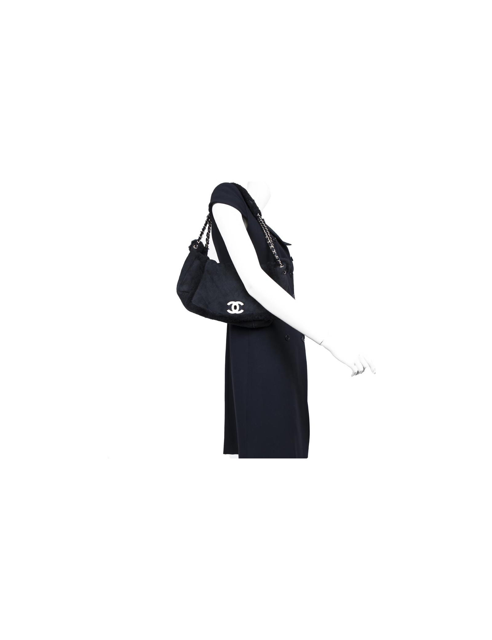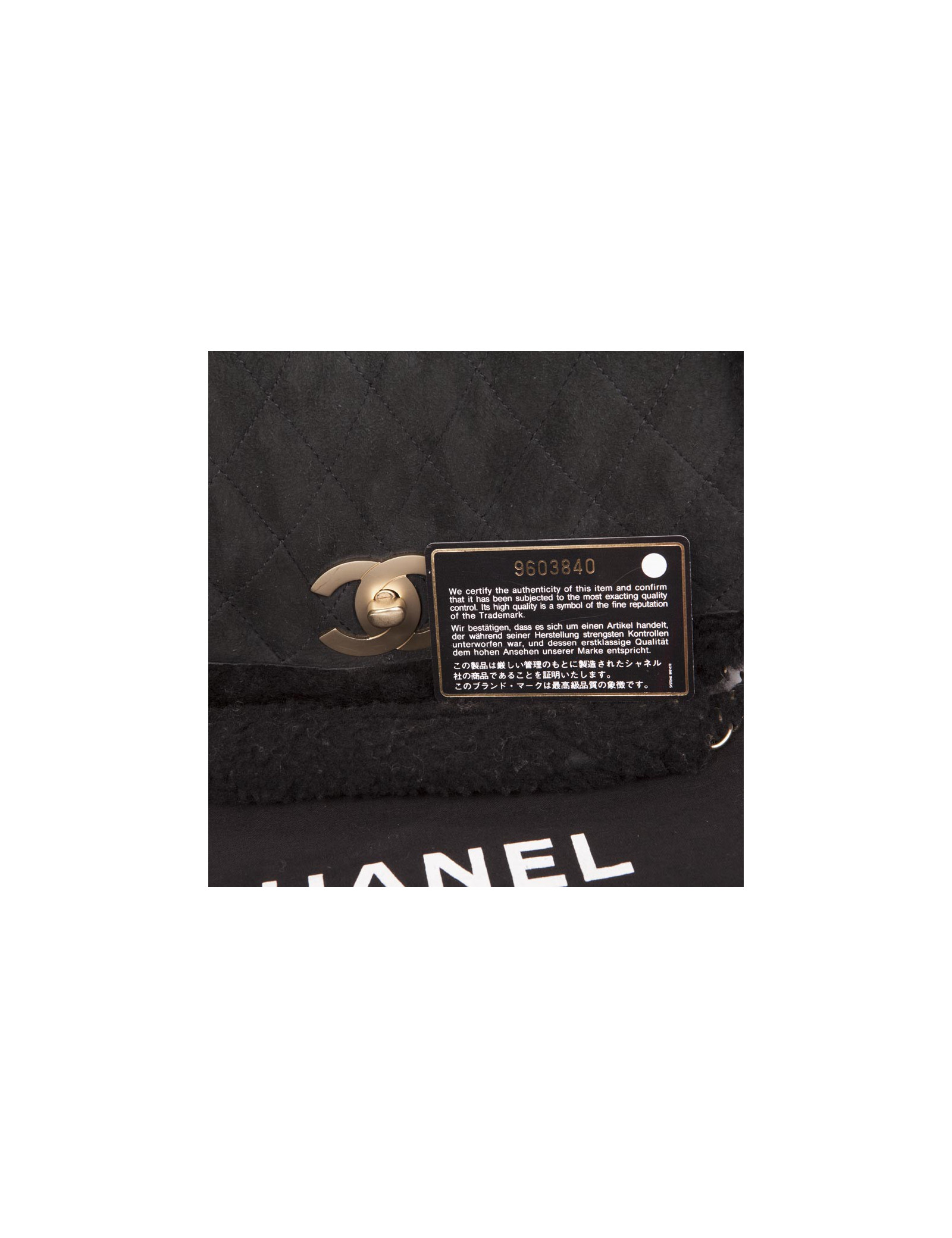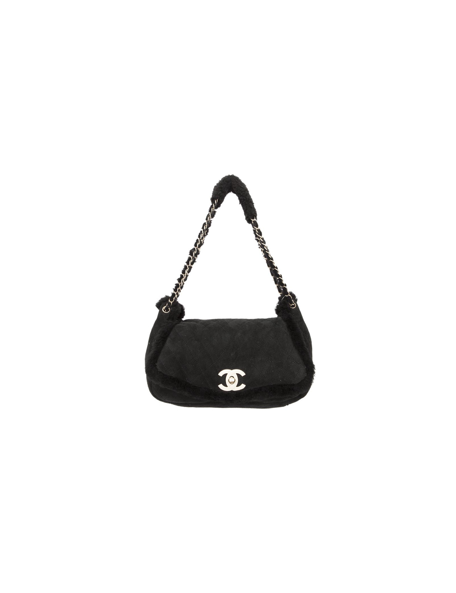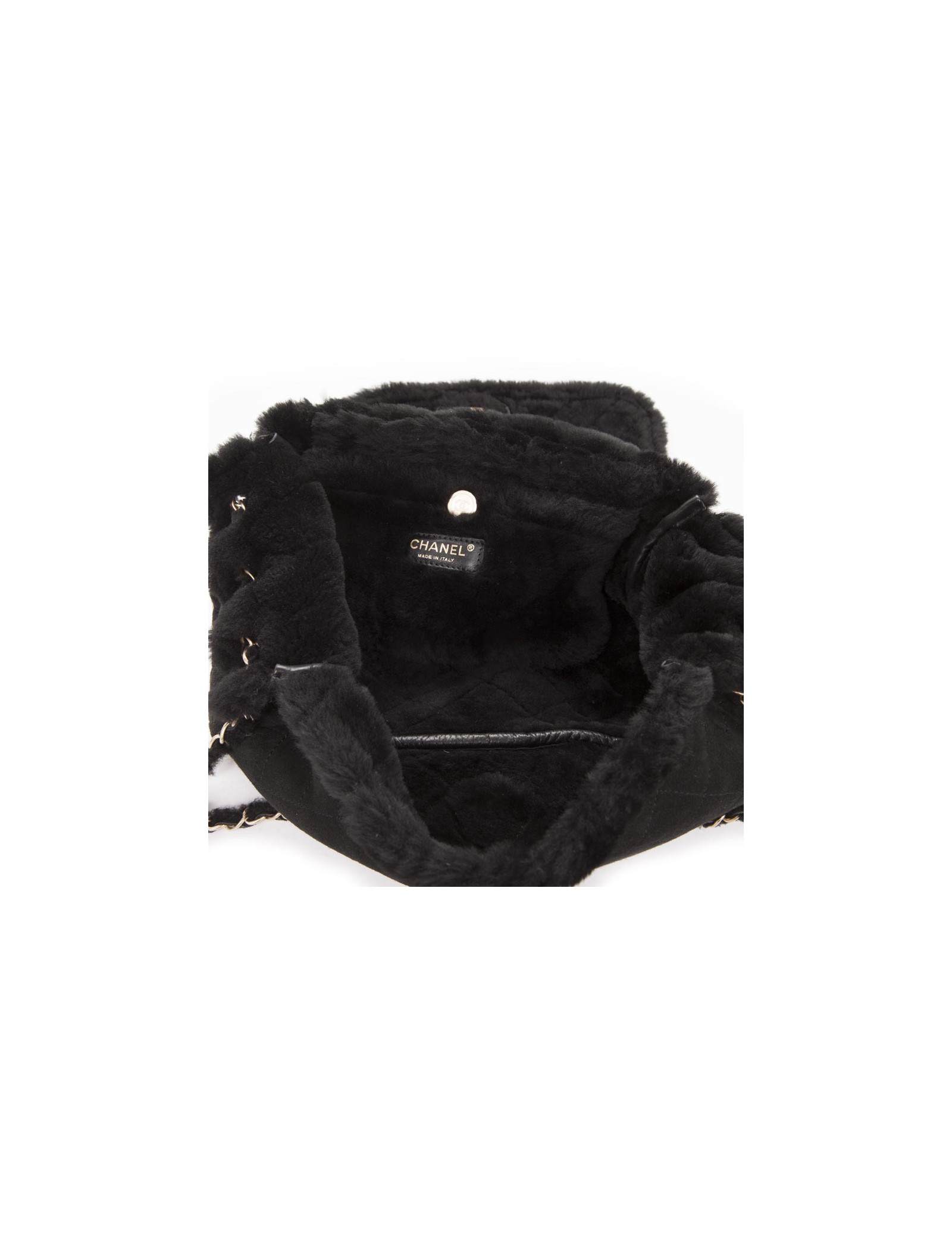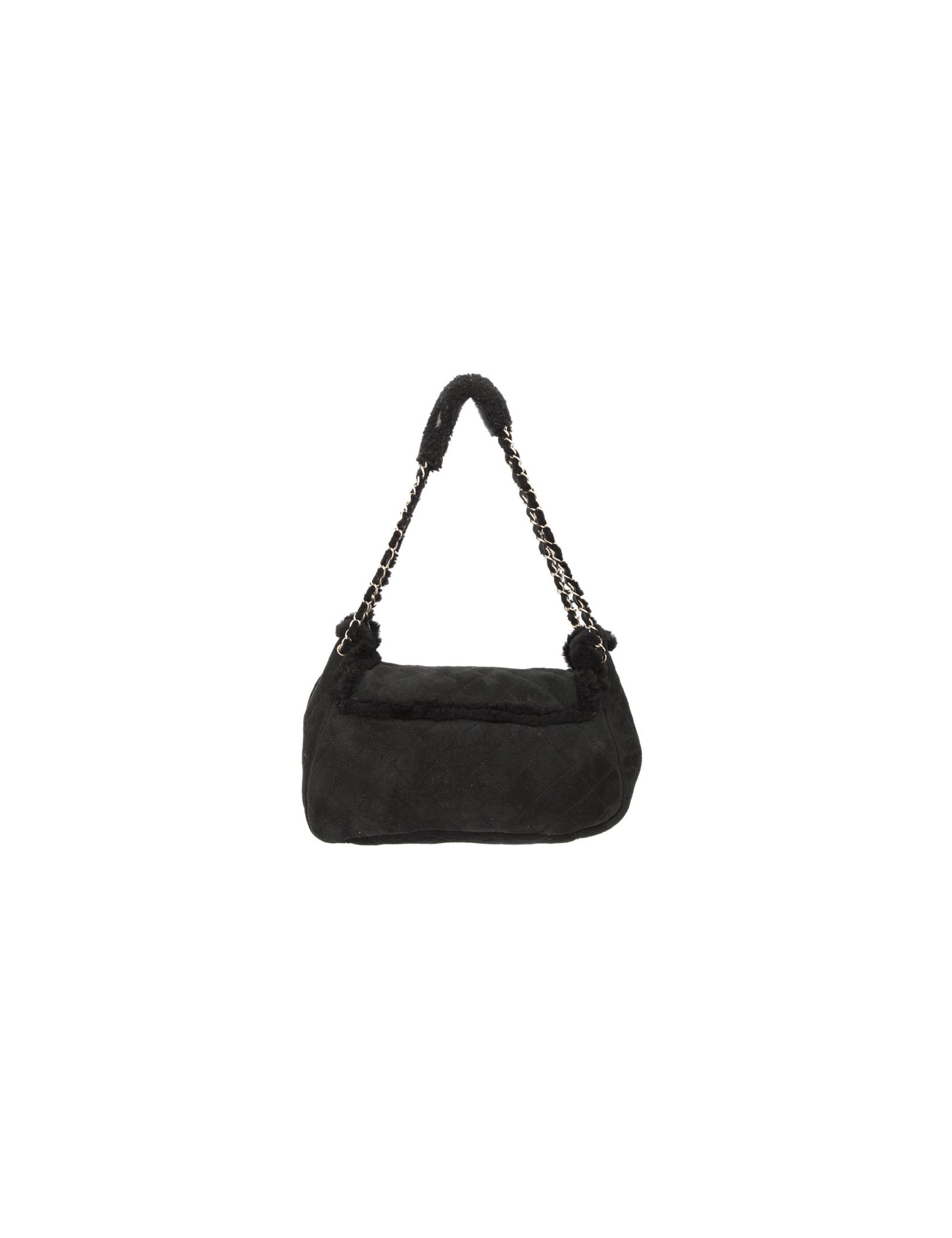 CHANEL black Shearling and golden chain bag