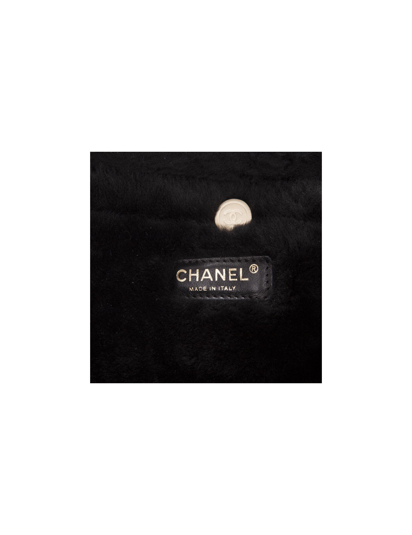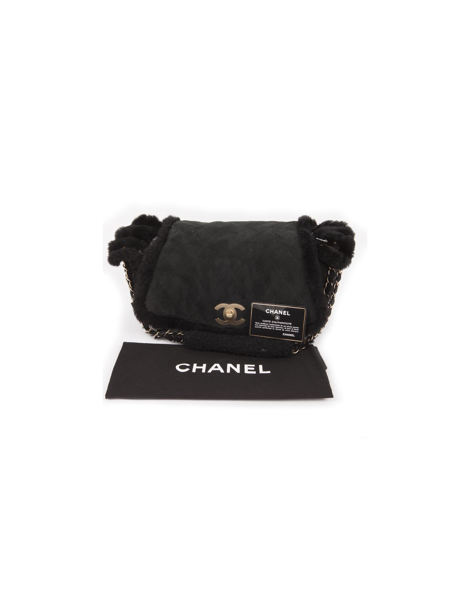 Beautiful Chanel bag in black lambskin shearling leather. Matte gilt metal hardware. Clasp 'CC'.