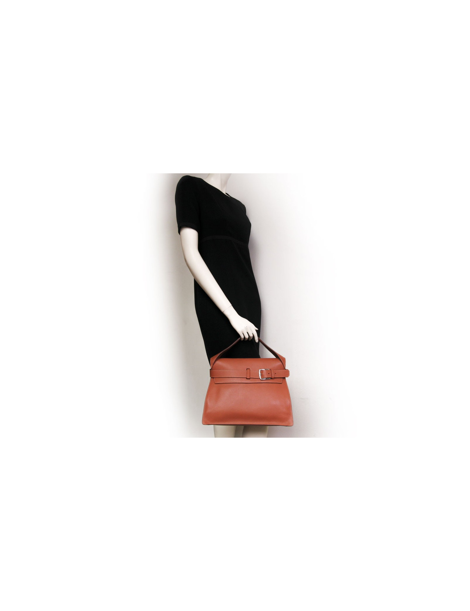 Bag "Etribelt" of Hermès in grained calf pink beige. Close by the famous loop Etribelt. Little seen model.Very chic to wear on all occasions. It is in two ways: by hand or on the arm. The jewelry is silver metal. Inside, it has a big patch pocket. New condition.