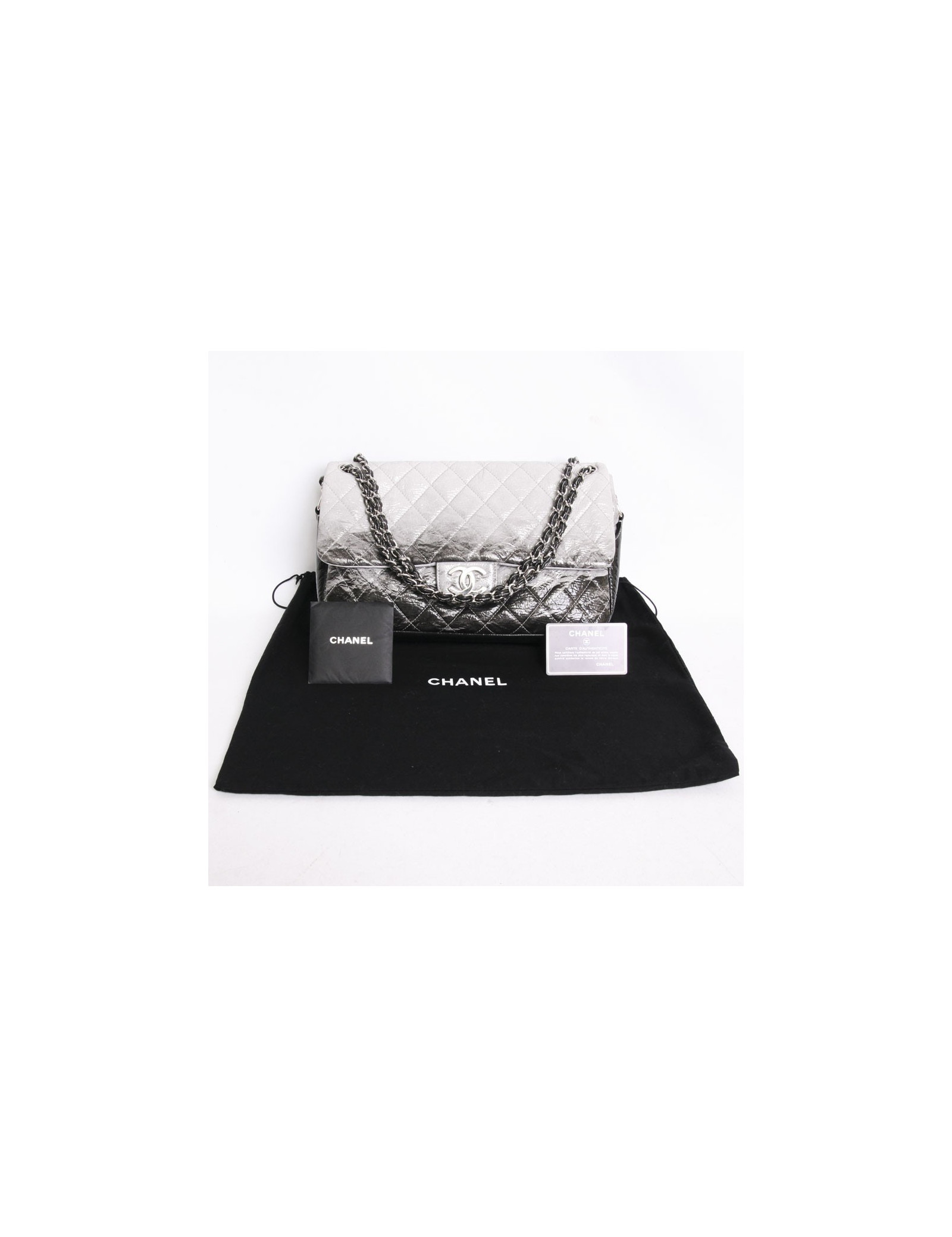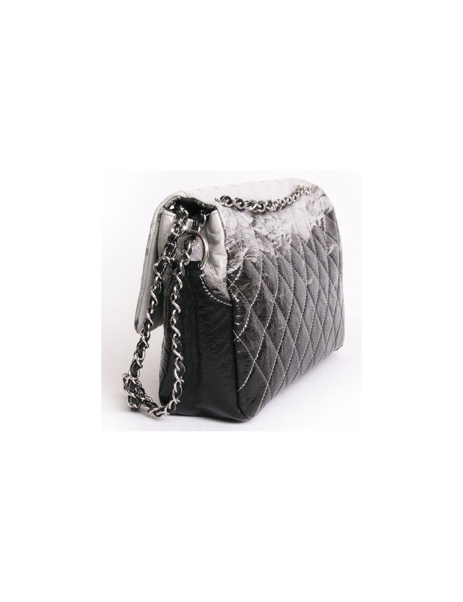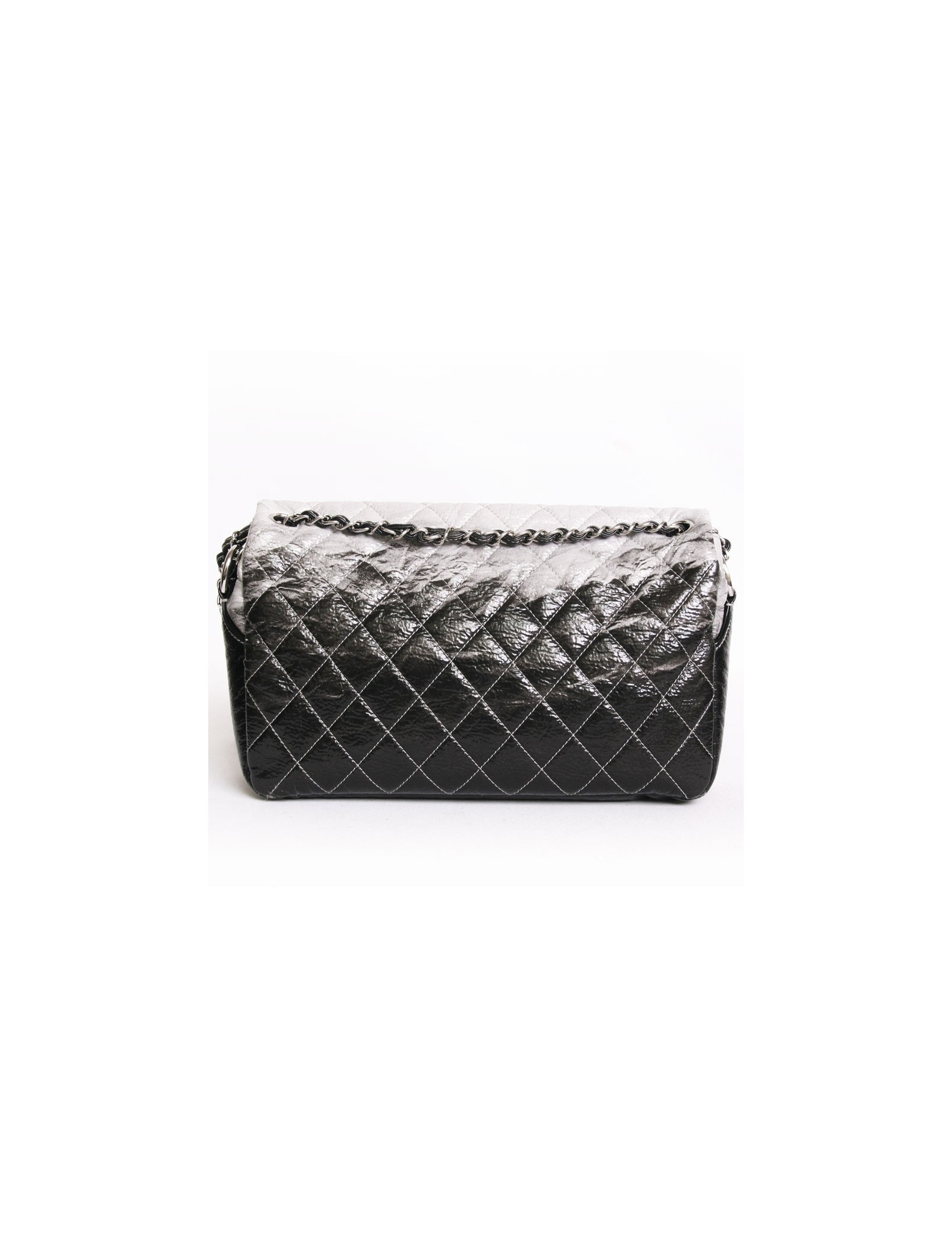 Bag classic timeless Chanel ice quilted soft leather gray and black. The jewelry is made of metal ring. It closes with a double pressure C. The Interior is gray satin. There is a zipped pocket. No. 1189 hologram... and authenticity card. This bag is in the arm and shoulder. It is practically new.