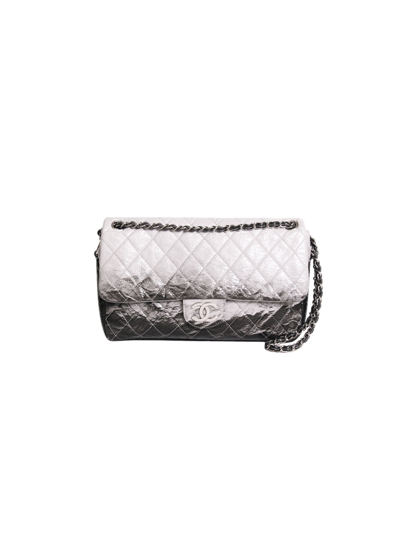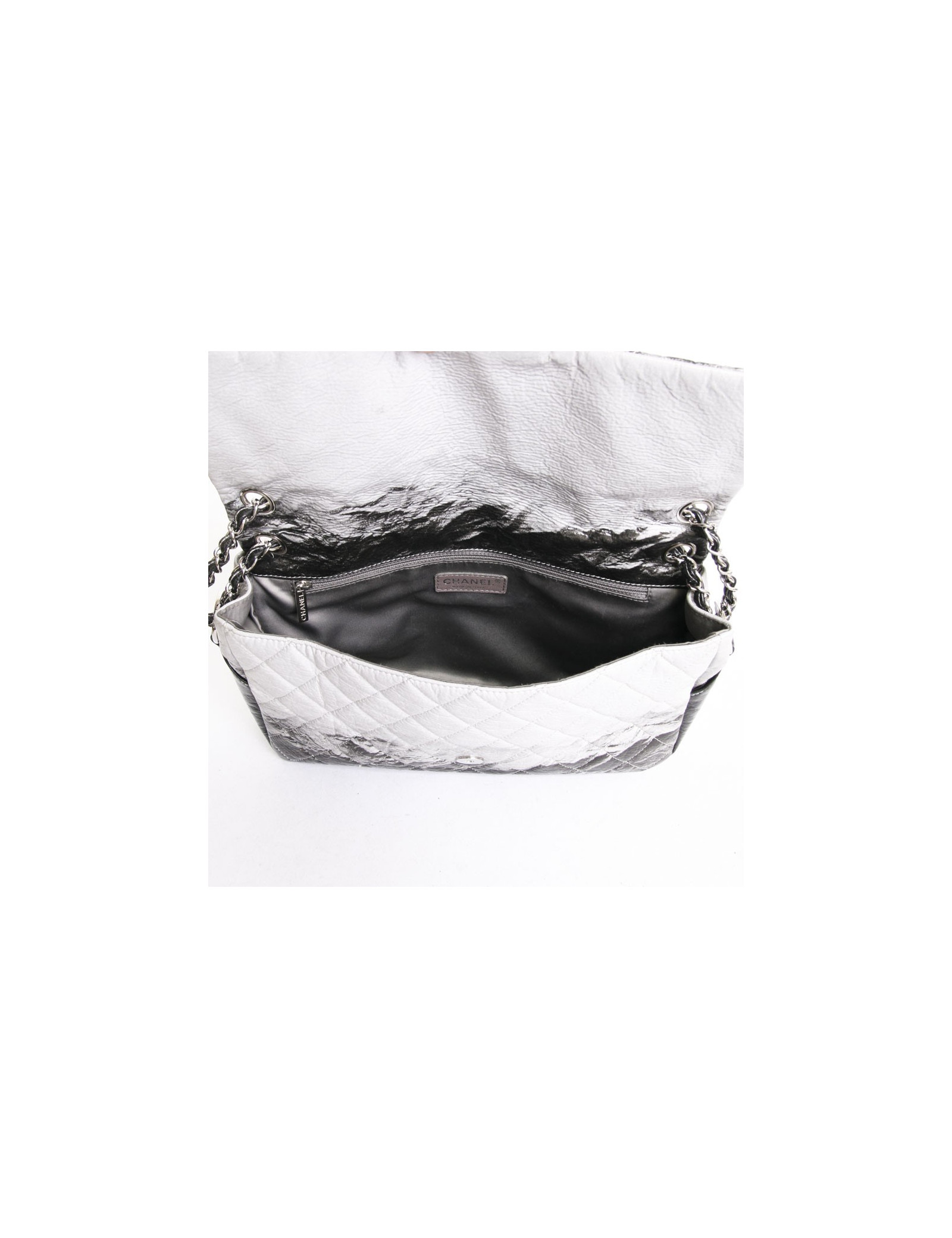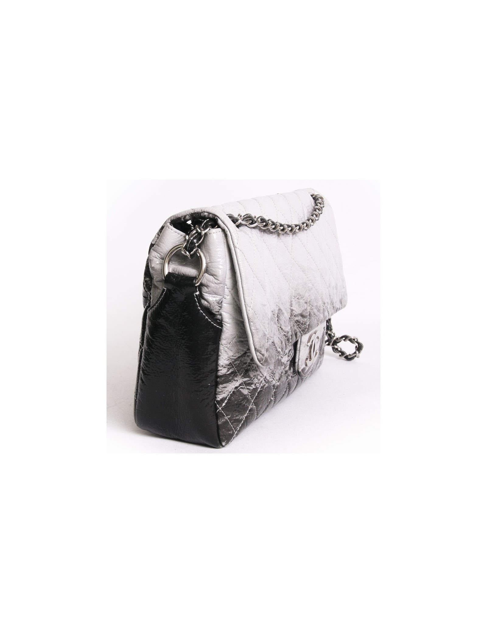 Bag classic timeless Chanel ice quilted soft leather gray and black. The jewelry is made of metal ring. It closes with a double pressure C. The Interior is gray satin. There is a zipped pocket. No. 1189 hologram... and authenticity card. This bag is in the arm and shoulder. It is practically new.
