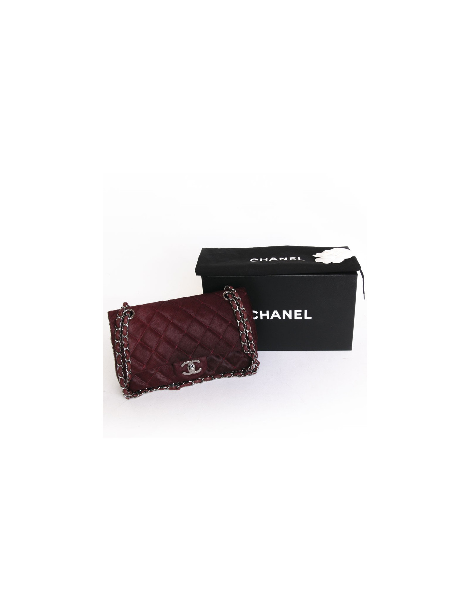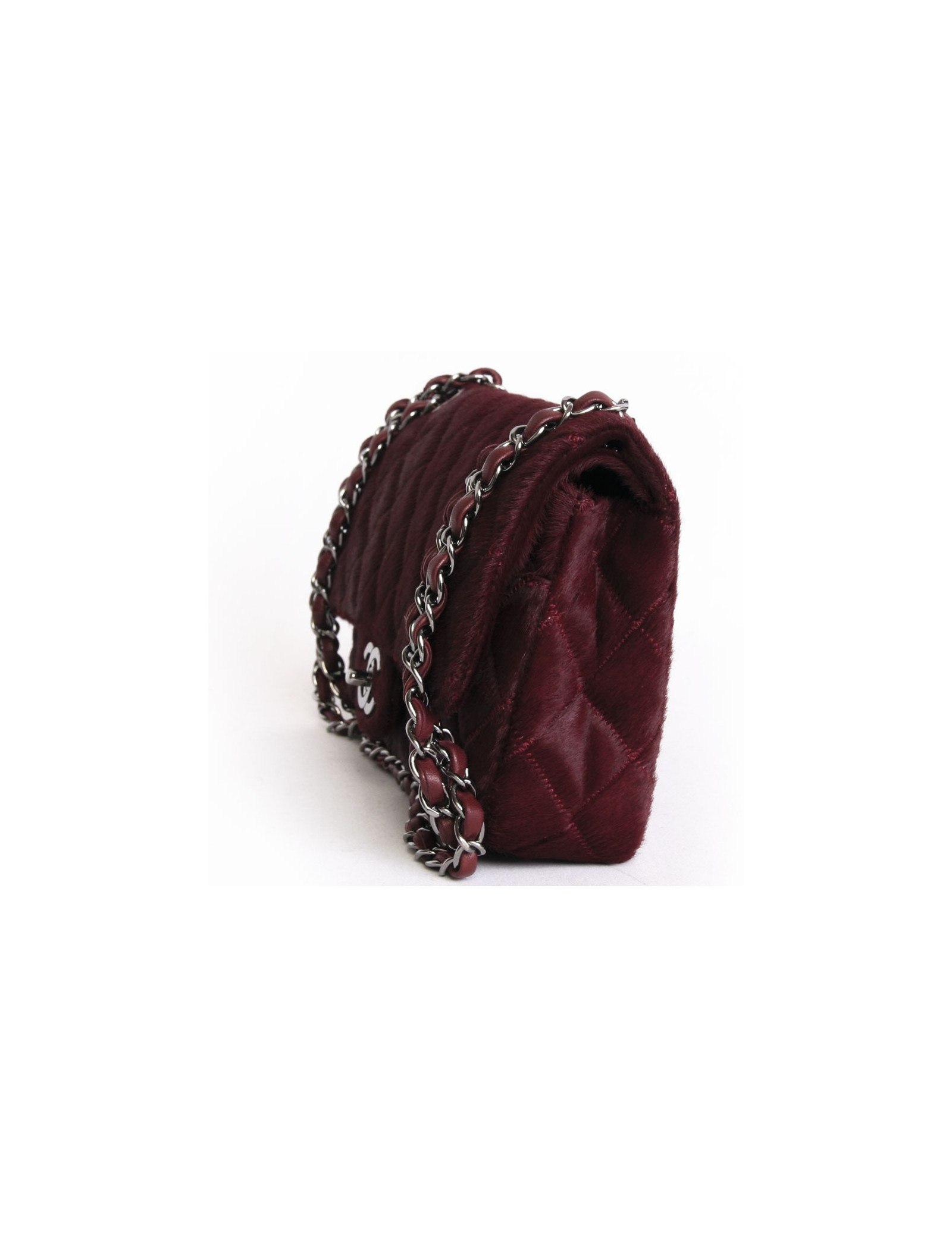 Bag Chanel timeless, in bordeaux foal. The jewelry is made of metal ring. Exceptional piece. This bag is in very good condition, worn only once. Parade piece. Is either the shoulder or cross.