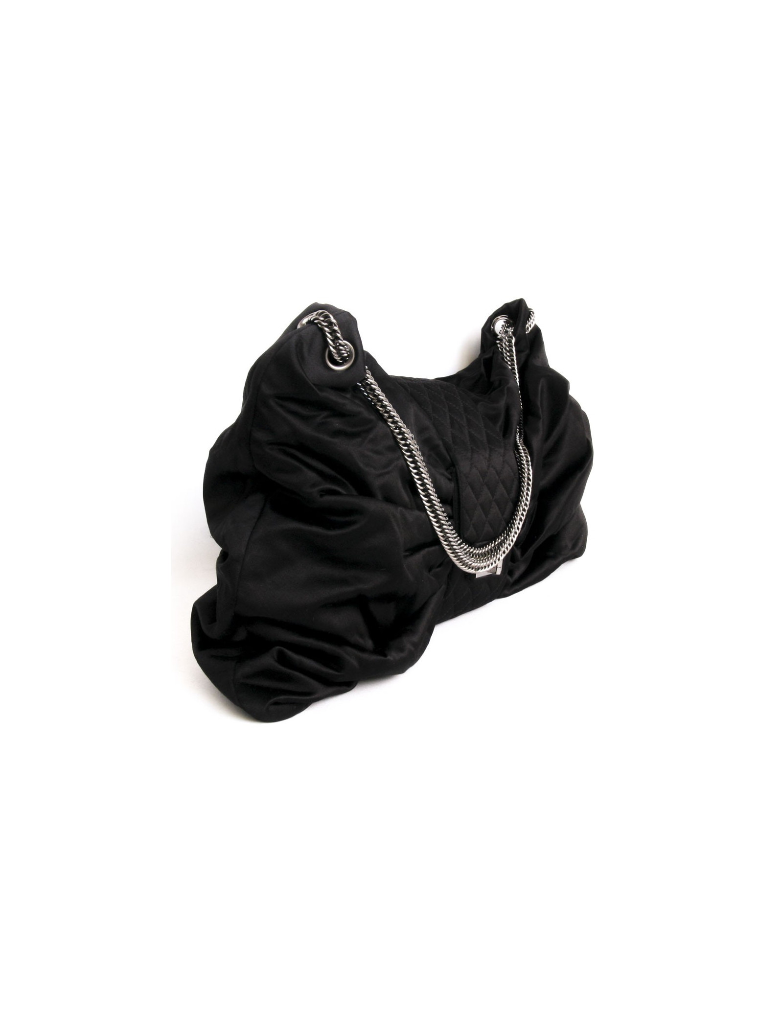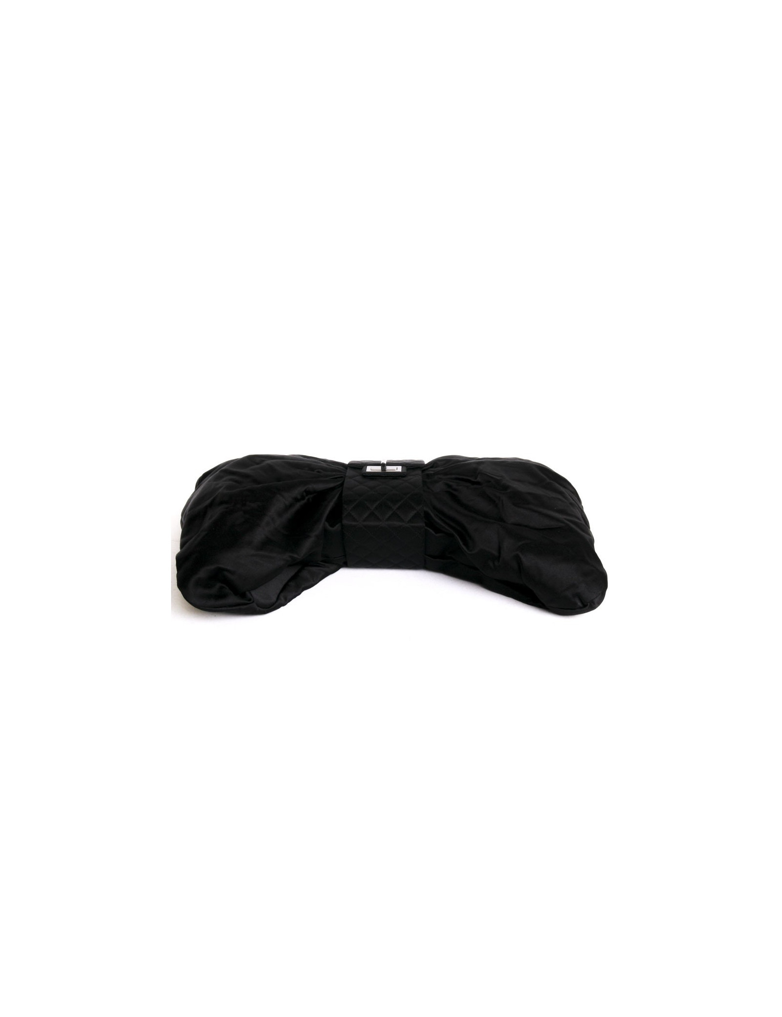 Bag Chanel Black Duchess satin. Original model draped in silk, in the form of node. Elegant and manoeuvrable, ideal in the evening.