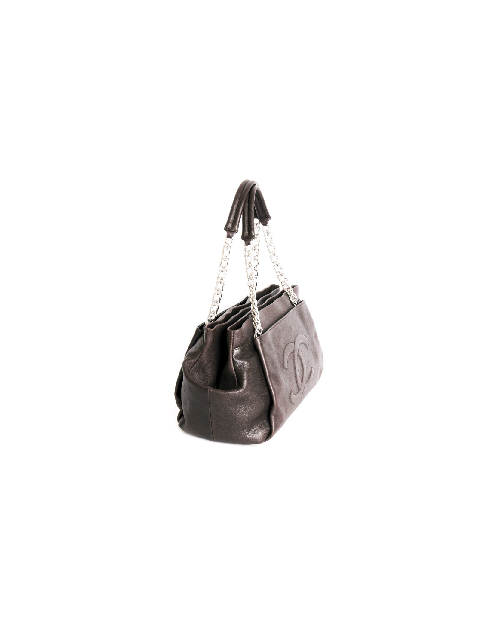 Bag Chanel Brown caviar leather, silver jewelry.