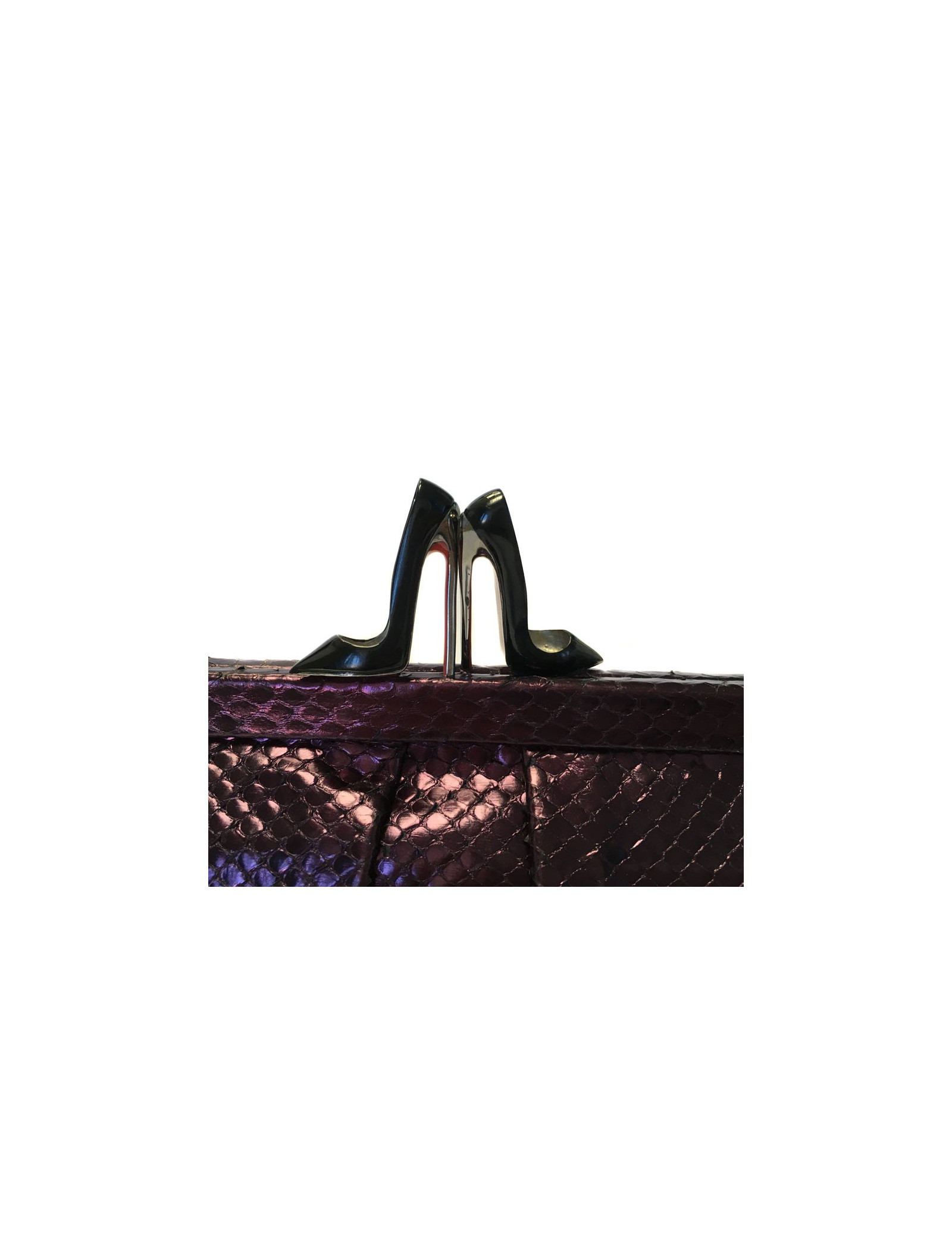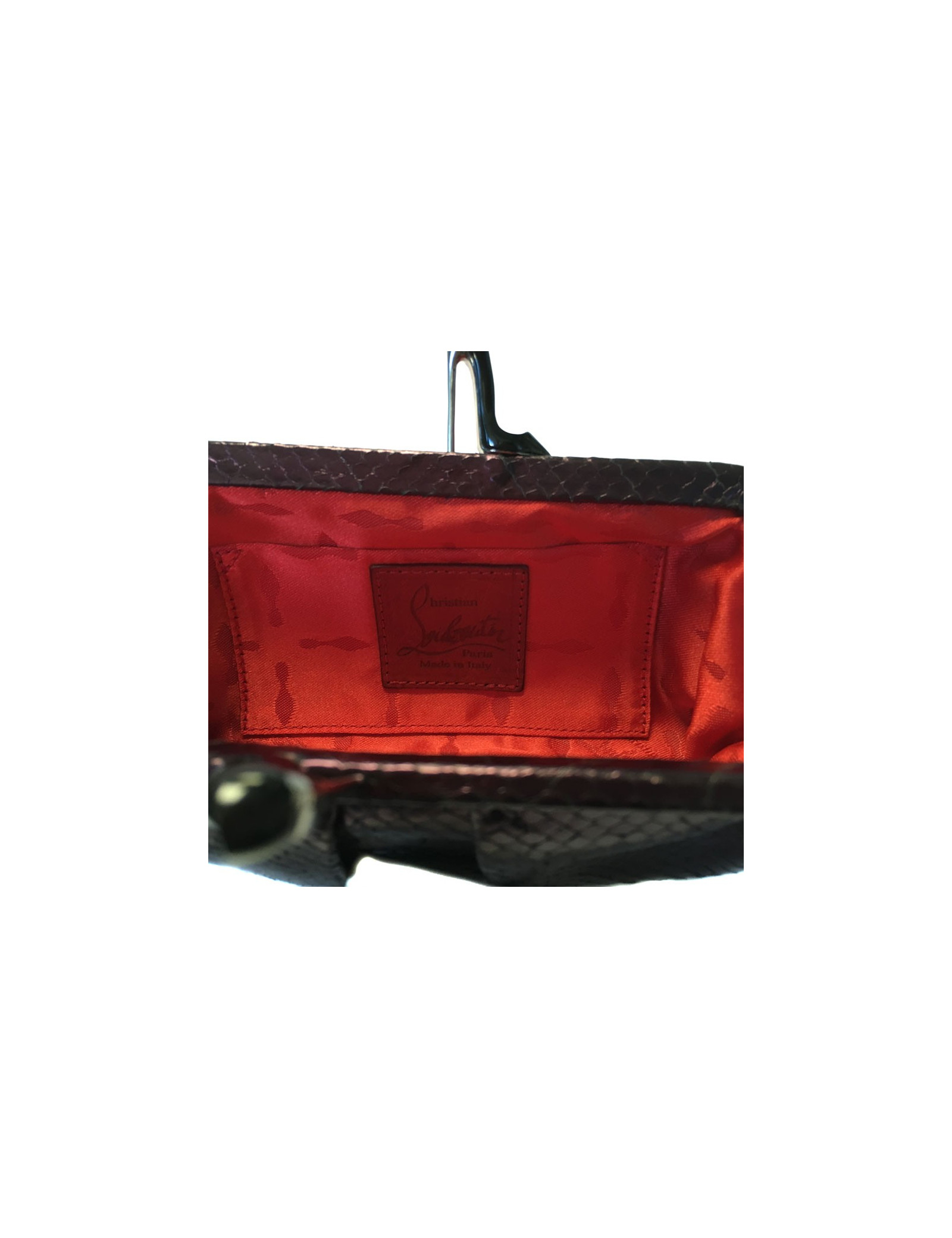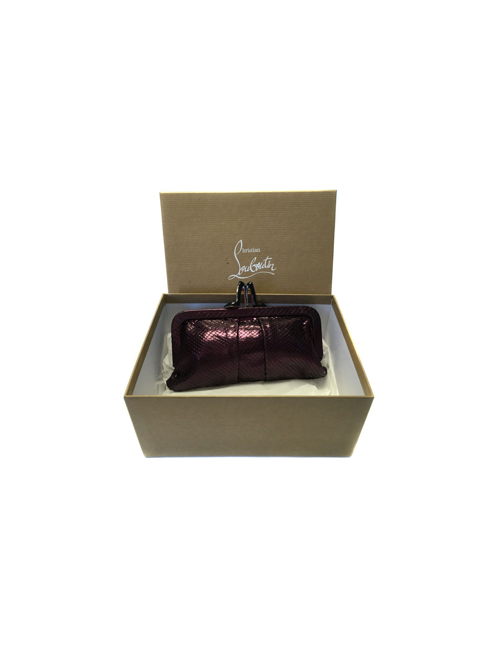 Beautiful and original! CHRISTIAN LOUBOUTIN clutch in plum python mini. Clasp in the shape of Louboutin shoes. A small pocket on the inside allows you to store credit card etc... Inside red fabric (color flagship brand). In very good condition.