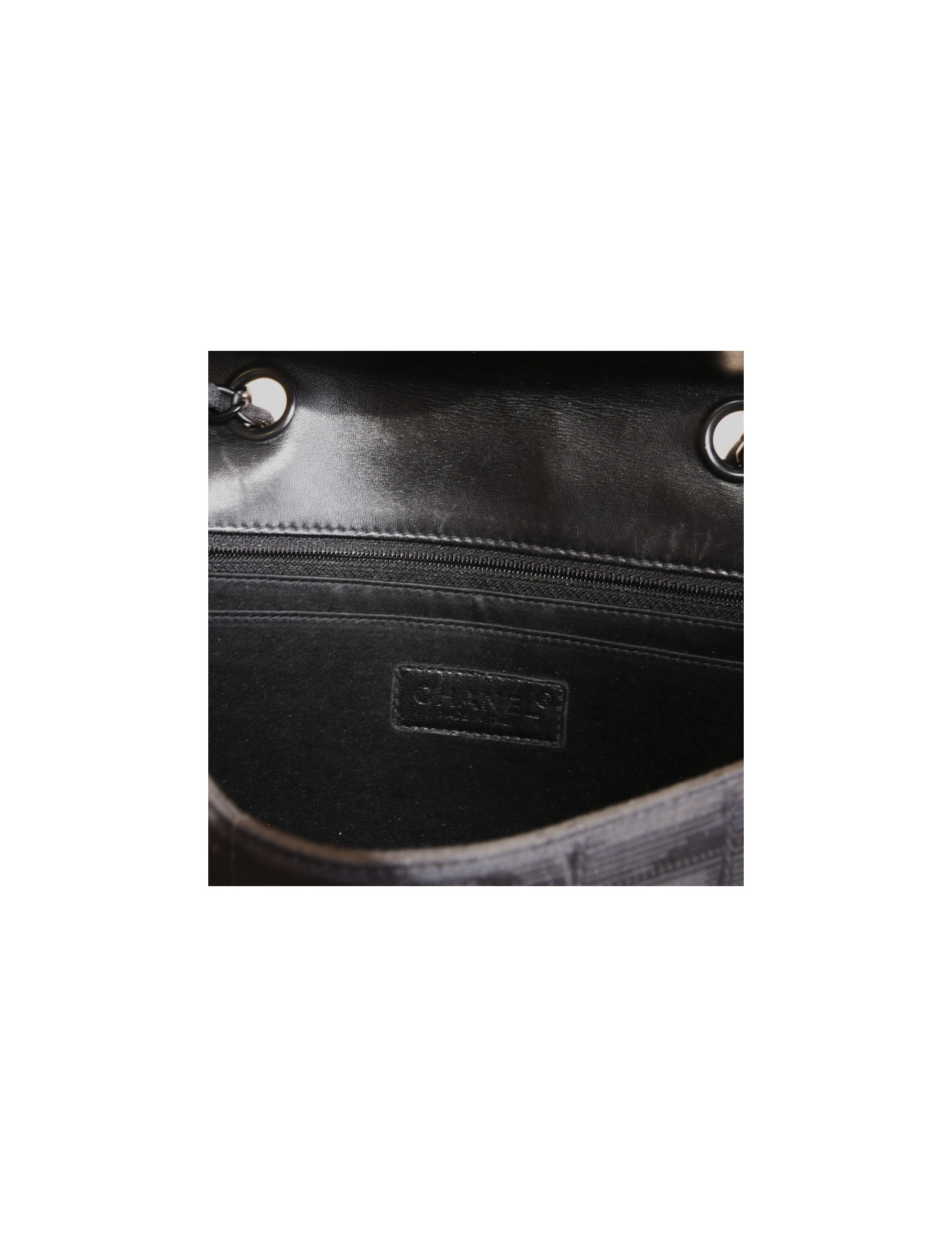 The House of Chanel Black canvas bag 'Timeless'. Can be seen very subtly on the bag of the 'CC'. Clasp 'CC'. Under the flap: black smooth leather. The Interior is black satin with two pockets including 1 zipped. There is also a flat rear pocket. Hologram: 7693... In very good condition.