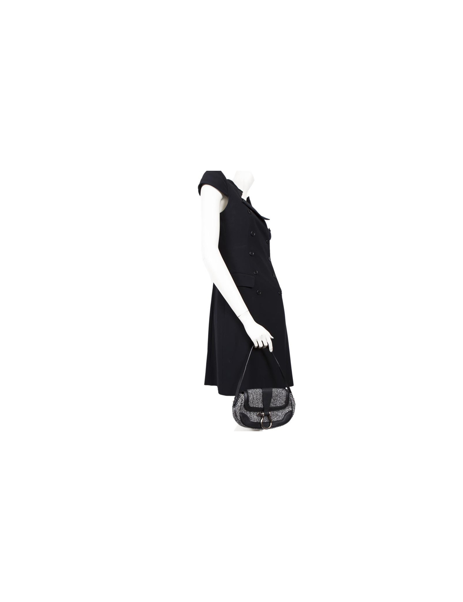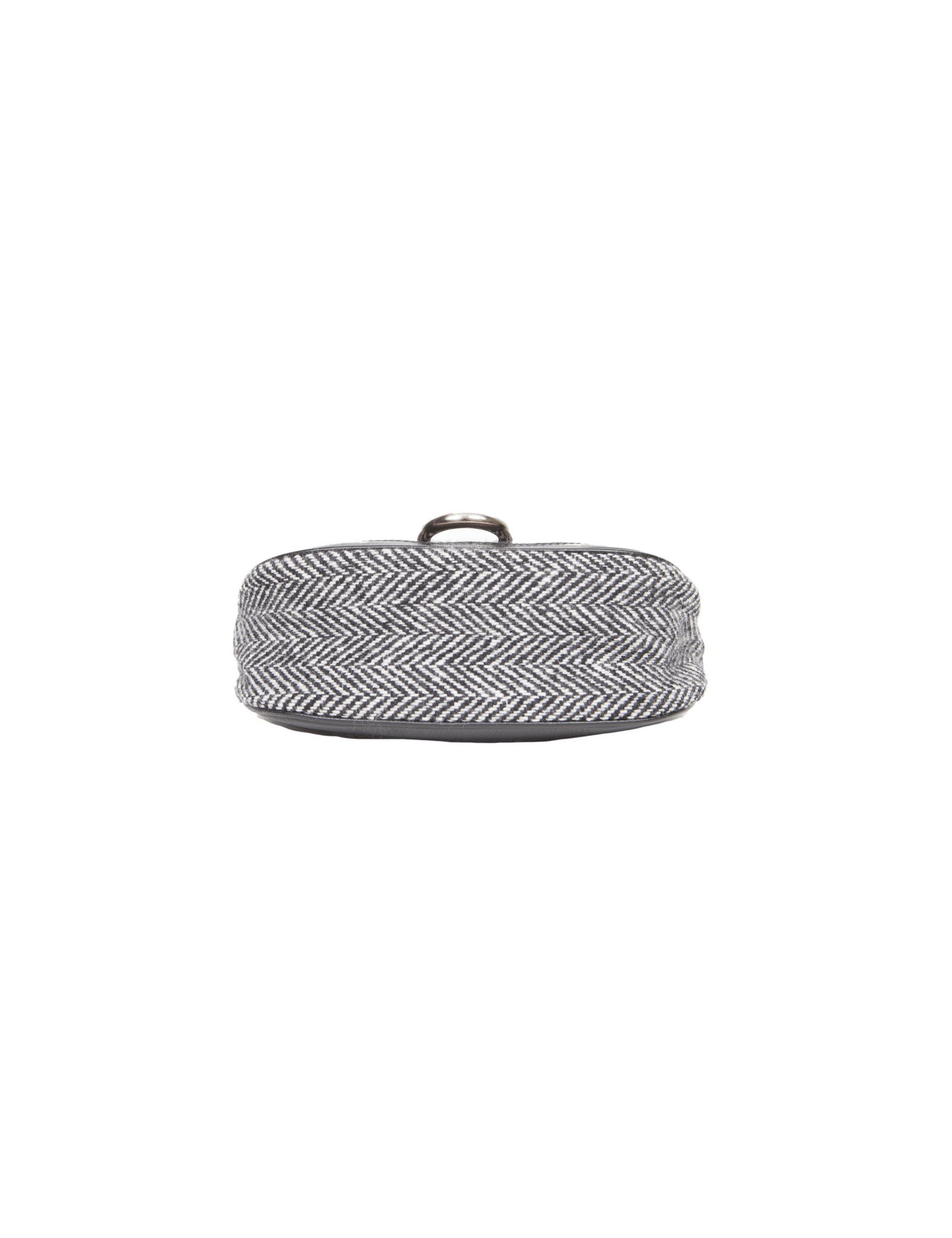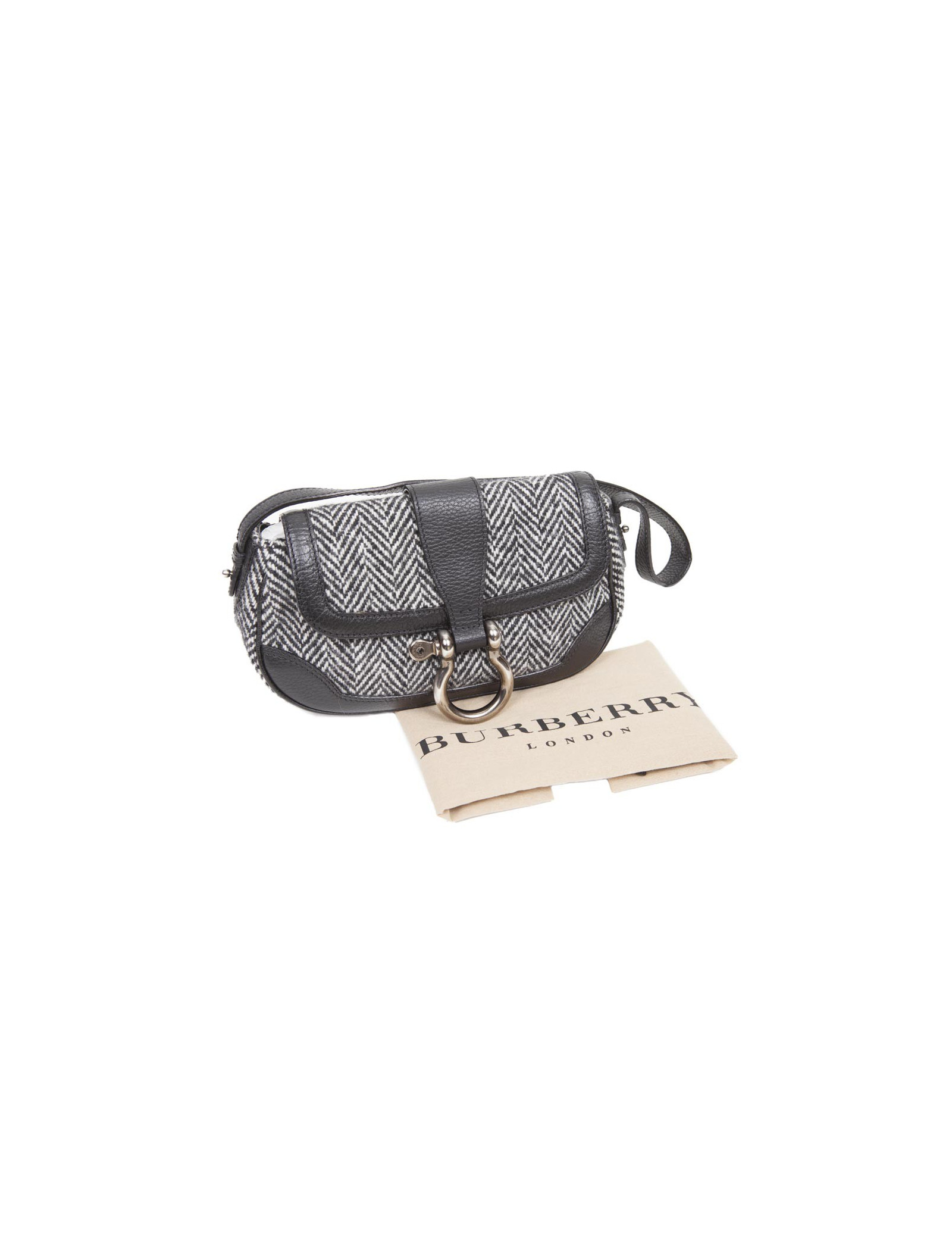 Burberry canvas chevron black and gray and black grained leather bag. The jewelry is silver color brass. Snap button closure. The Interior is black cloth with a zipped pocket, the zipper of the ends with a silver key. The bag is worn on the shoulder.