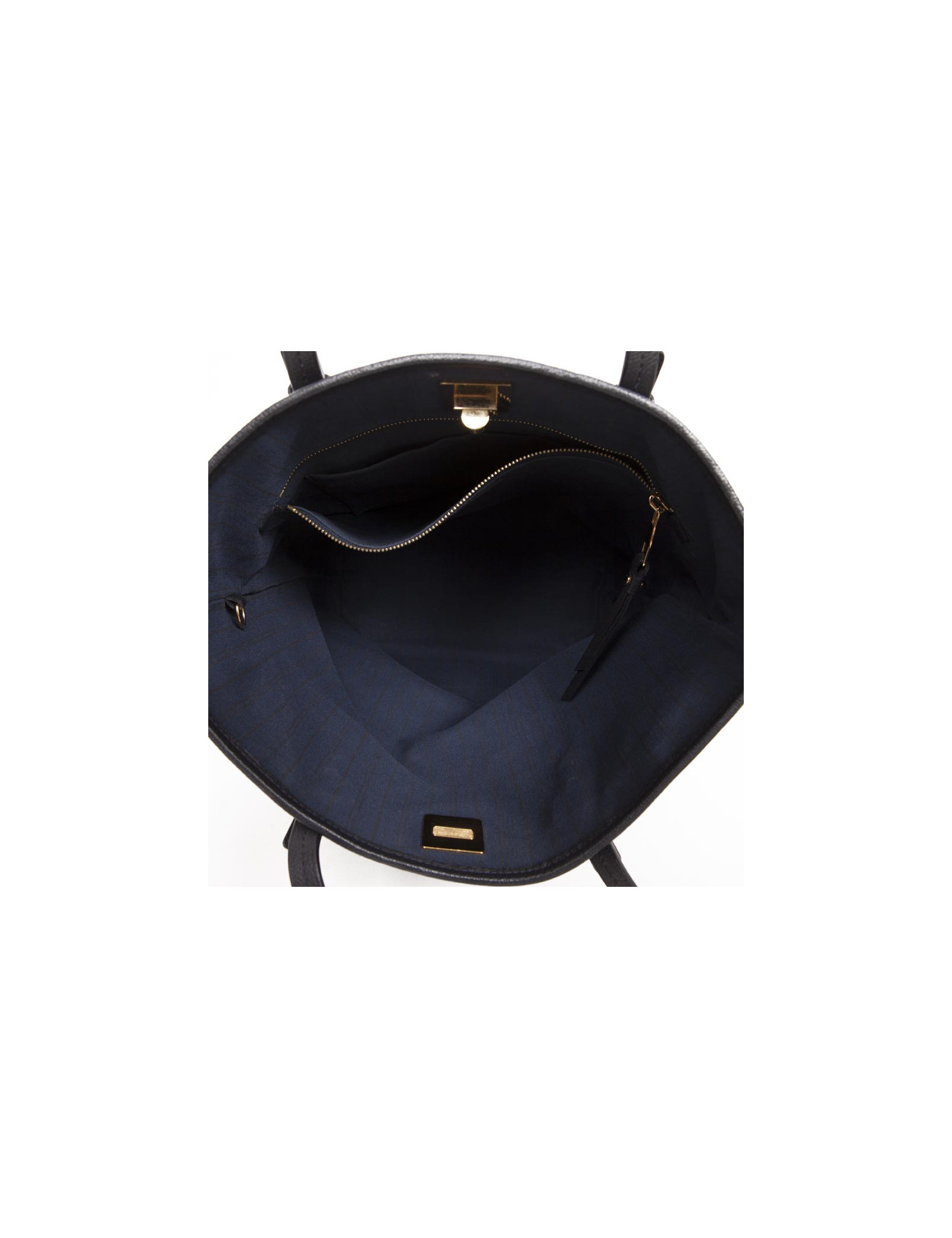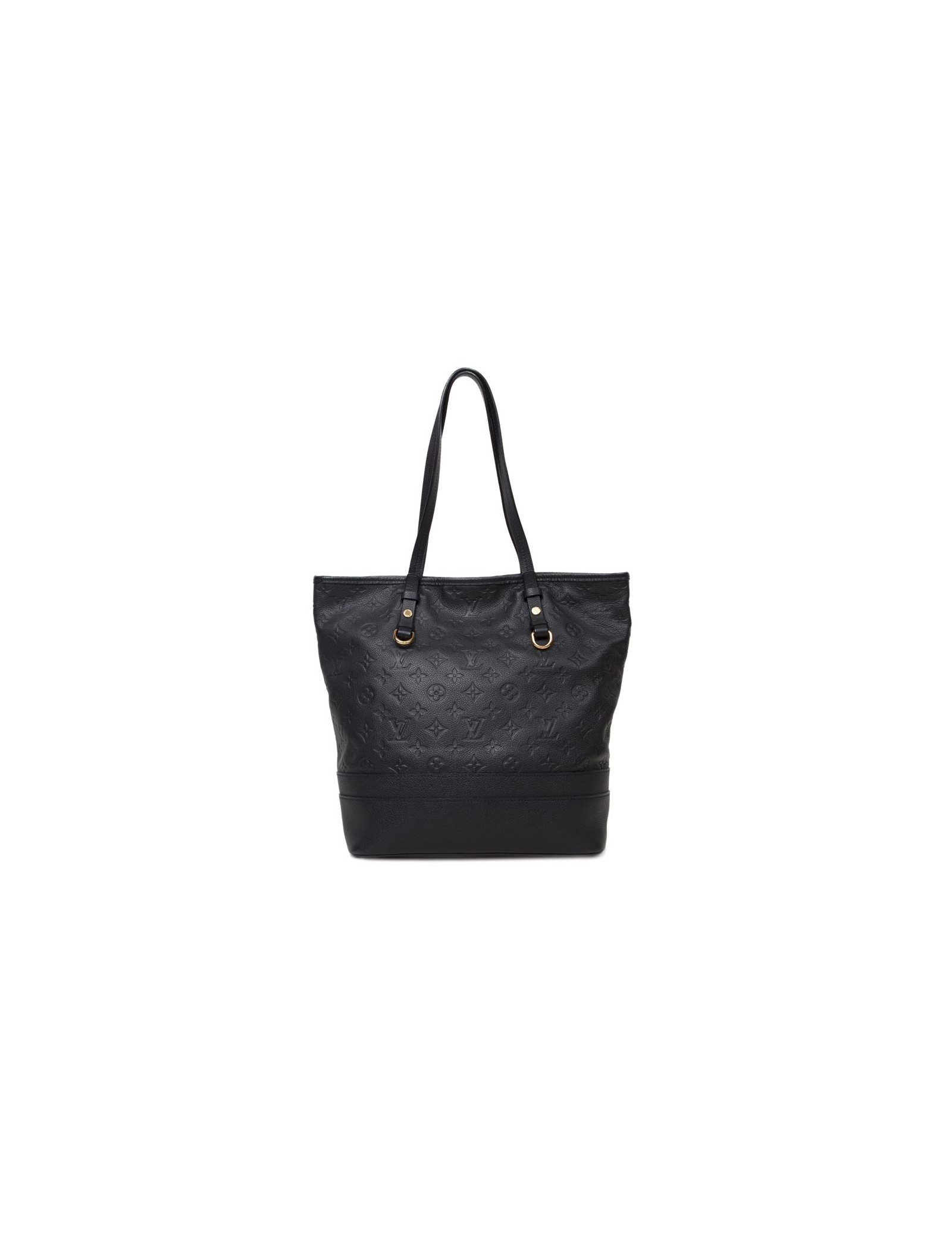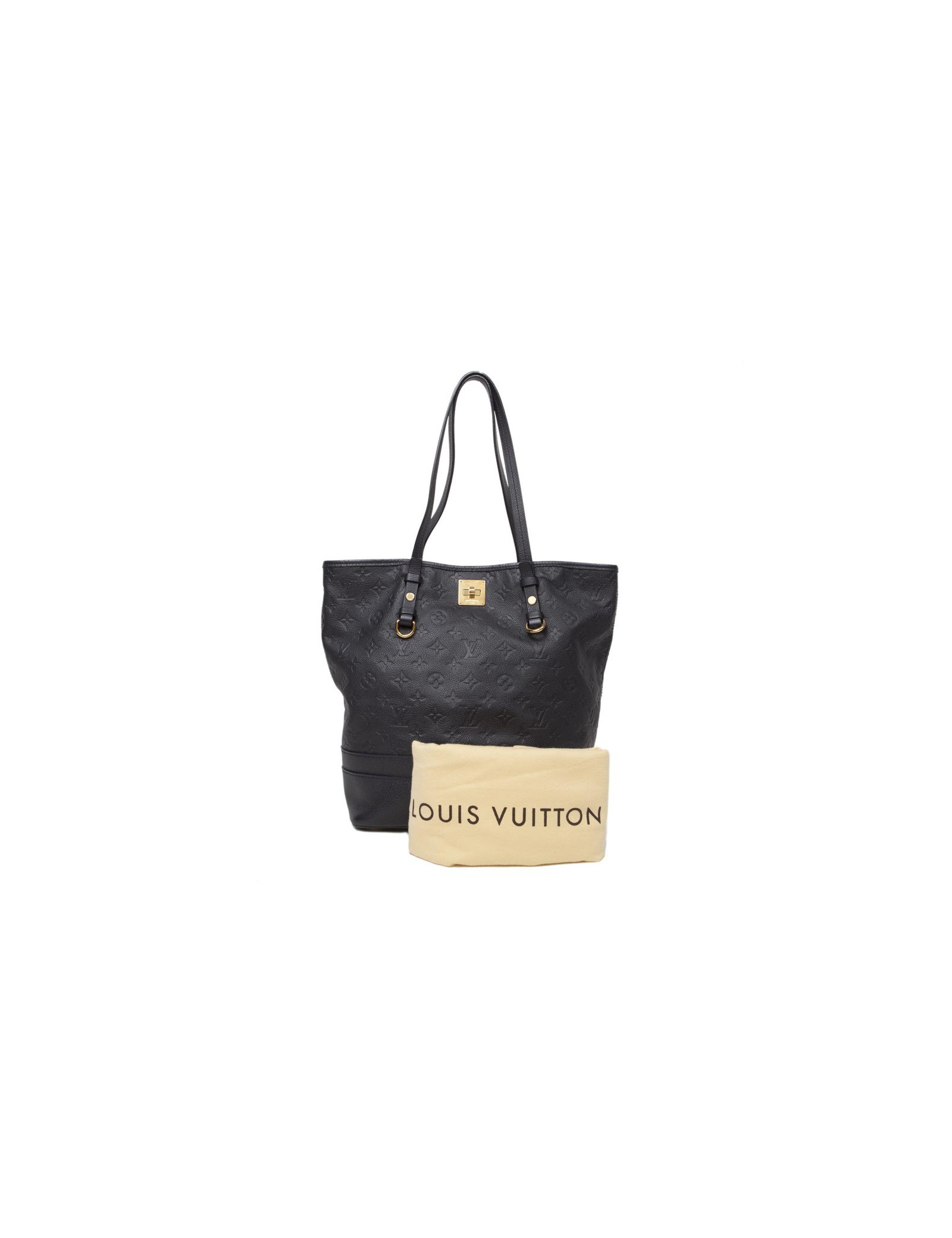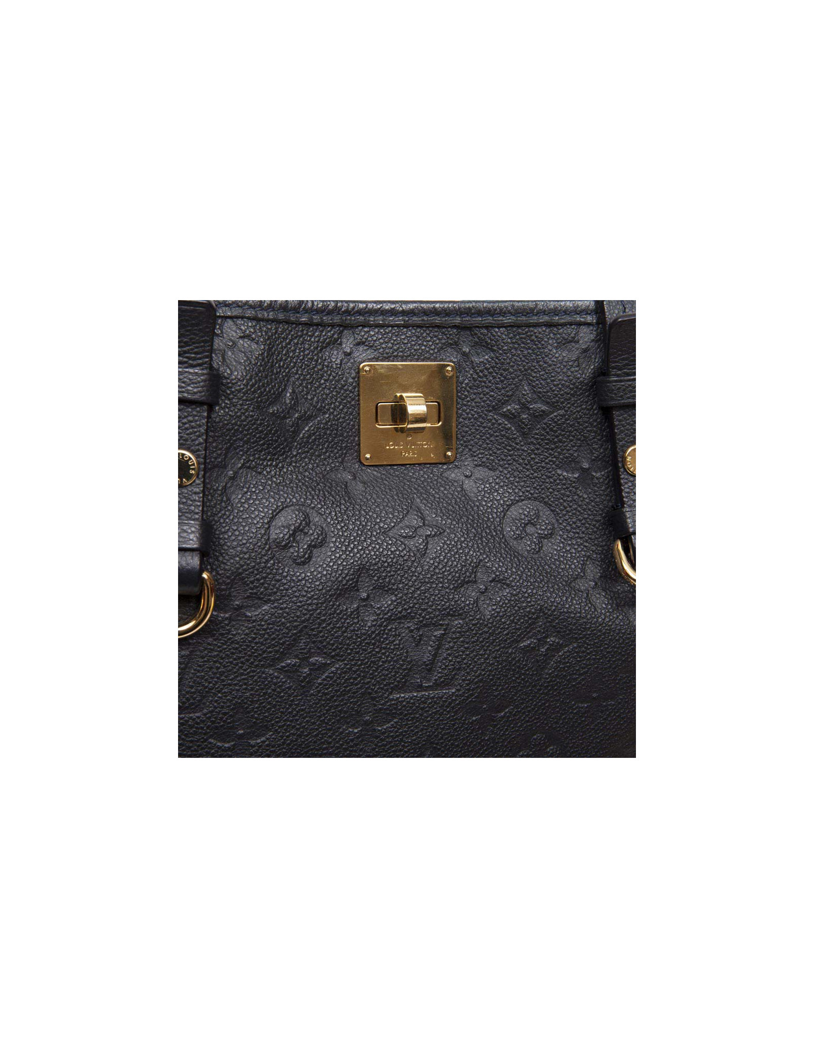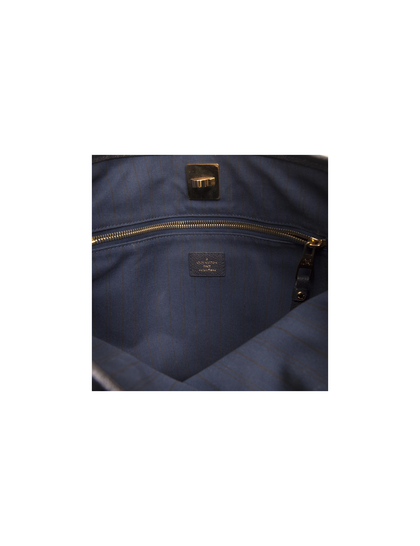 The Maison Louis Vuitton leather embossed grain blue monogram bag. Golden metal parts. The Interior is blue textile scratched with a zipped pocket and two locations for smartphones. In very good condition. The corners are slightly weathered practically invisible. Serial number label: V15111 in the inside pocket. He is in the shoulder: 51 cm