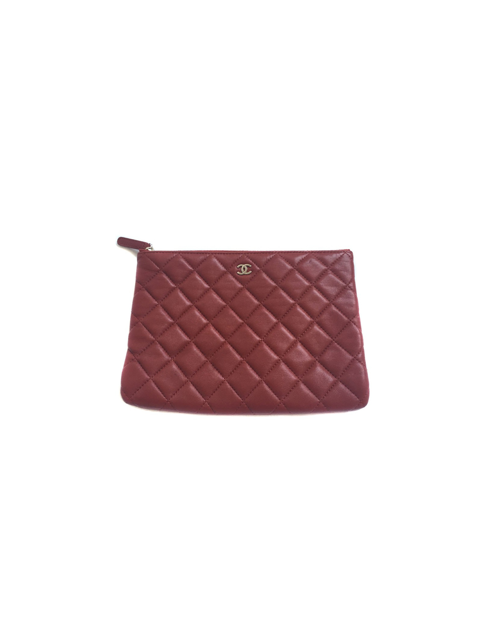 CHANEL Burgundy quilted leather pouch