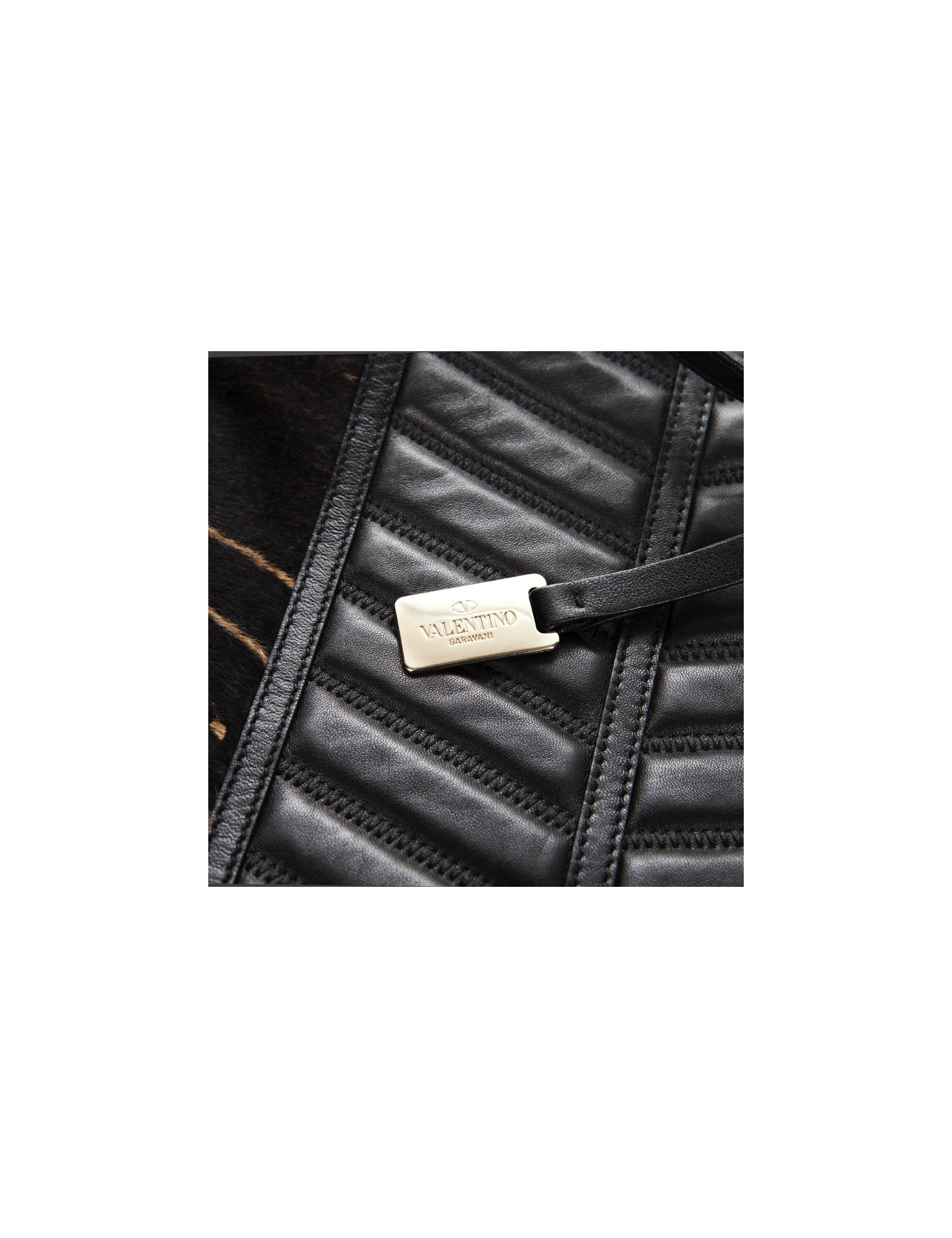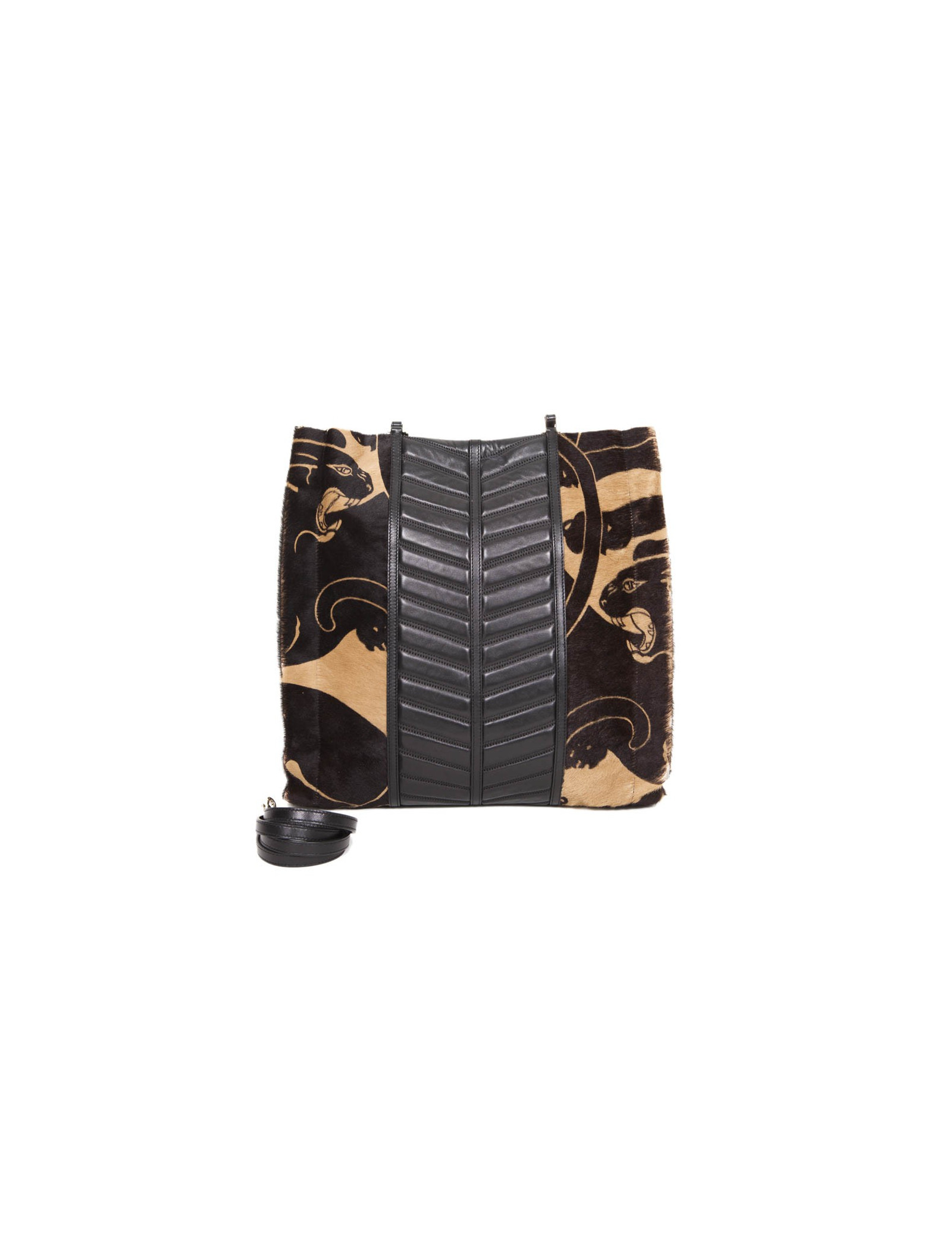 Valentino bag in goat leather with a panther design and black smooth lamb leather in the center.