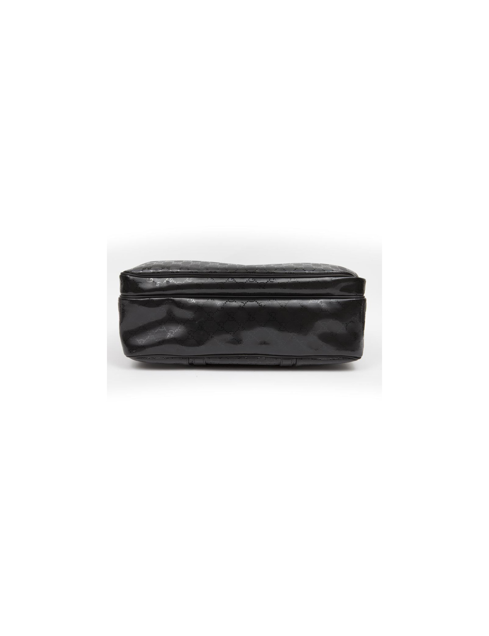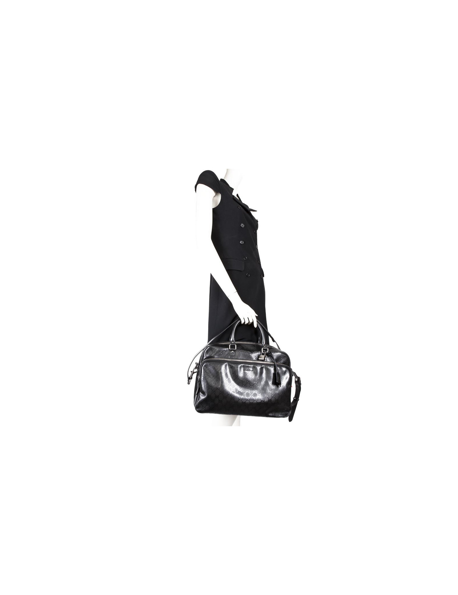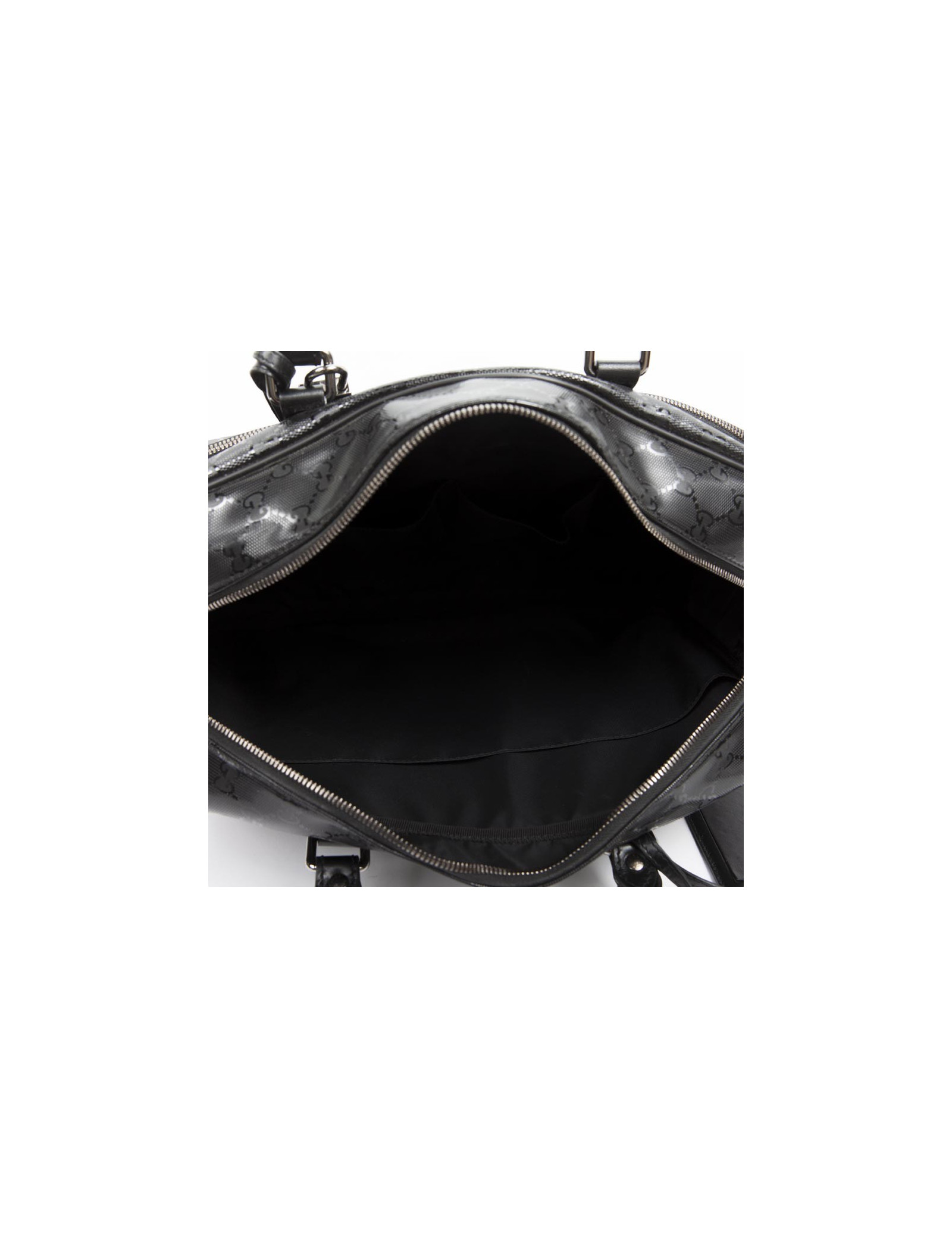 Shiny black Gucci canvas monogram House tote bag. The jewelry is silver metal. Zipped. He is doing by hand and shoulder using a doubled removable leather strap (1.20 cm). The two handles are made of black leather.
