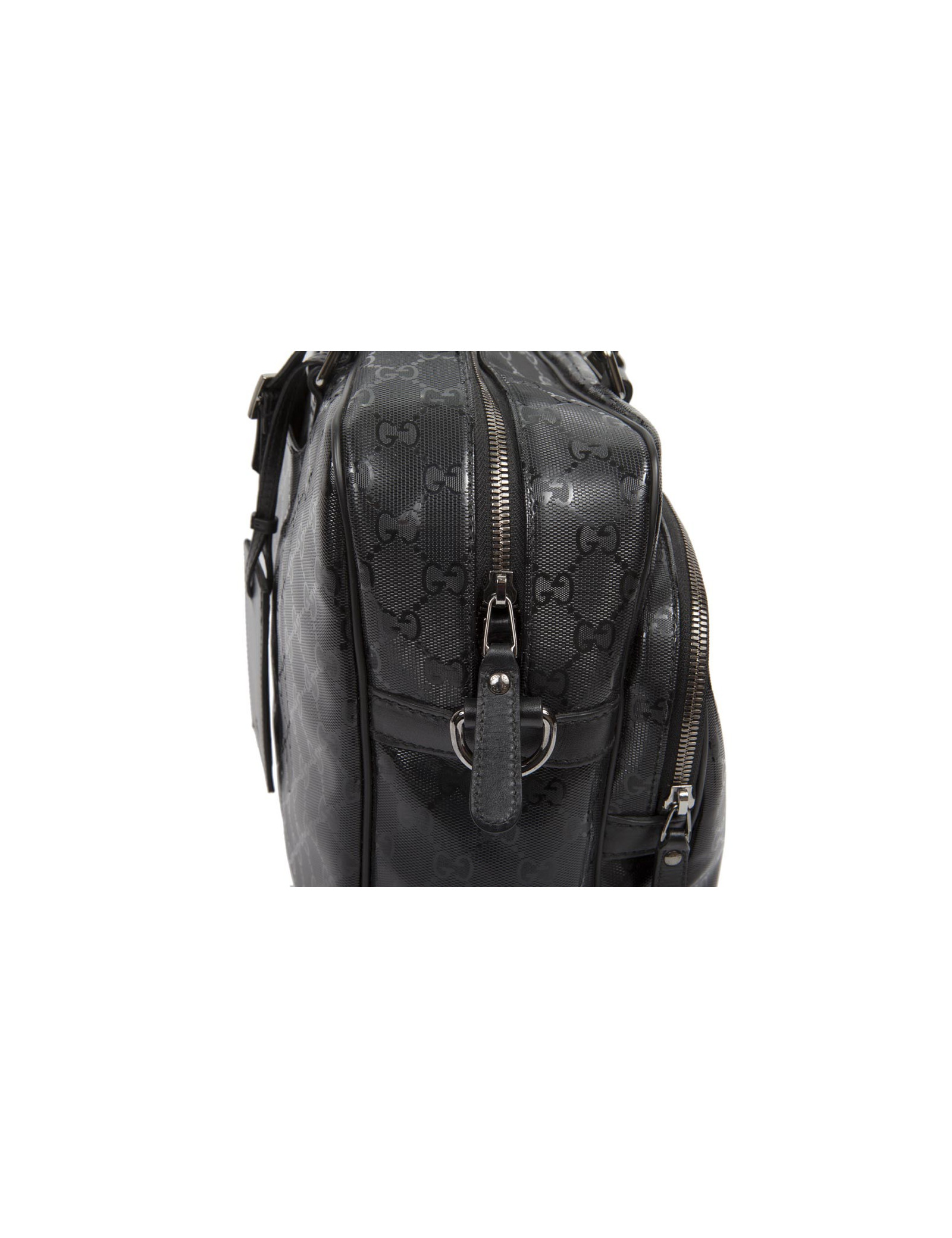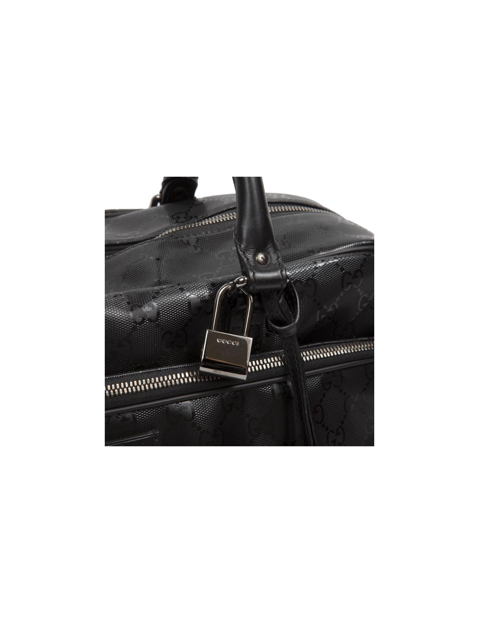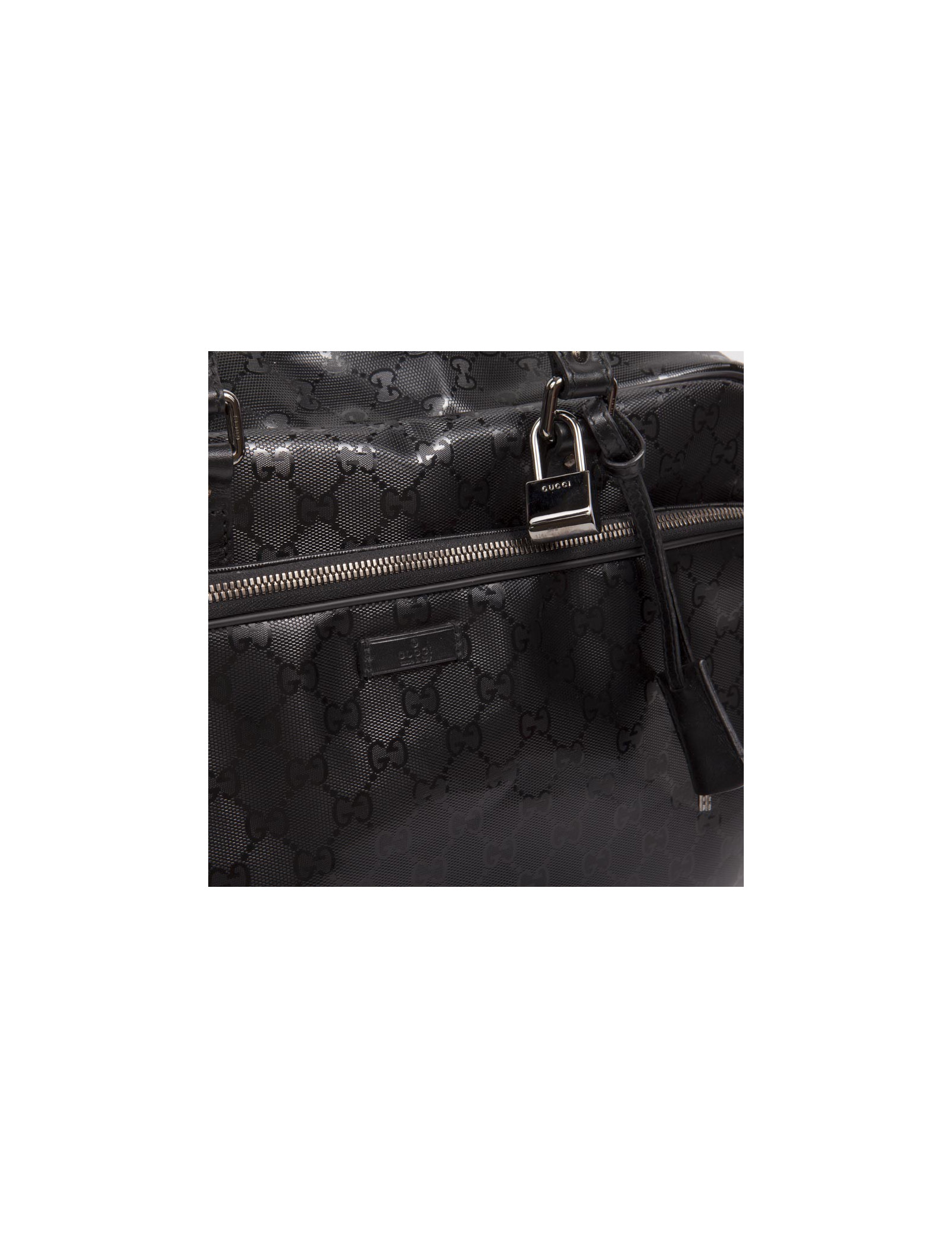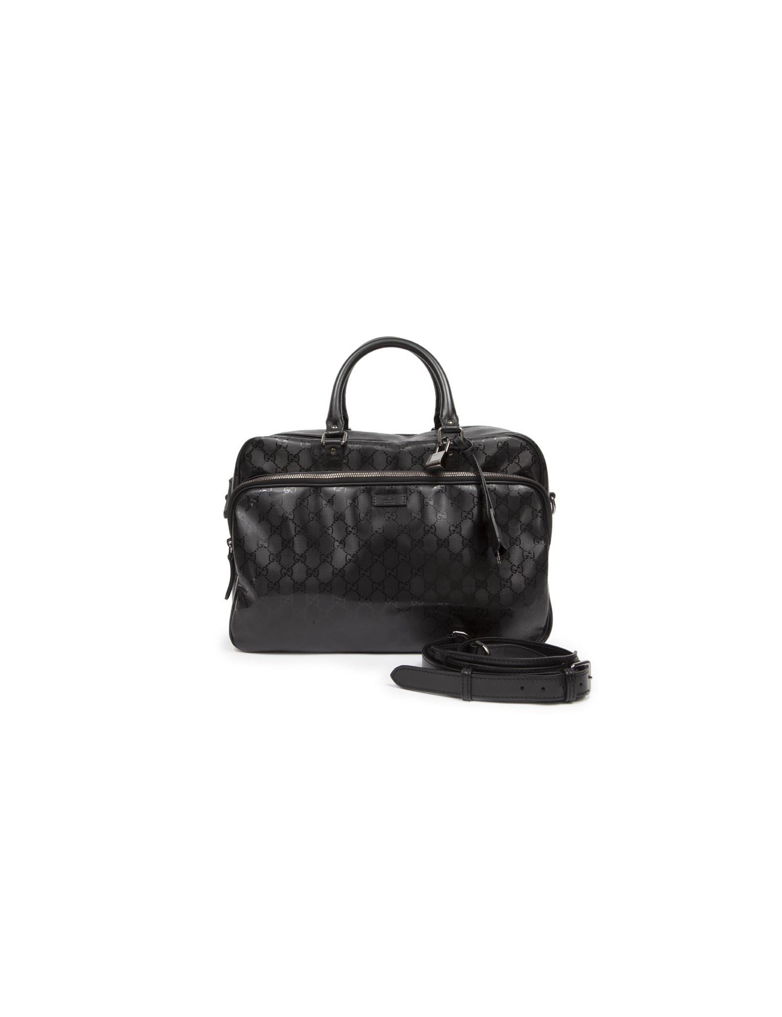Shiny black Gucci canvas monogram House tote bag. The jewelry is silver metal. Zipped. He is doing by hand and shoulder using a doubled removable leather strap (1.20 cm). The two handles are made of black leather.