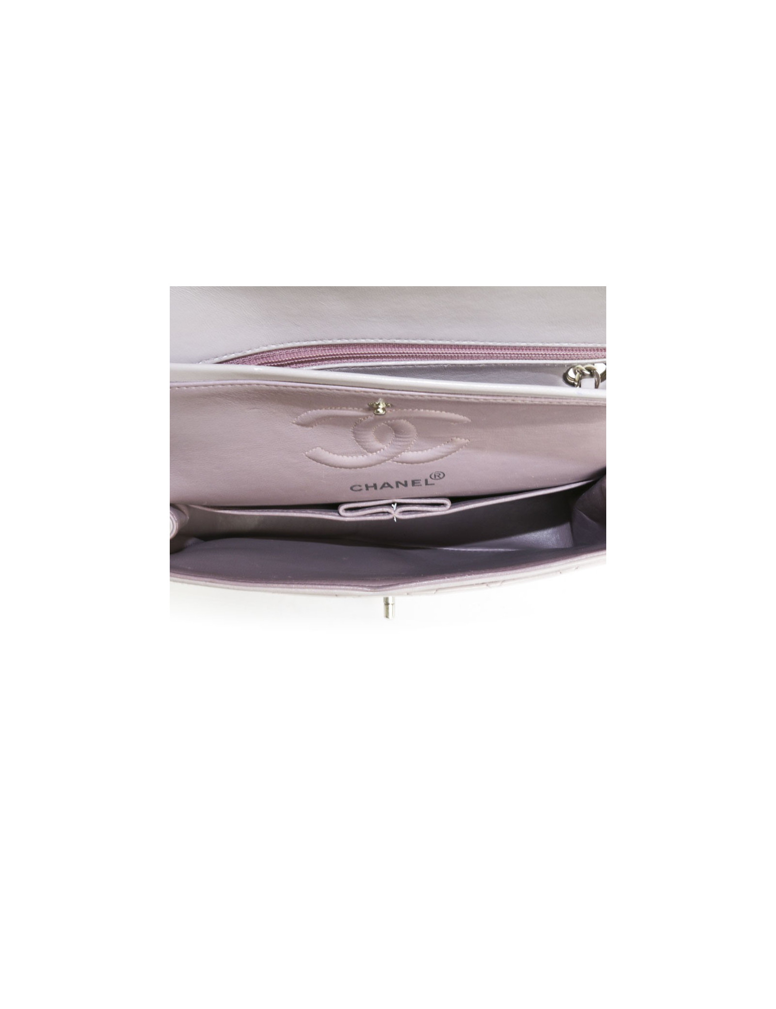 'Timeless' of Parma the House of Chanel quilted lamb leather bag. Clasp 'CC'. Silver jewelry. Double flap. Hologram: 5273... No authenticity card. the Interior is in purple lambskin darker with 3 plated pockets. In very good condition. A few light scratches on the inside, but very little visible.