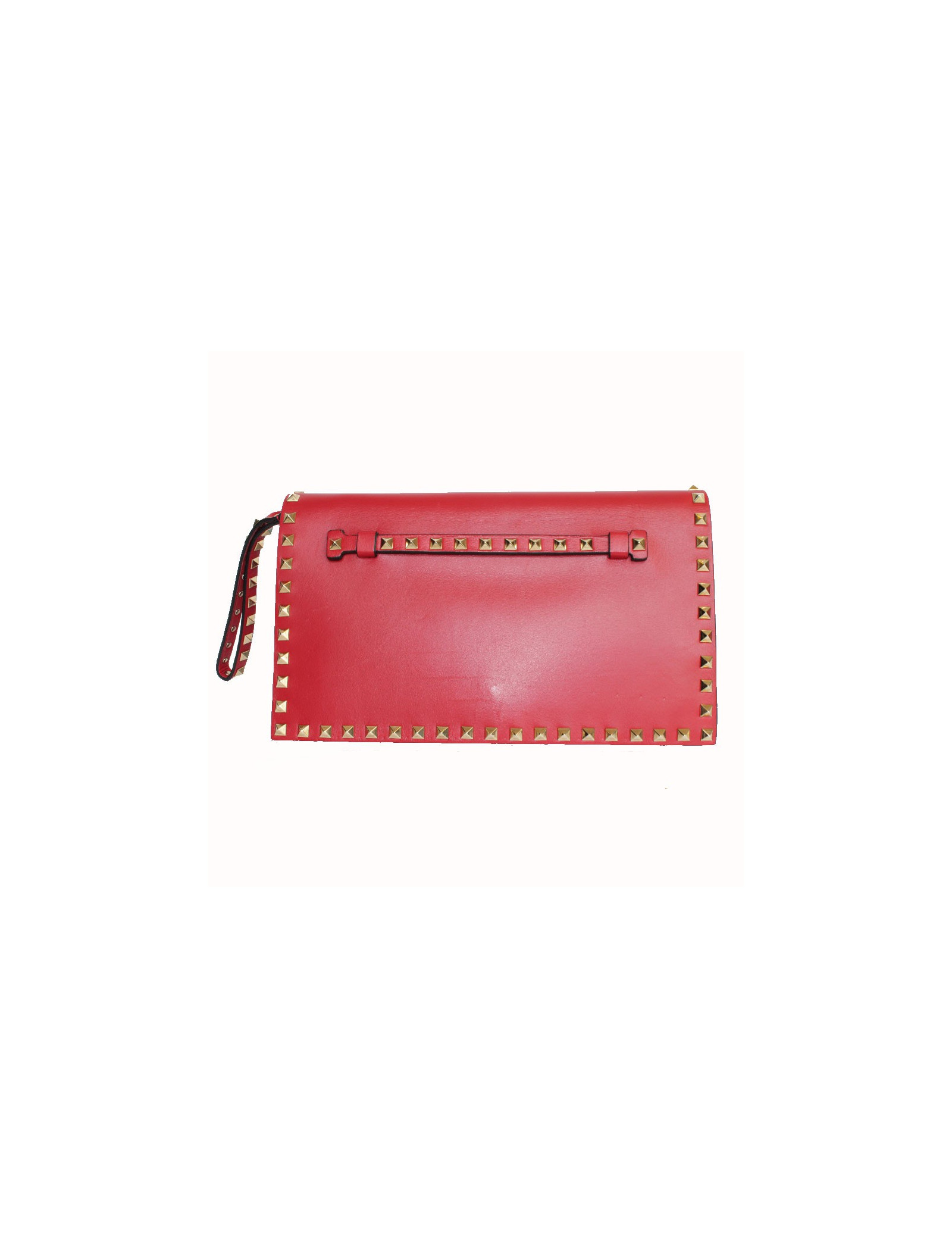 Pocket line Rockstud Valentino Garavani's red leather. Golden nails. Snap button closure. The Interior is beige leather pink with two separated by a flat Pocket storage spaces. Door to the hand and the handle. In very good condition. A few brands of nails at the front and rear. See photos.