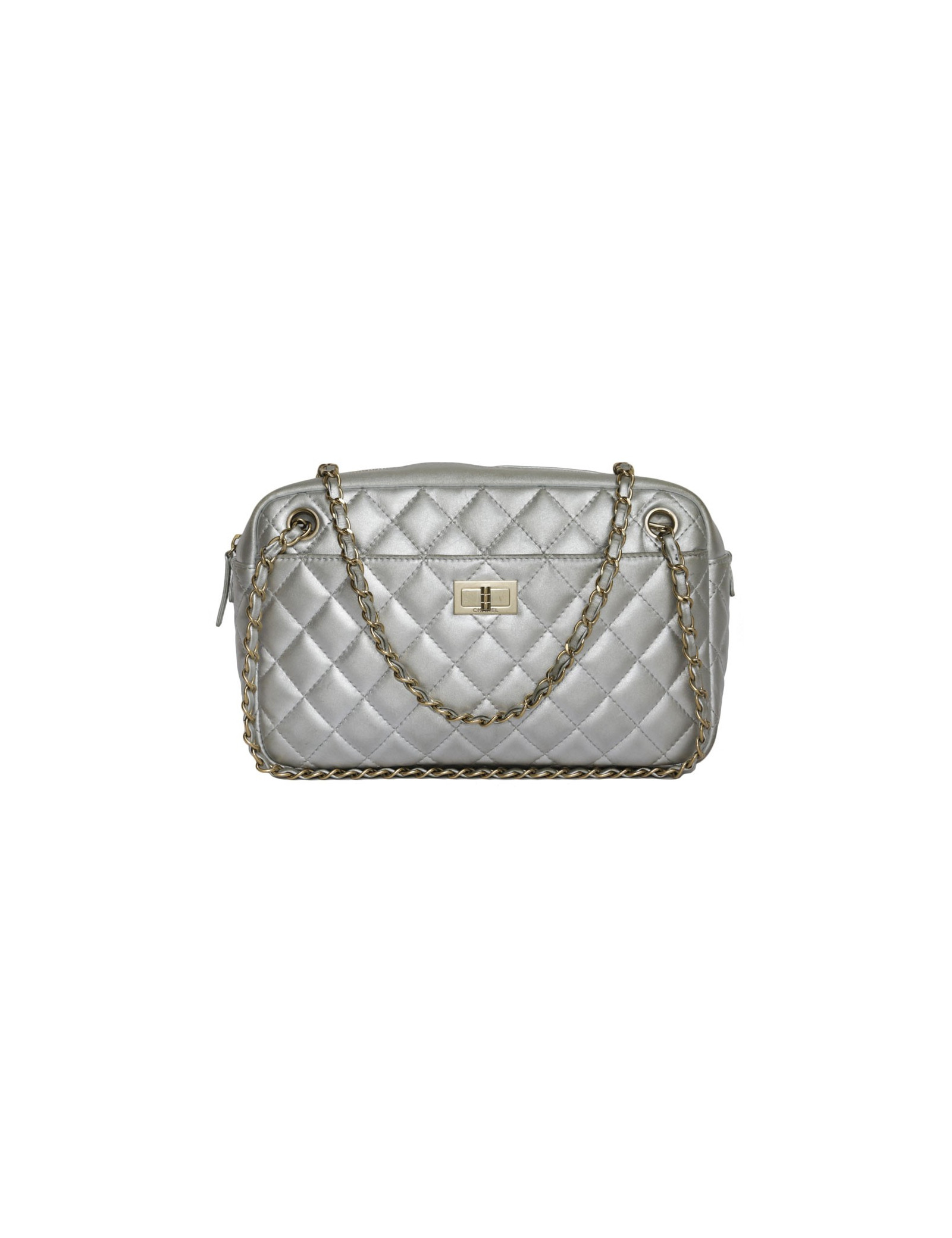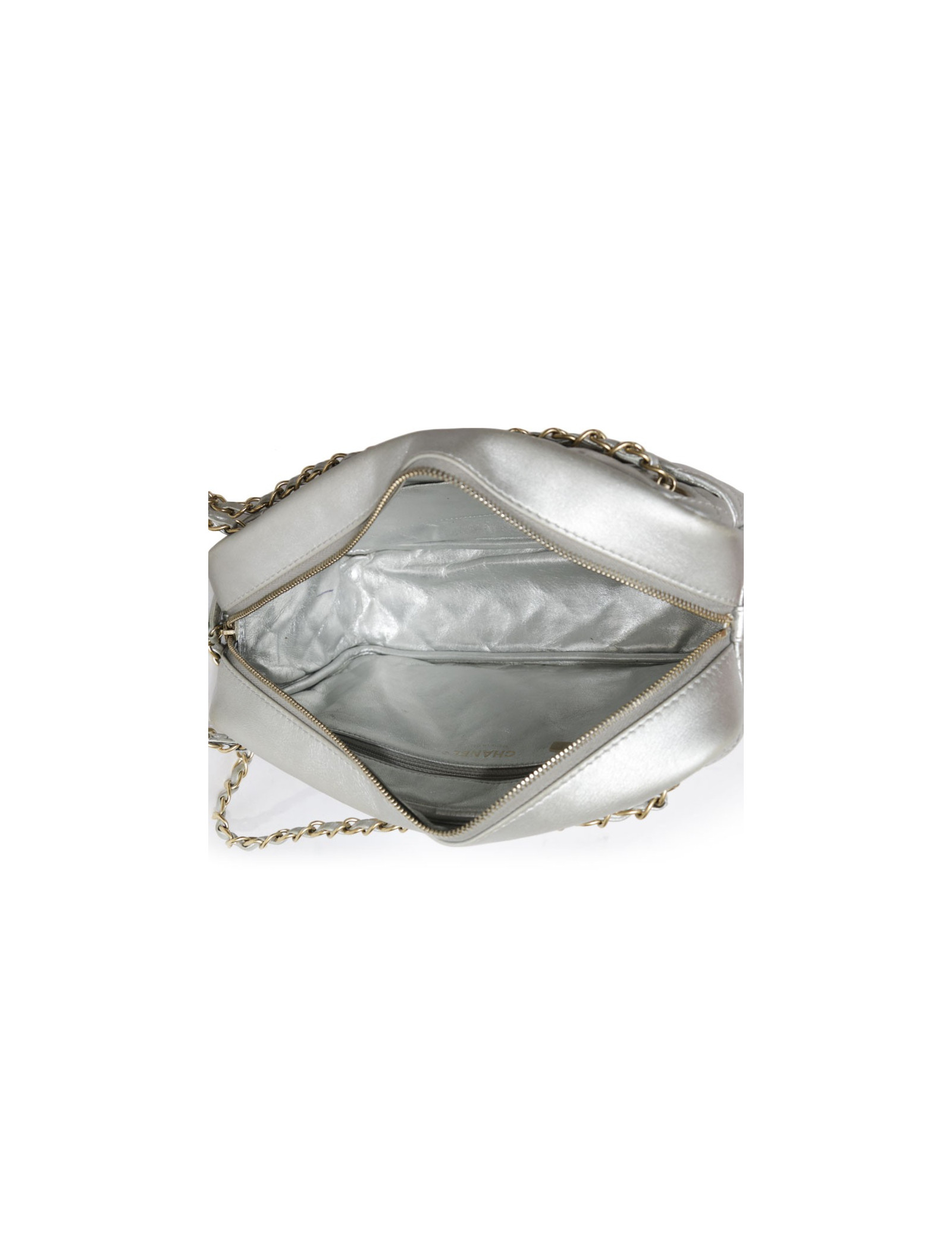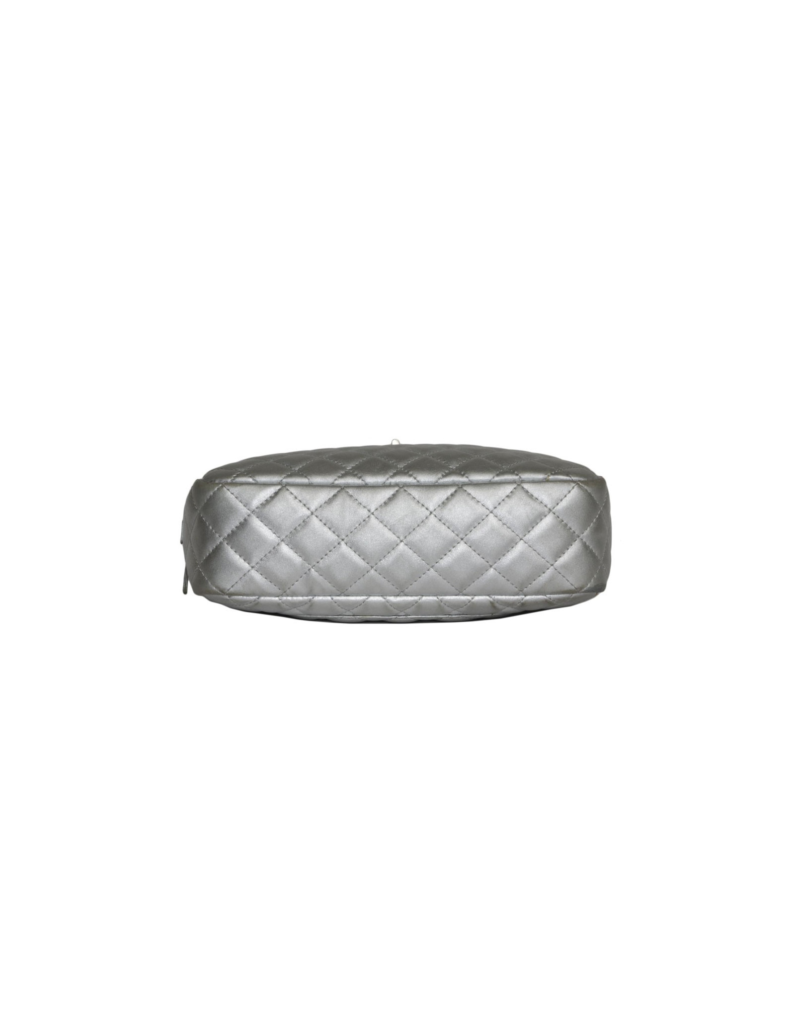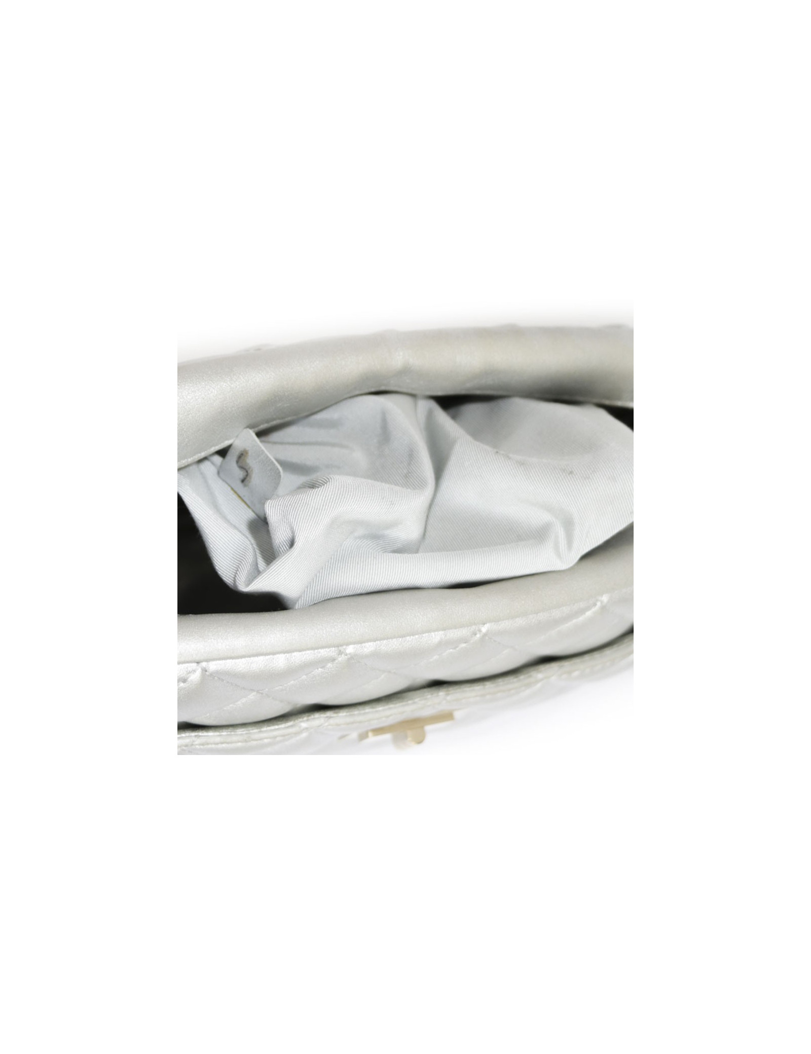 'Camera bag ' "Boy" quilted leather Chanel House silver clasp. Zipped. Golden jewelry mate. The Interior is leather silver with 3 pockets including 1 zipped. Sales inside s. A flat front and back pocket. In very good condition.