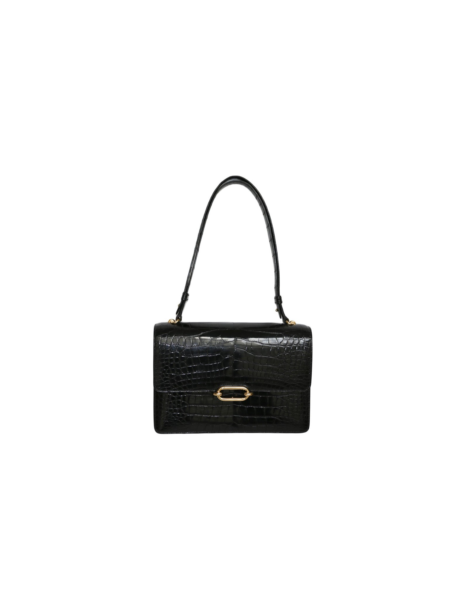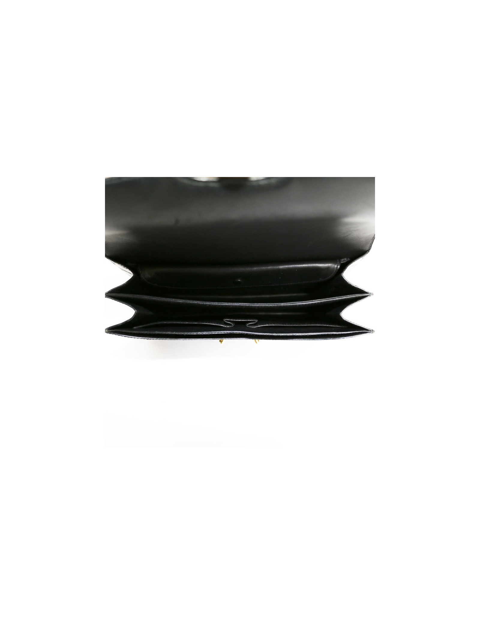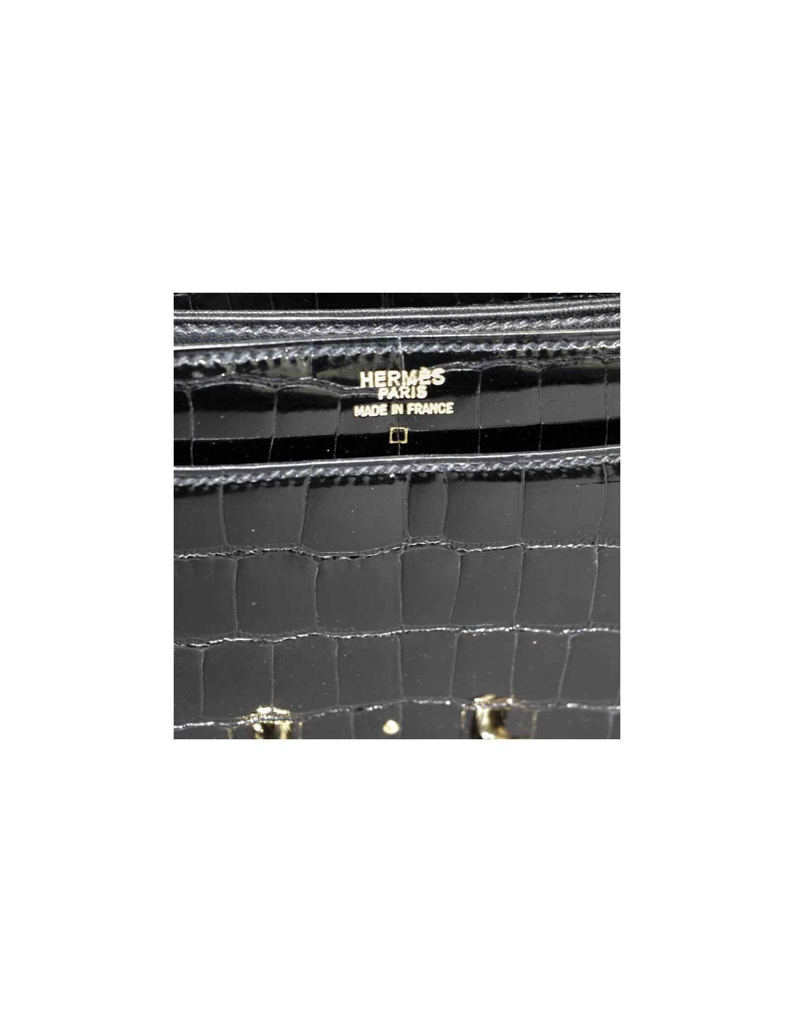 Vintage! Hermès alligator bag. Golden jewelry. Inside, two compartments in black smooth supple lambskin with a Pocket closed with a snap. In perfect condition.