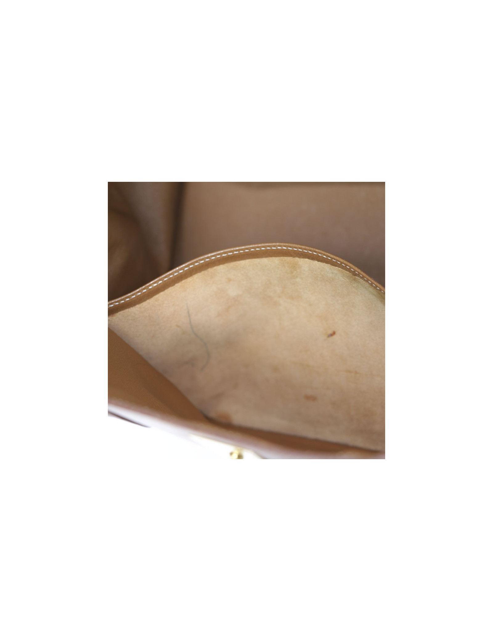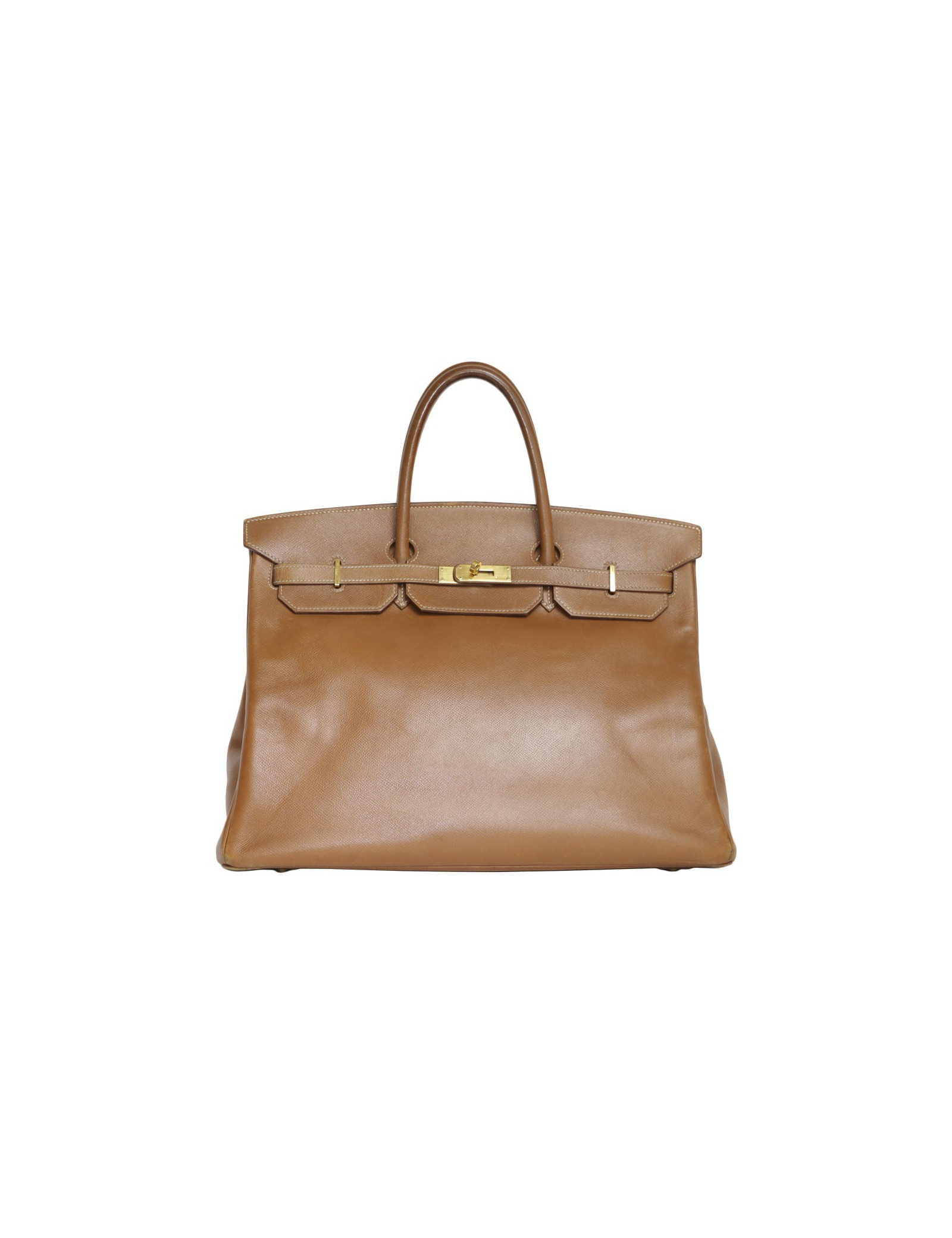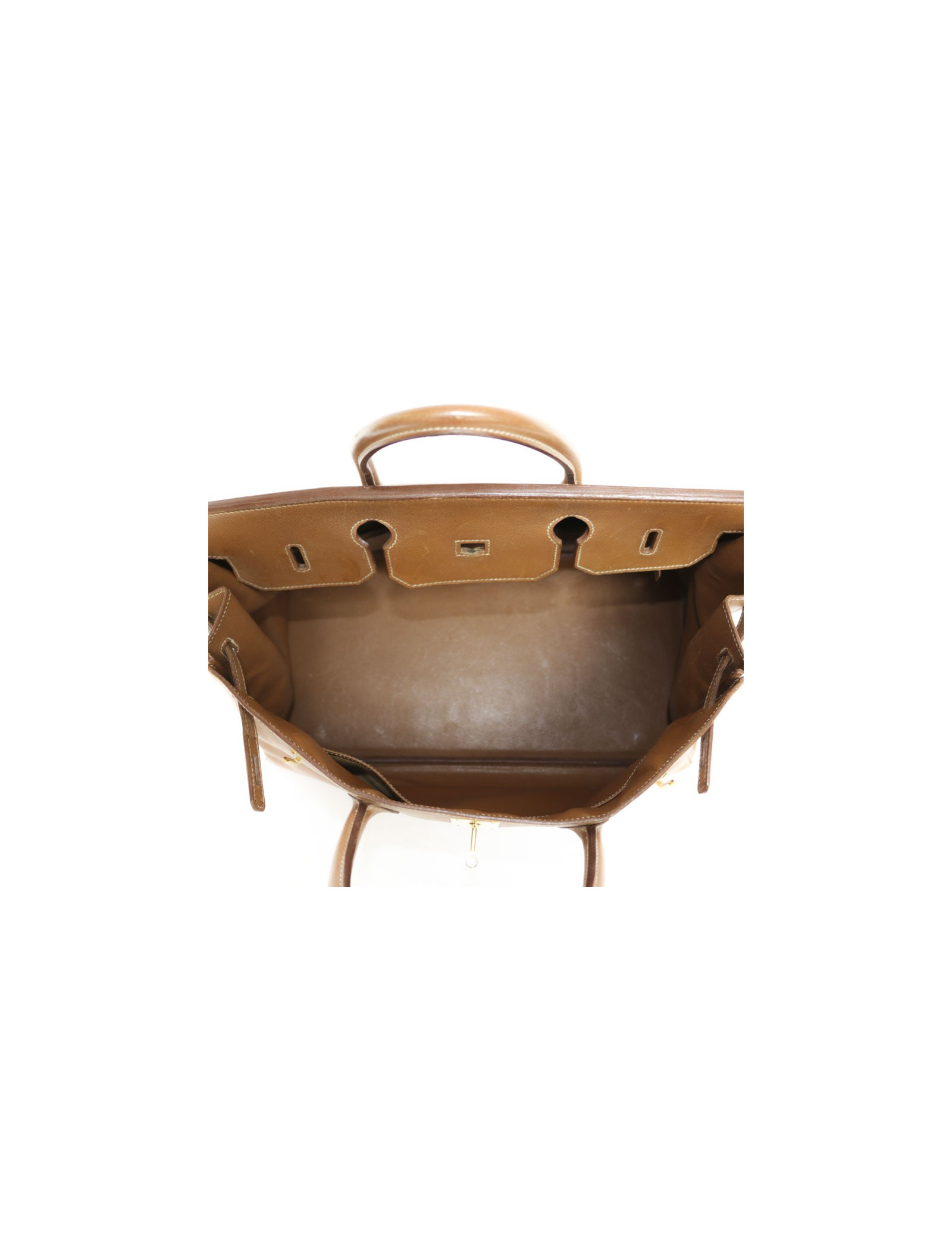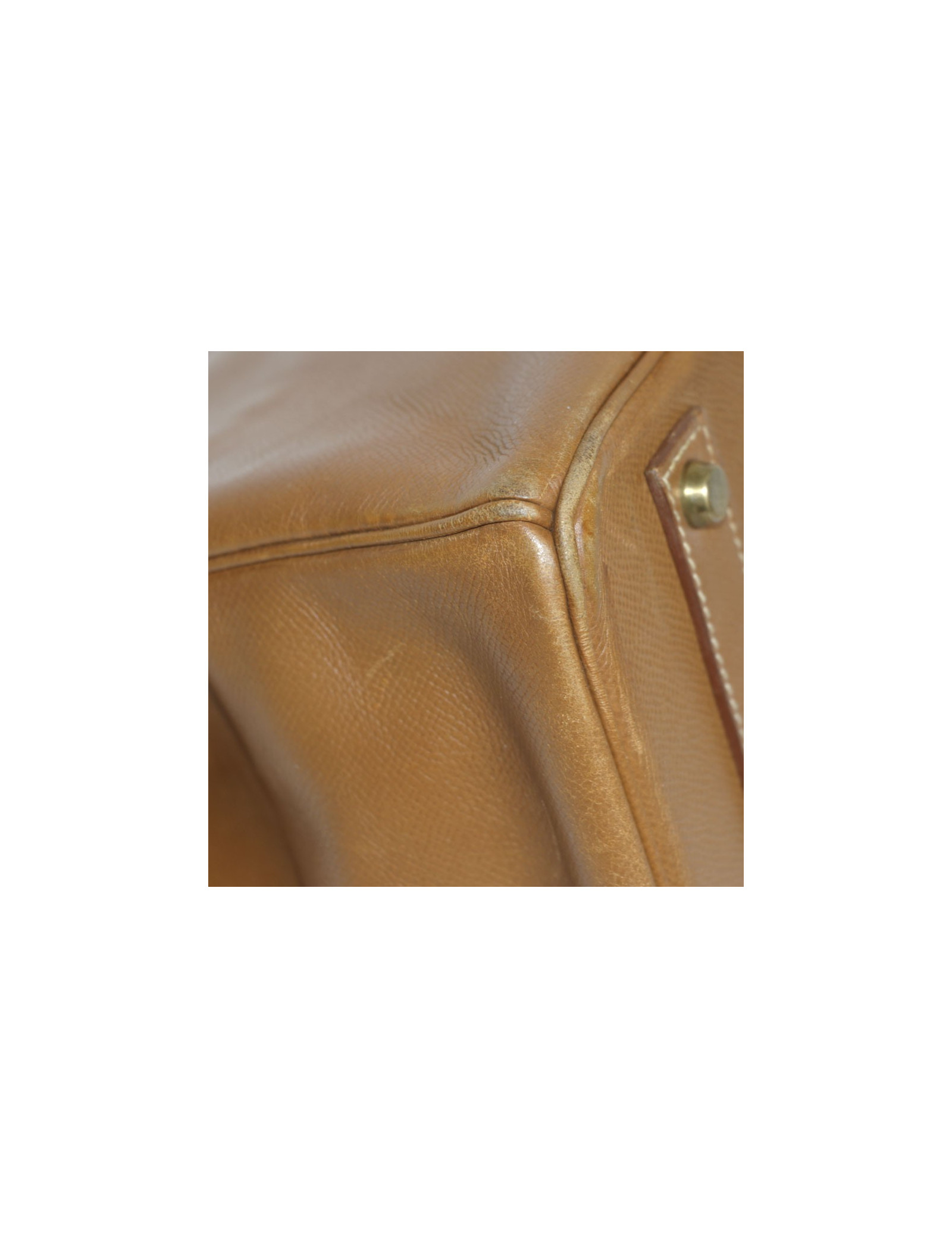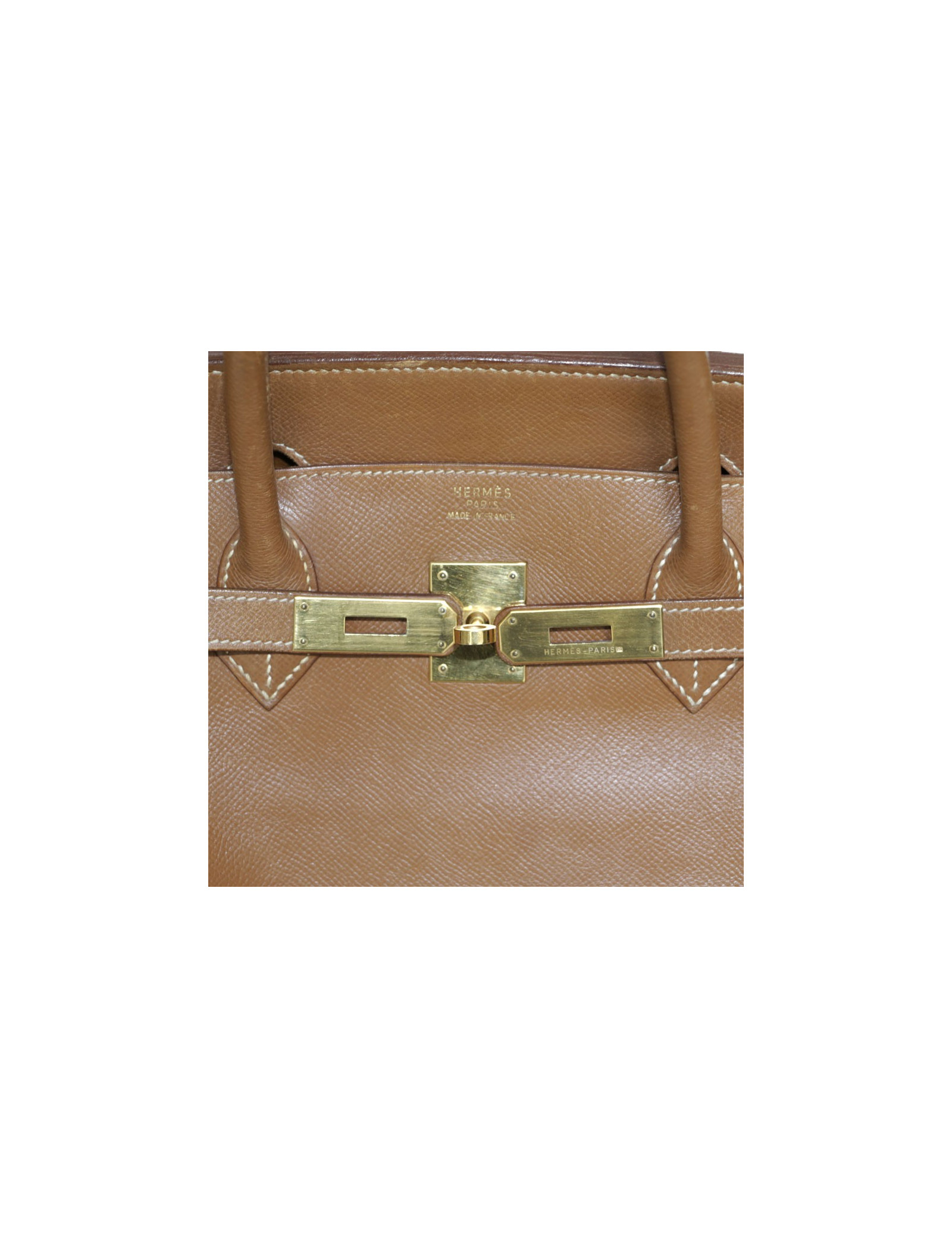 Birkin 40 epsom gold of Hermès leather. Golden jewelry. Letter Y in a round. Padlocks and keys, missing zipper and Tinker Bell. Inside, two large plated pockets and one zipped. In very good condition. A few scratches all over the bag. But little visible. See photos.