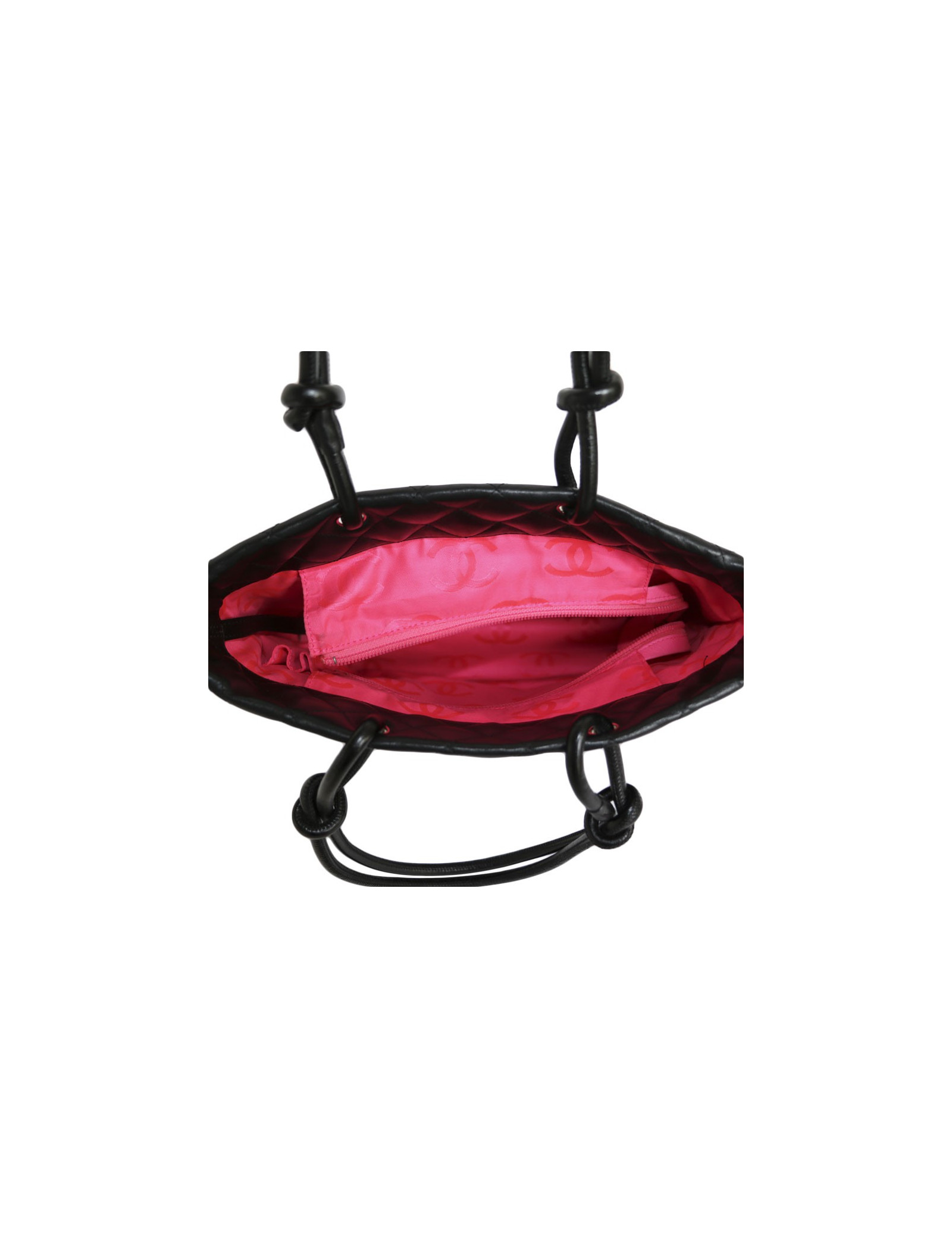 'Cambon' in black quilted leather and 'CC' leather bag white of the House of Chanel. Zipped. Hologram: 8865... No authenticity card. A flat rear pocket. The inside is fuschia pink monogram fabric with 2 zippered pockets. In very good condition.