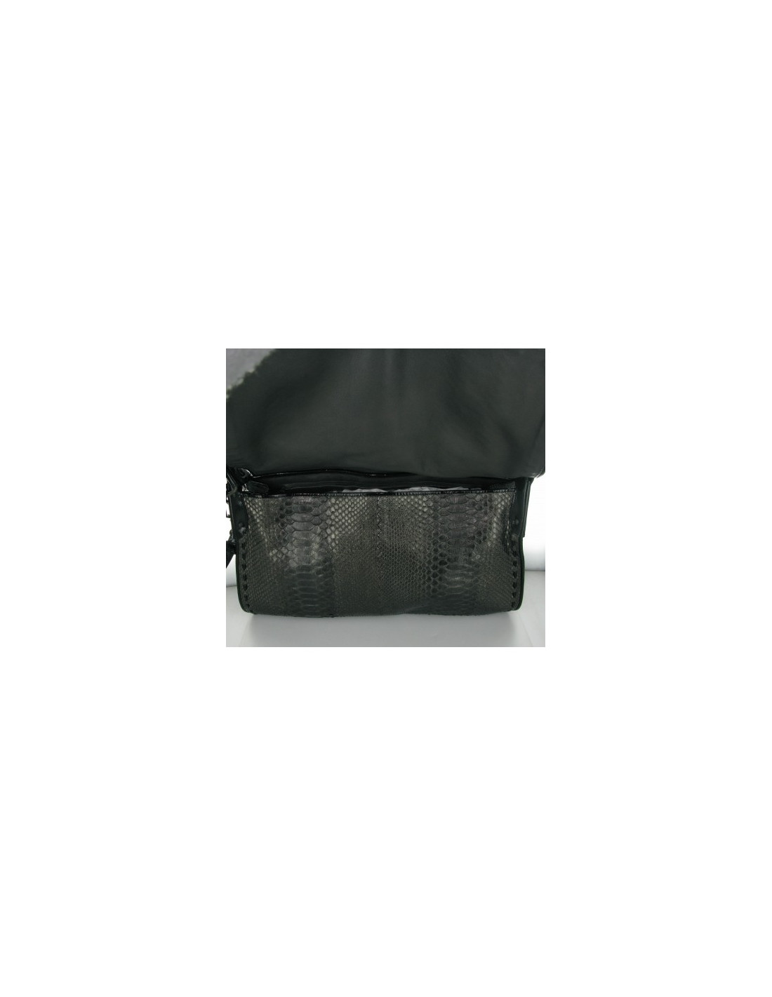 Very elegant Silver python bag strap leather varnish black Bottega Veneta - addition of black stitching varnished leather - rabat 24 cm double mouse grey soft leather - interior beige suede - Pocket zip + 1 pocket for such protable - can be worn hand a shoulder strap with carabiners 49 cm - can be worn a l ' with a second strap 84 cm shoulder withdraws by the carabiners - attributes : Matt Black - original dustbag.