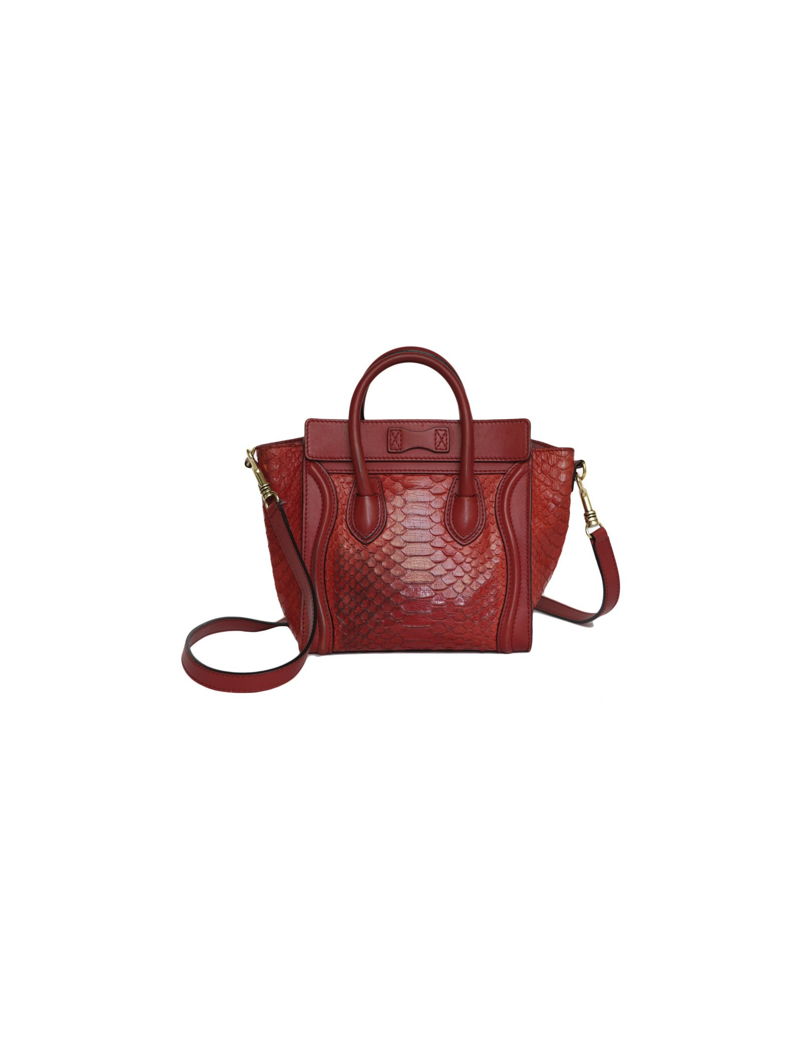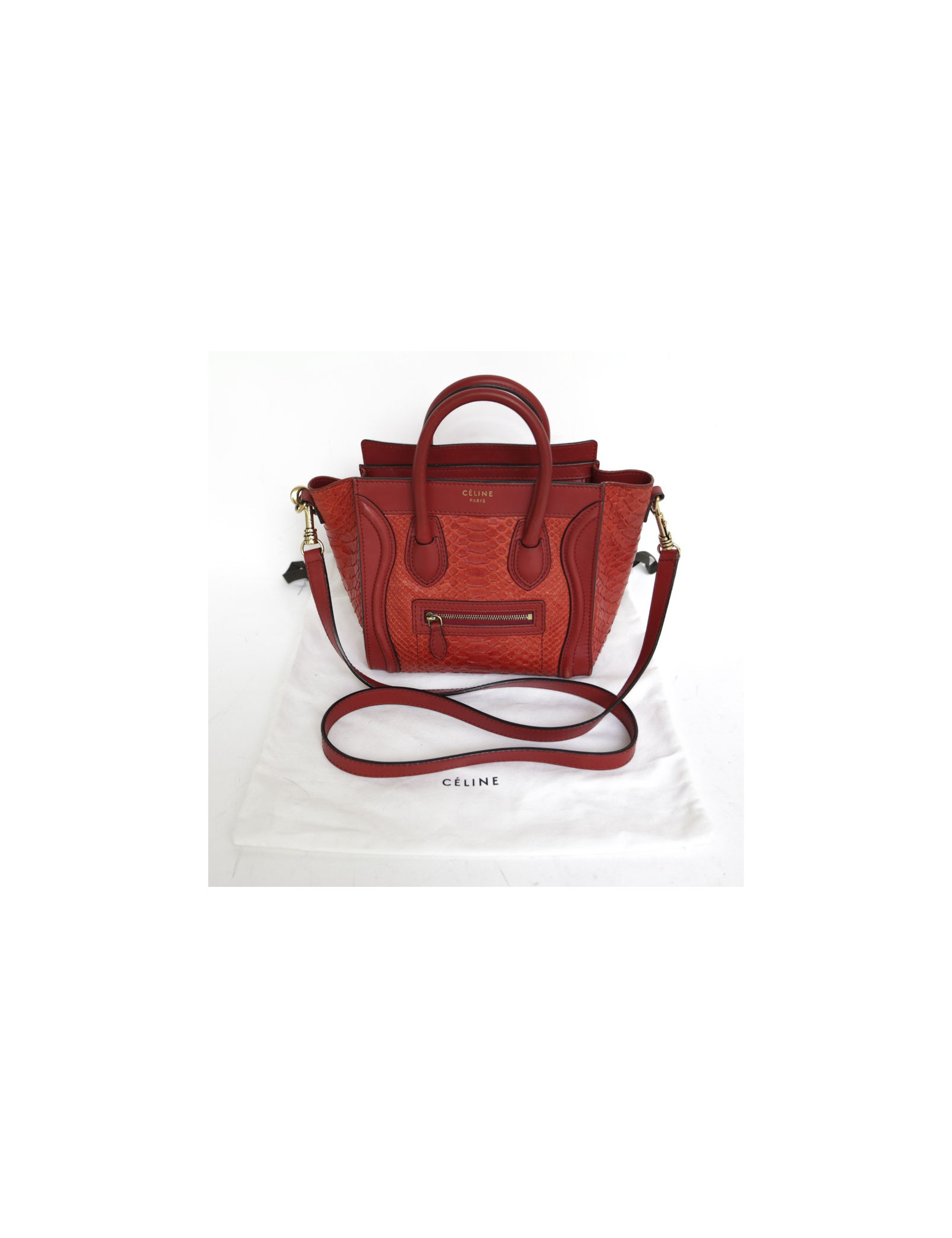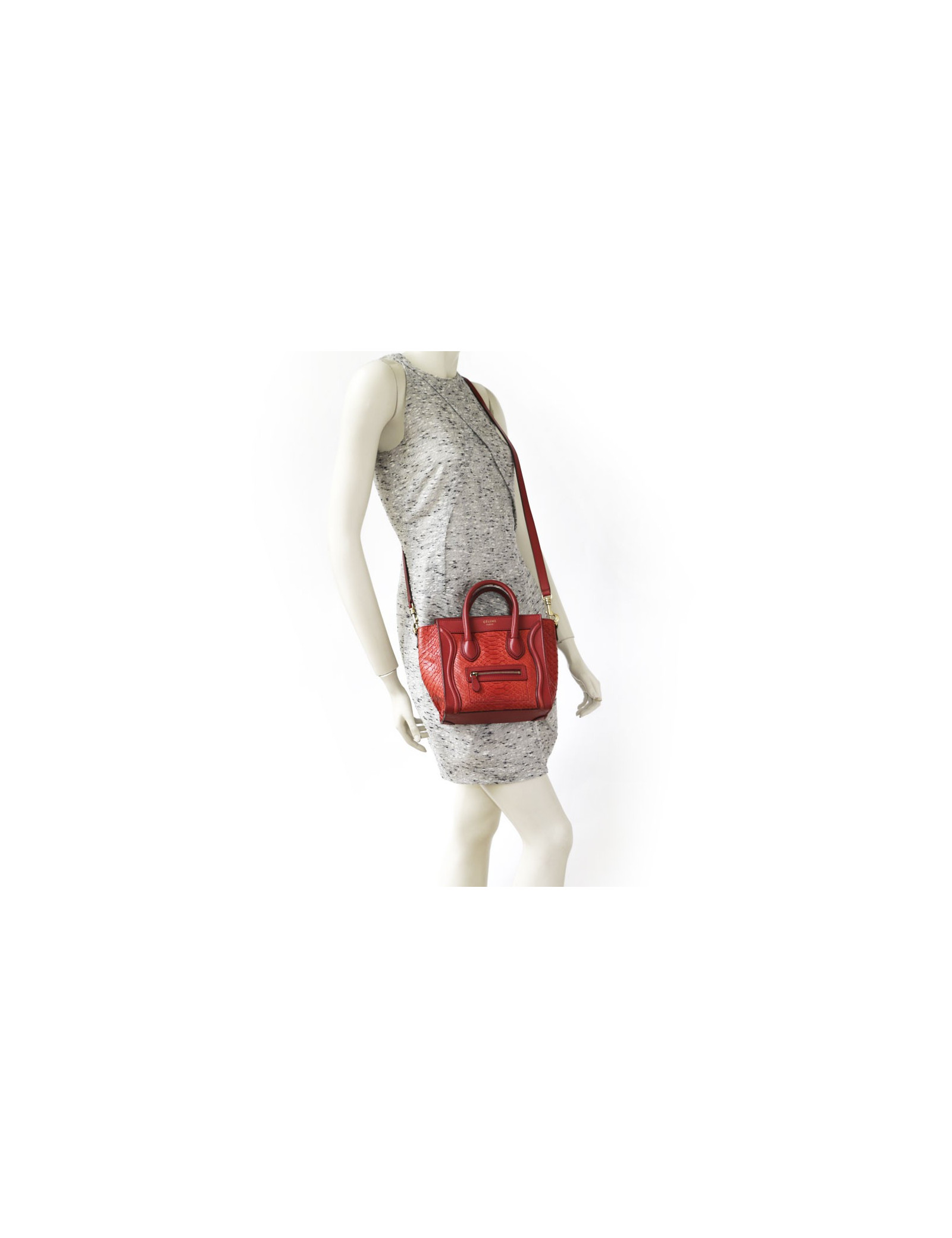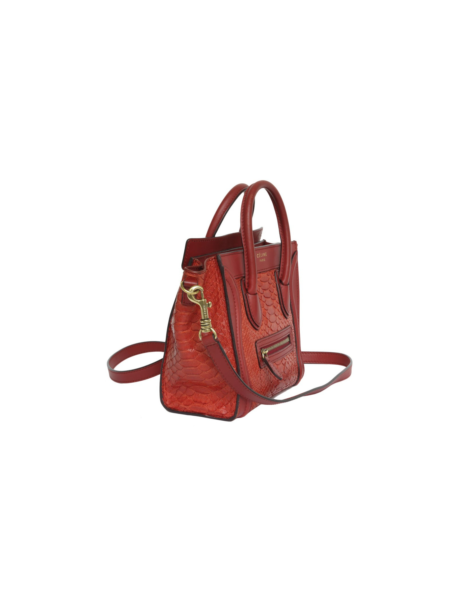 Celine 'Nano' bag in red leather and python. Gilded metal hardware. Zip closure.