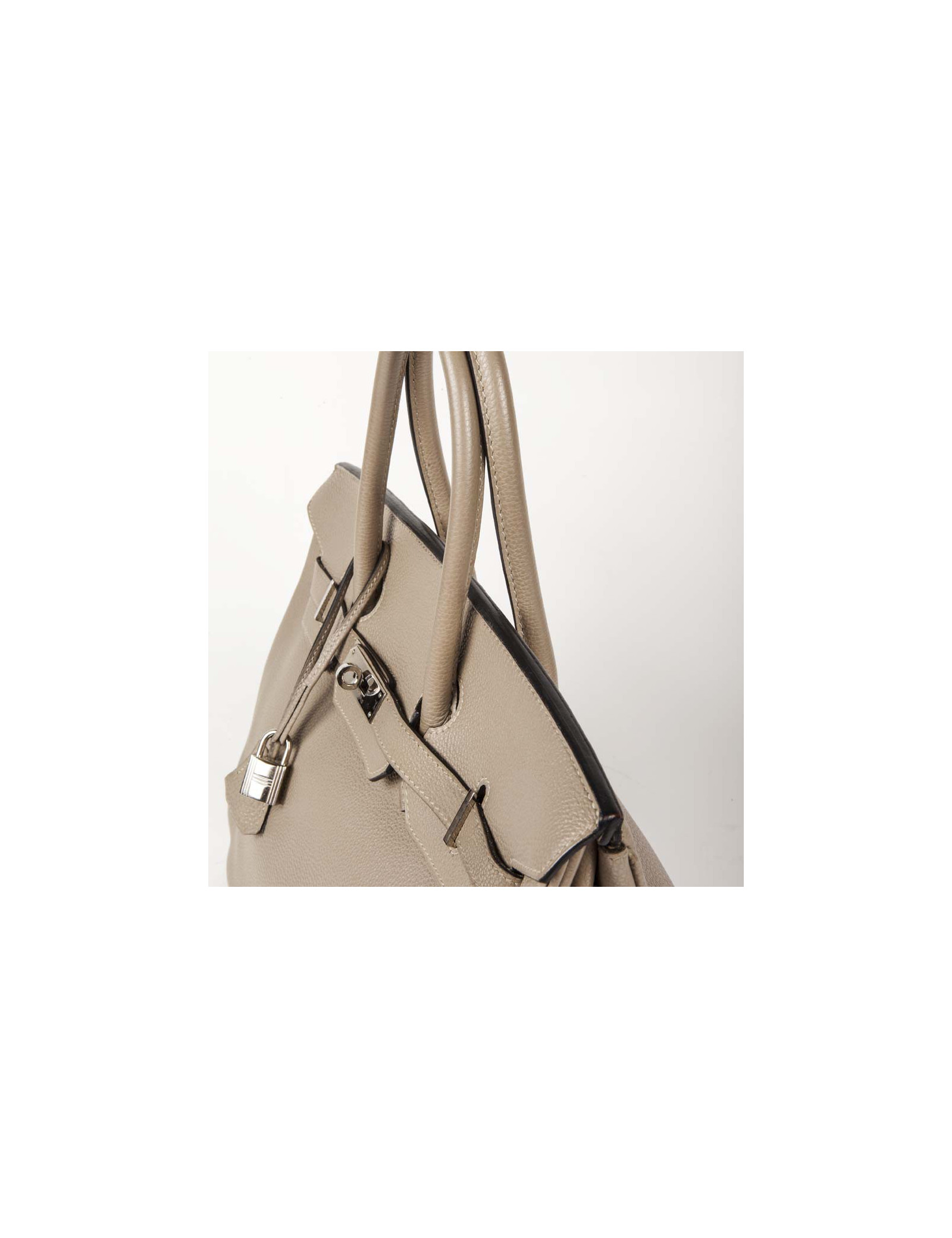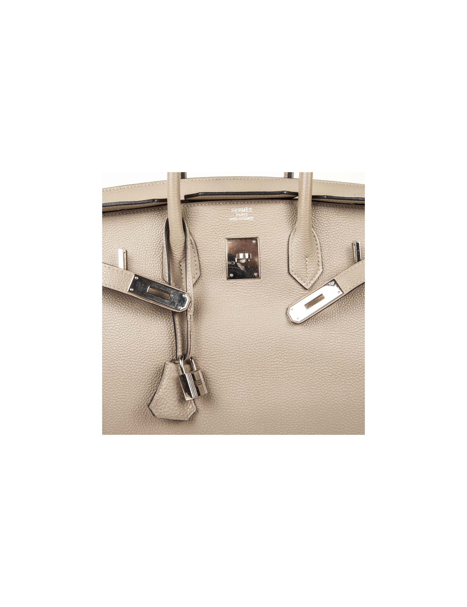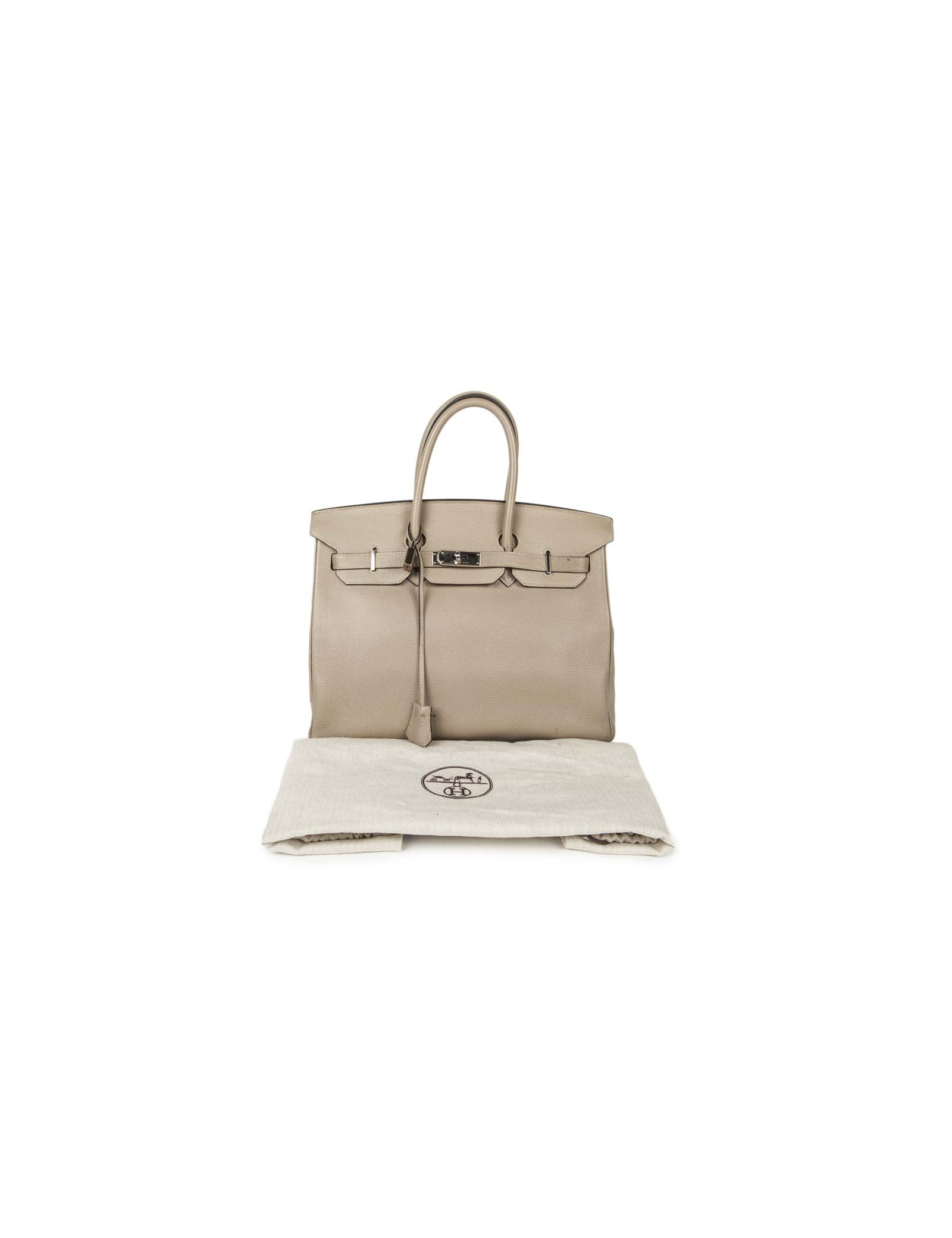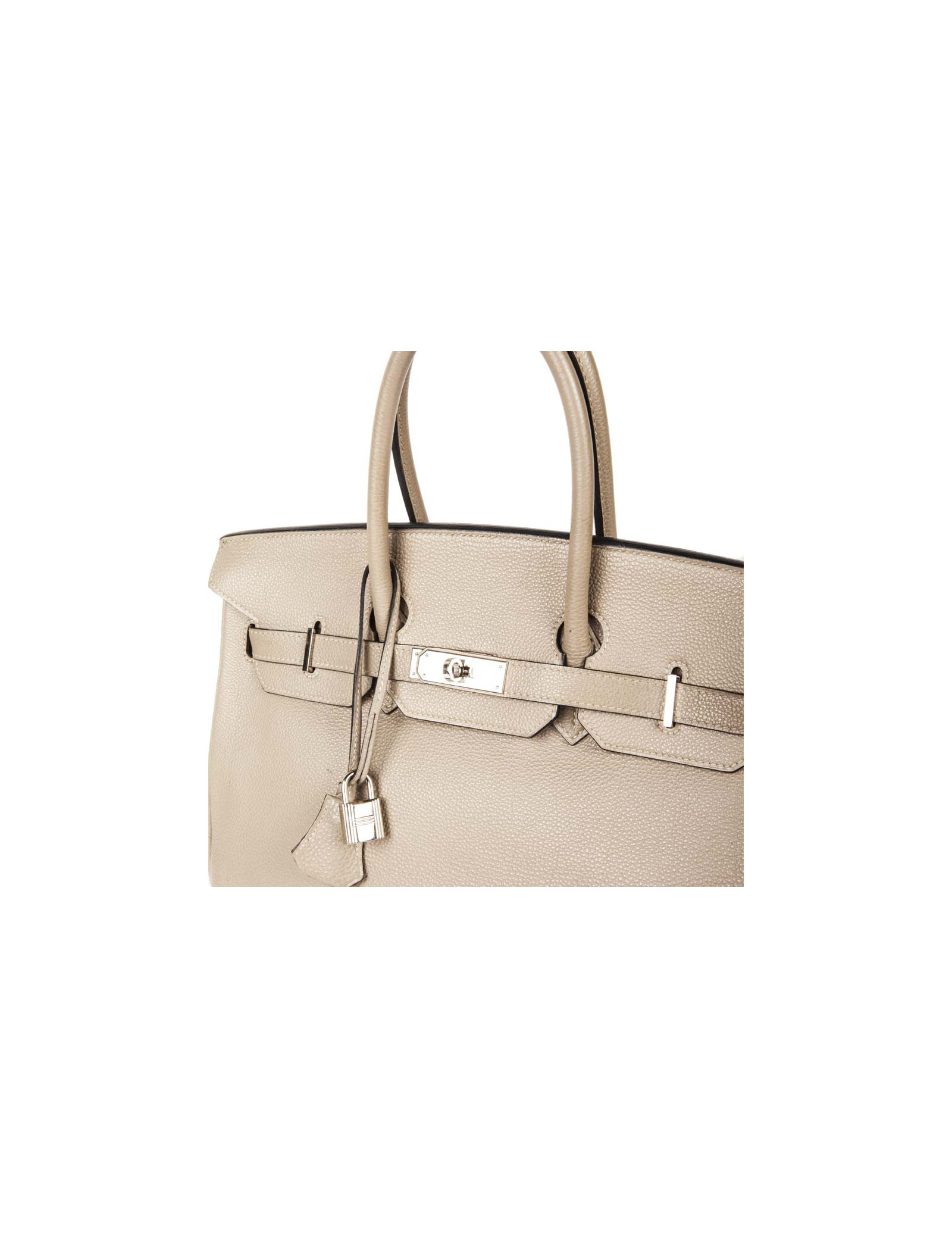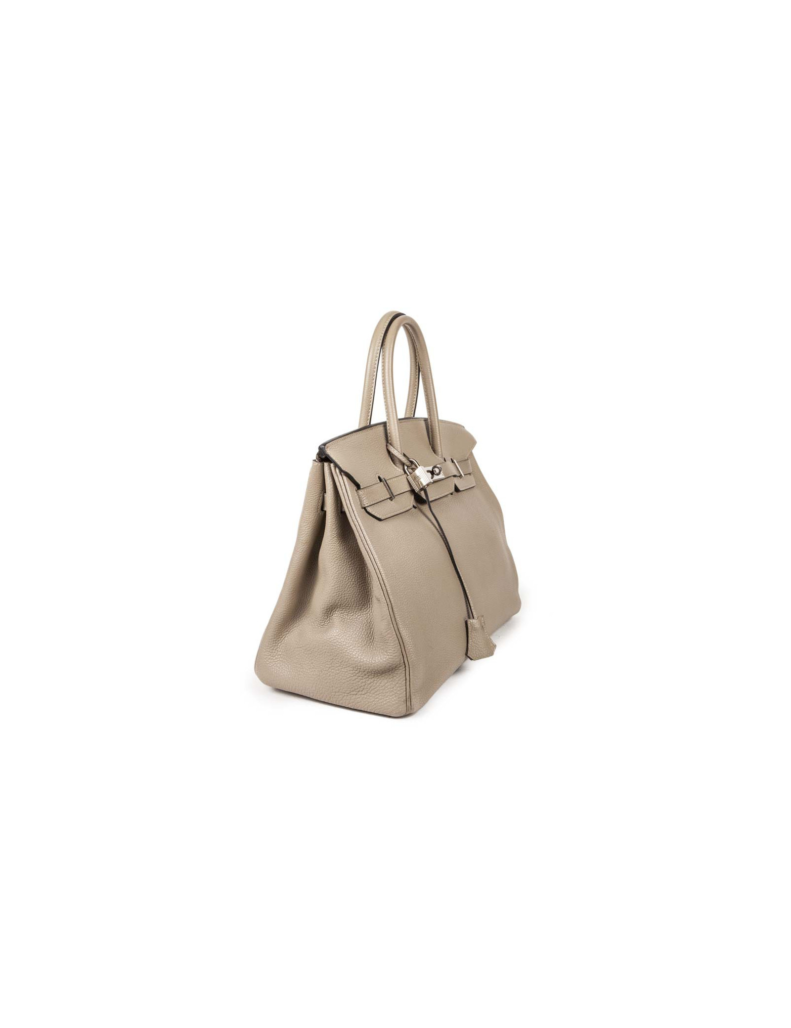 Sold TOTES HERMES Victoria bag in Clémence young bull leather HERMES 34842 3,500.00 € HERMES Victoria size 35 Condition : very goodMade in FranceCollection : Victoria II fourre-tout (tote bag) 35Gender : womanMaterial : grained young bull leatherLining : H micro canvasColor : étoupe (tow)Measurements : 35 x 23 x 17 cmLetter : M in a squareYear : 2009Hardware : palladium silver finish metalDetails : zipper pull, padlock and keys (2). Hand,... View