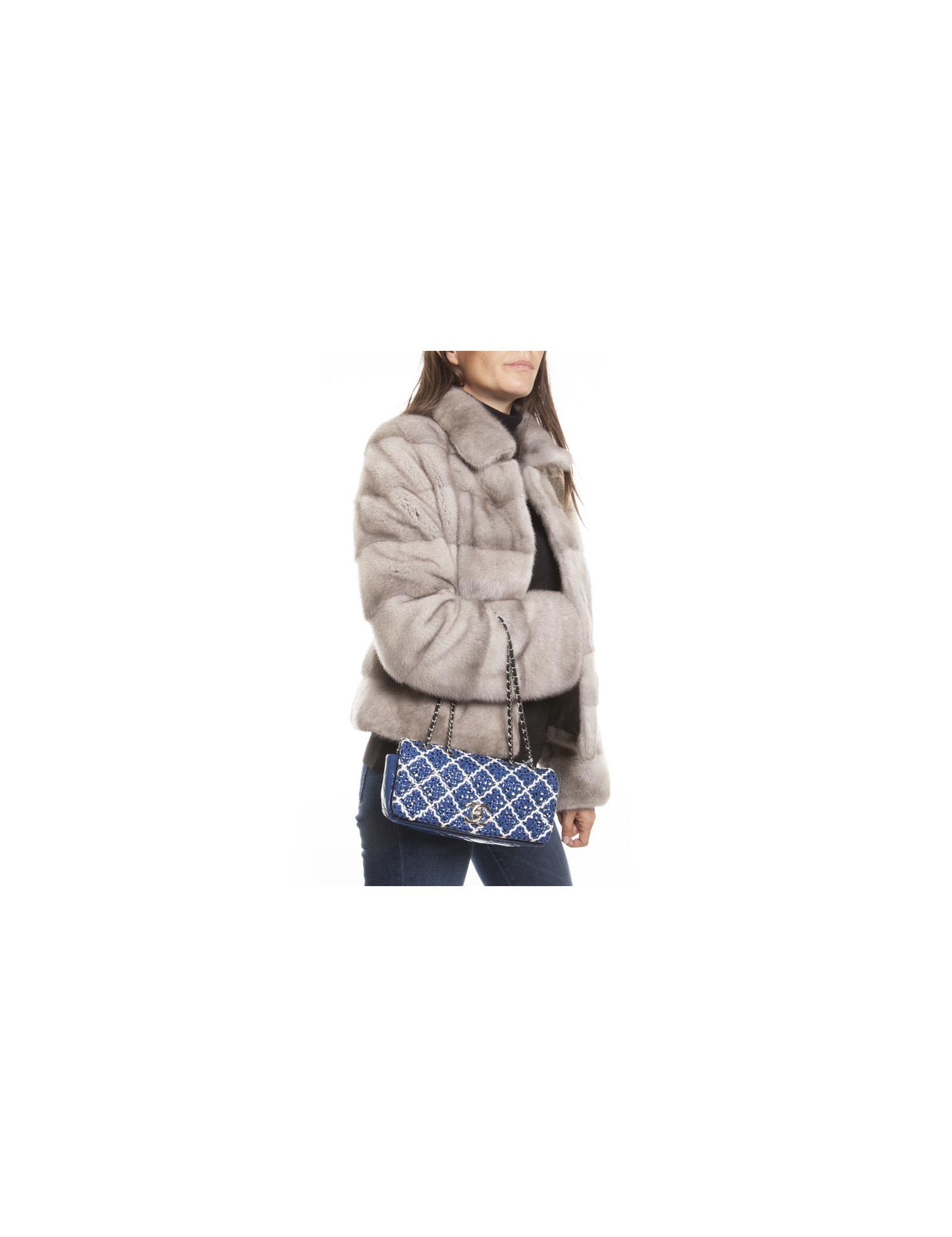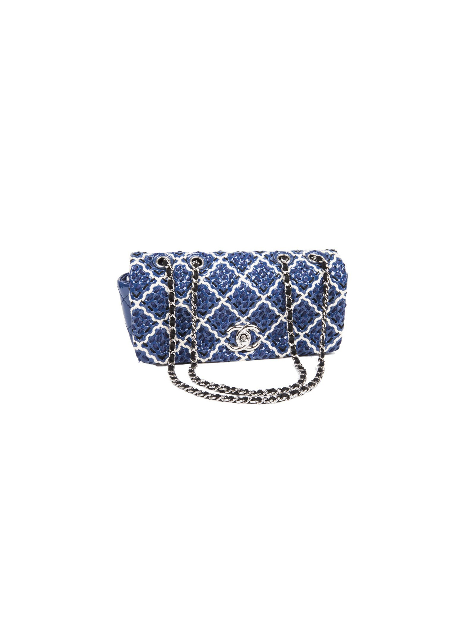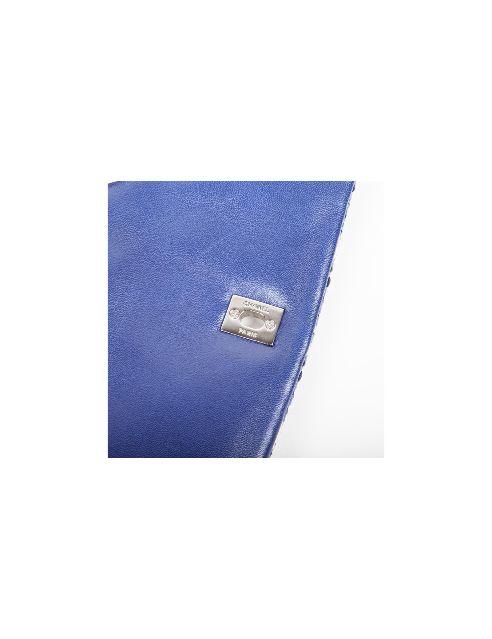 Chanel bag wand patent leather blue Gypsy, rabat and back embroidery of white, blue and black way son quilted, silver chain and large grains tape strap black, CC interwoven silver metal clasp. Hologram 1444... Without authenticity card. Worn on the shoulder.