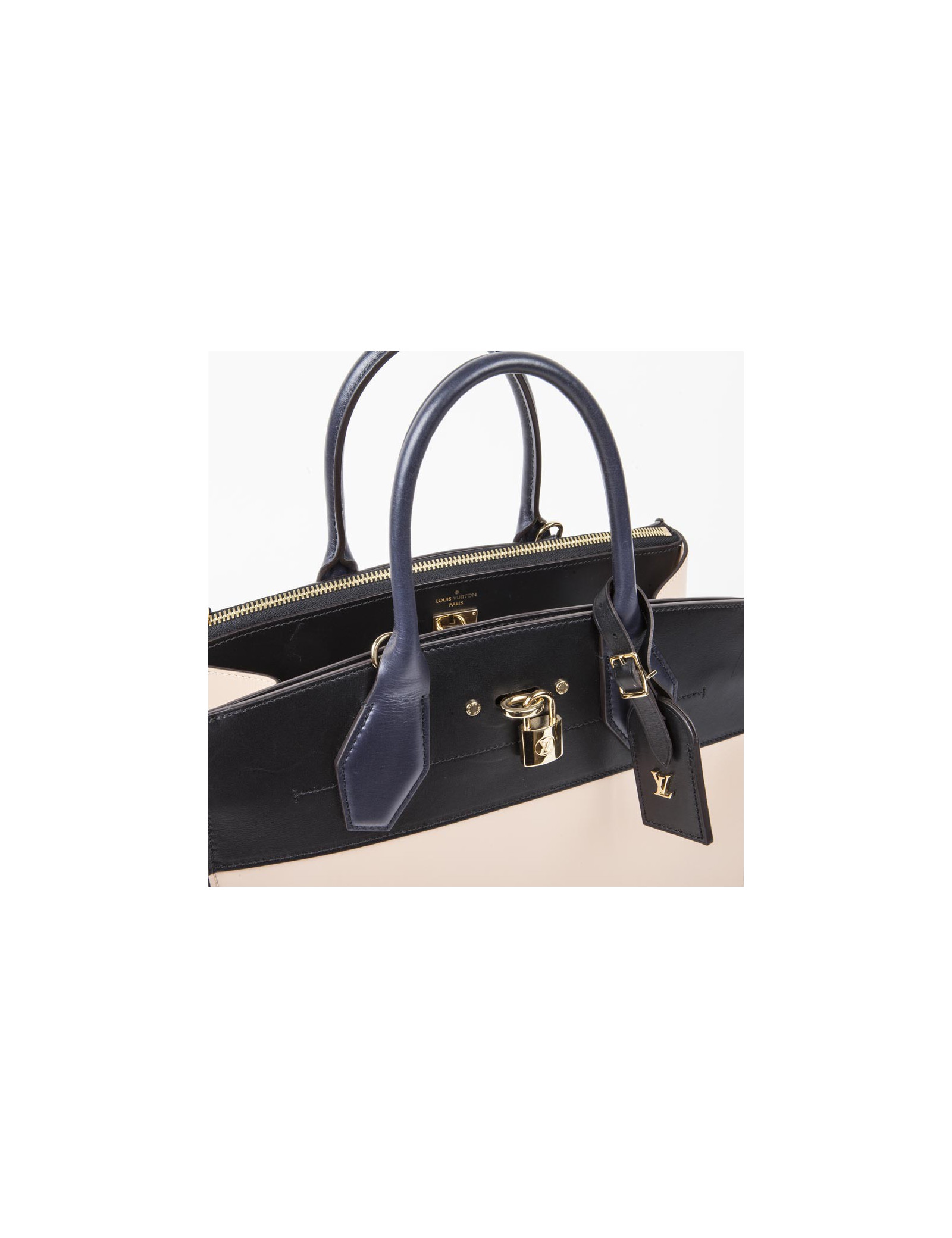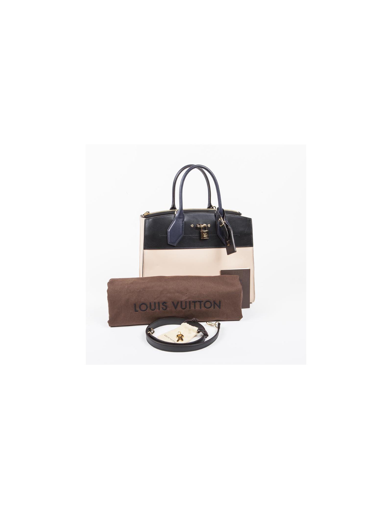"City MM steamer" bag of the Maison Louis Vuitton HABs smooth leather beige and Blue Navy and black. Golden metal parts. Door-address with metallic LV signature. Serious padlock. Ringed LV signature branded on the back. Removable strap 65 cm leather.