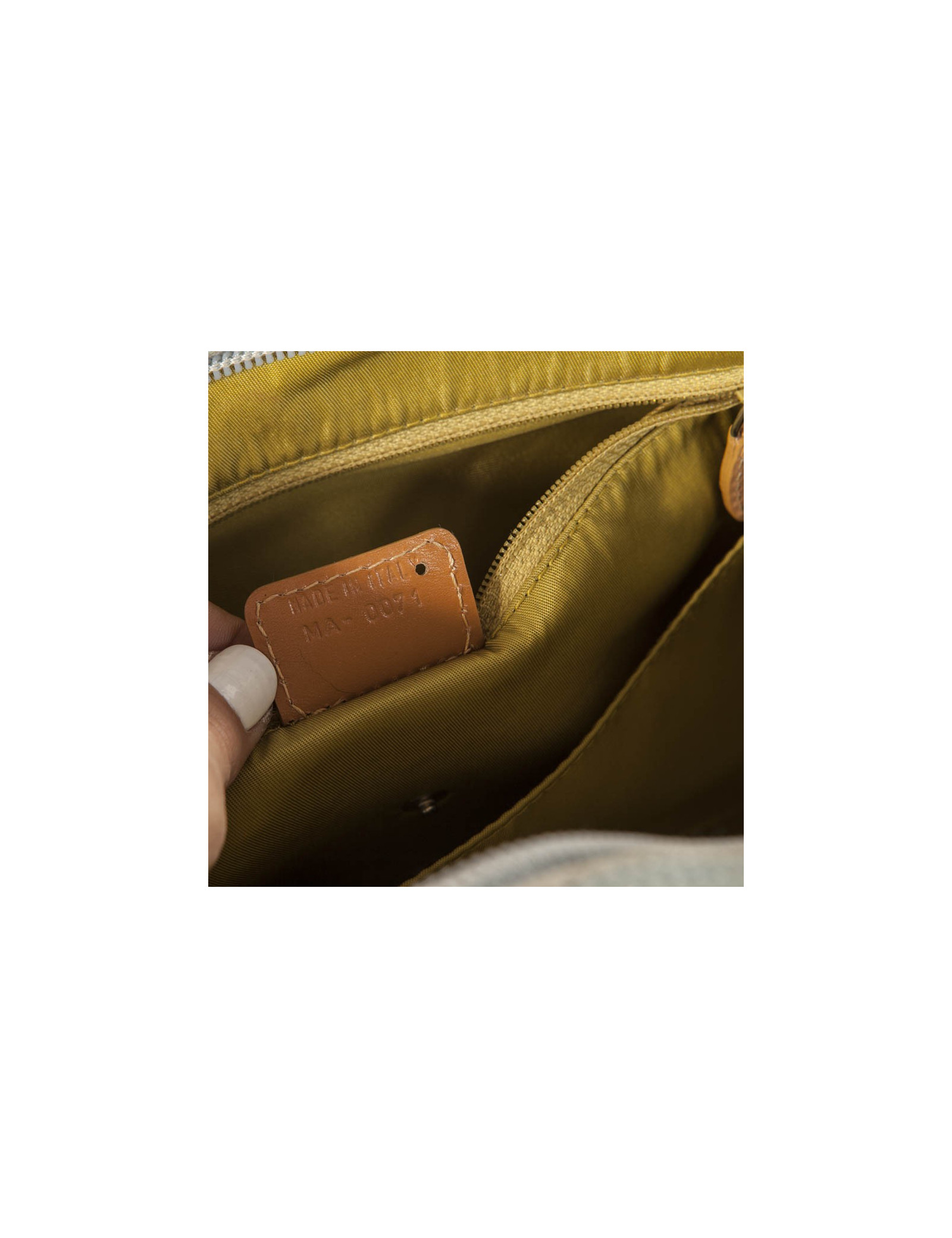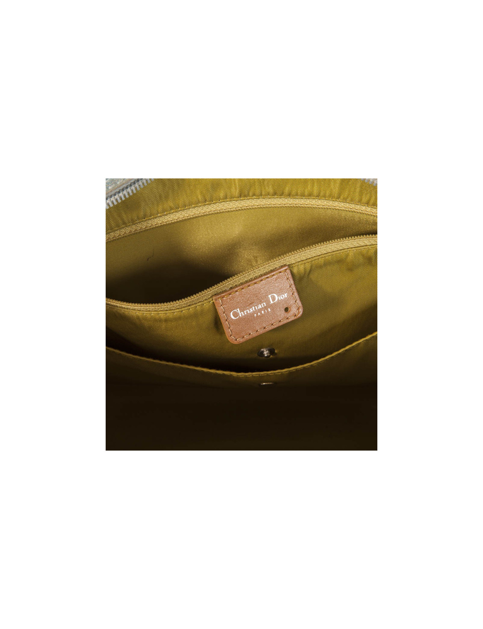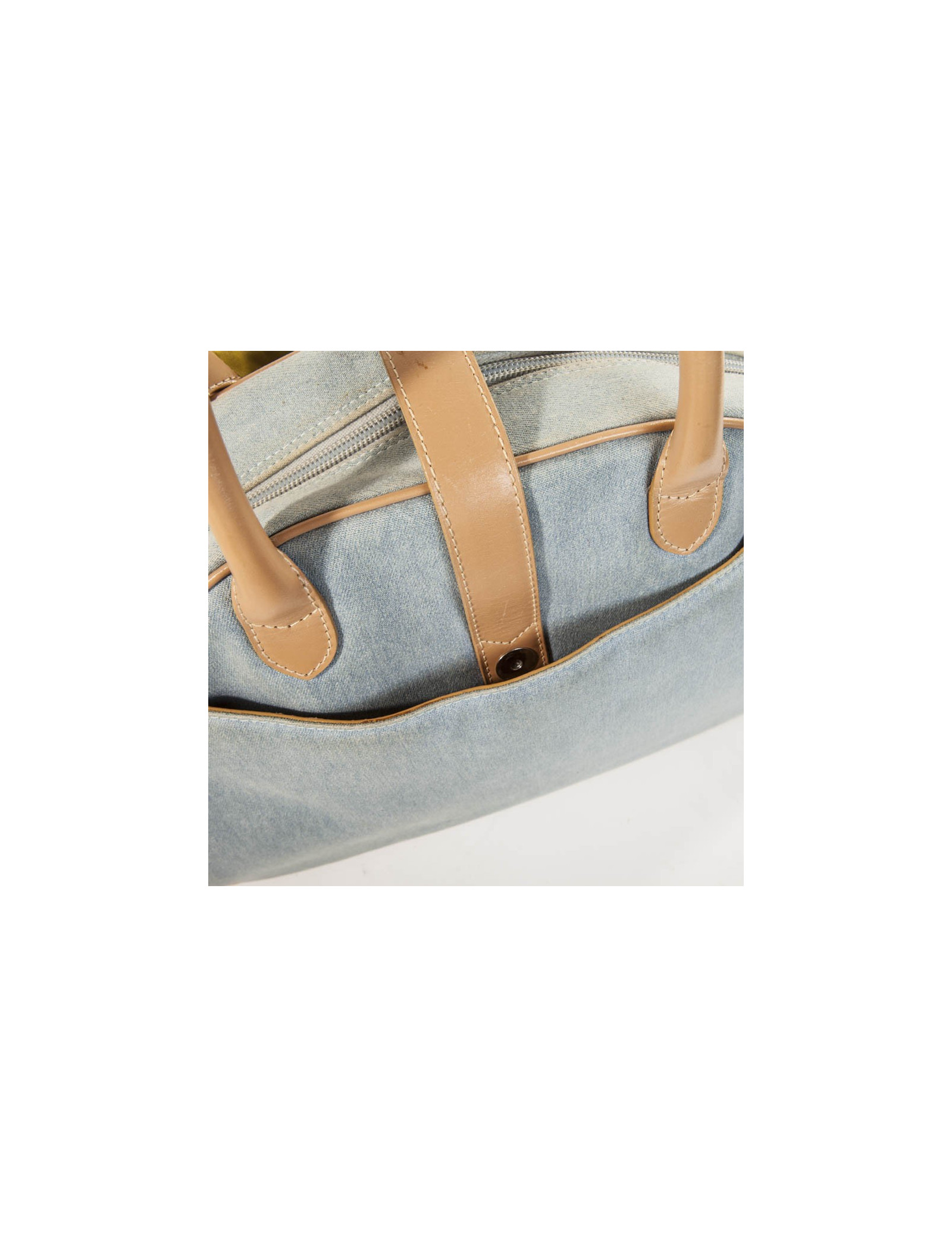 Bag Christian Dior model saddle bowling, canvas light blue jeans, Cove and stitching in beige leather and silver jewelry. It closes with a large zipper, one of the two zip is fixed because hooked by the lock (the key is lost) but it can be closed using the other zip. The two front pockets close by Velcro strips. Inside is green anise Satin Canvas, there are 4 small pockets, a zippered pocket and a large central. (Comes from the balances).p > Serial number on the label inside: MA-0071 His general condition is good, it has a few slight use marks (see pictures). Dimensions: 40 x 25 x 13 cm Delivered in a dustbag Valois Vintage Paris