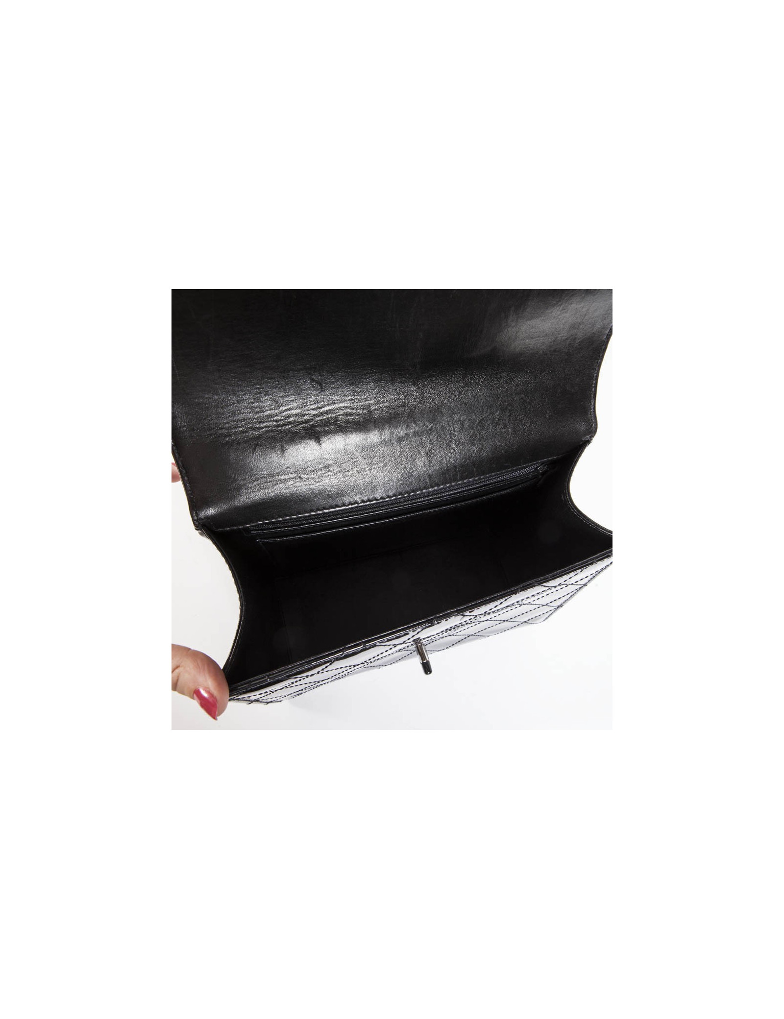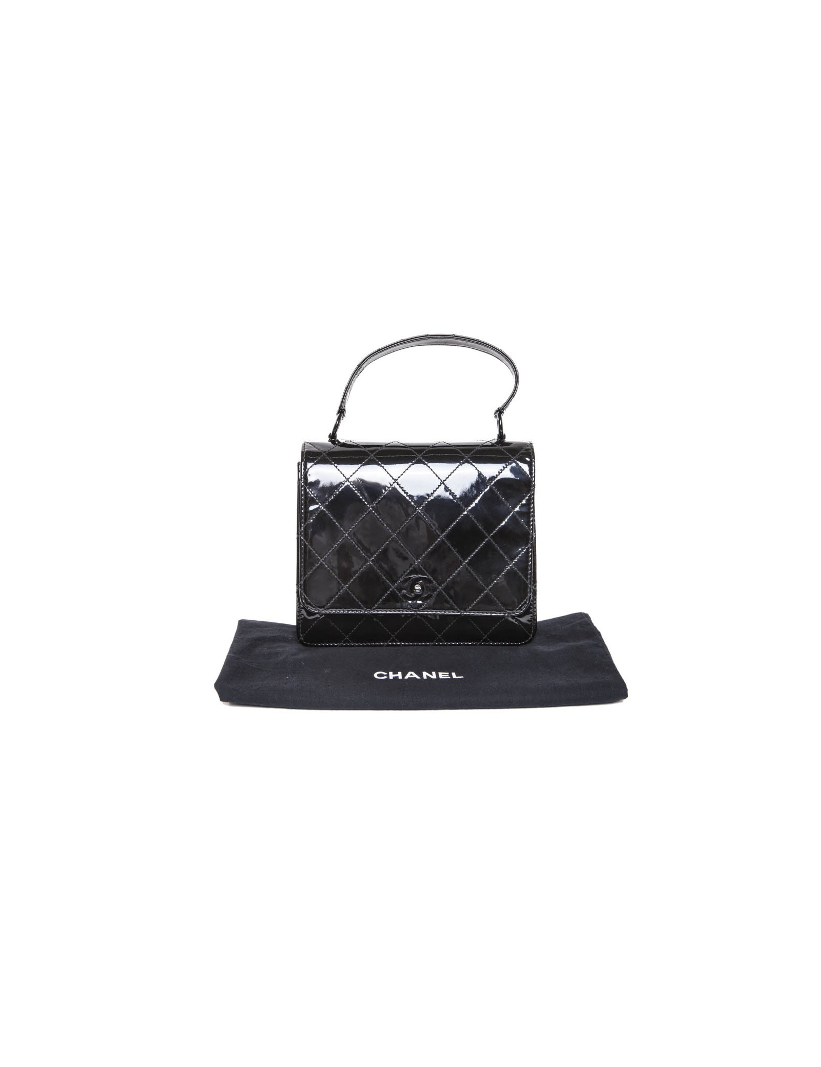Sac CHANEL cuir verni noir vintage
