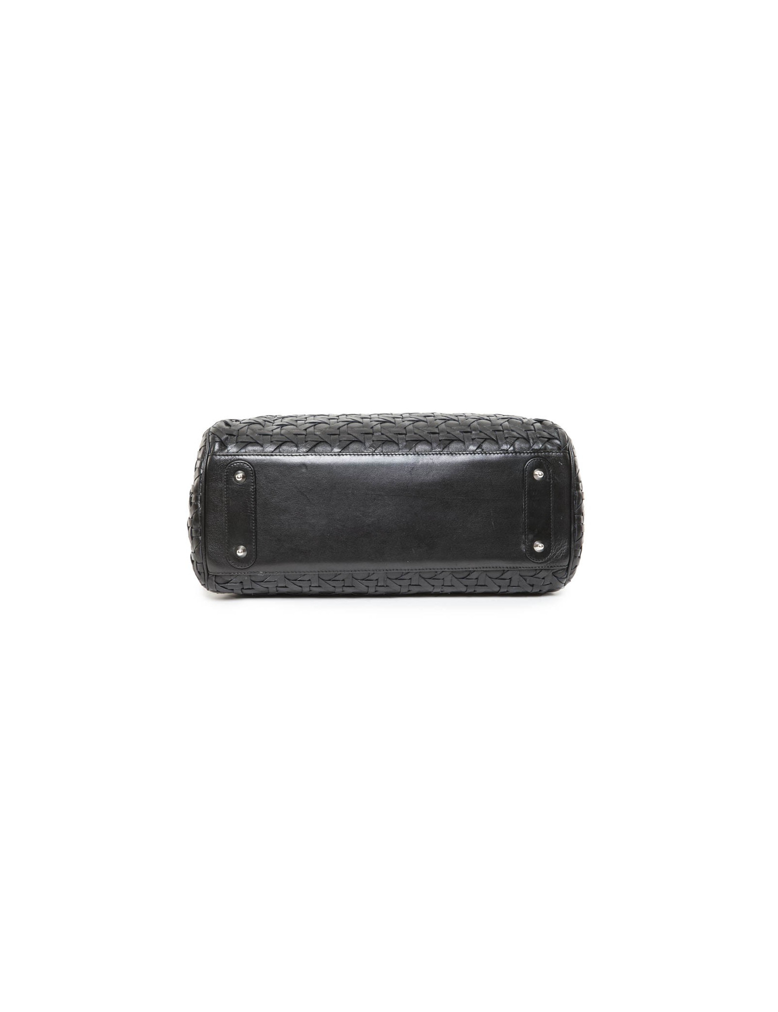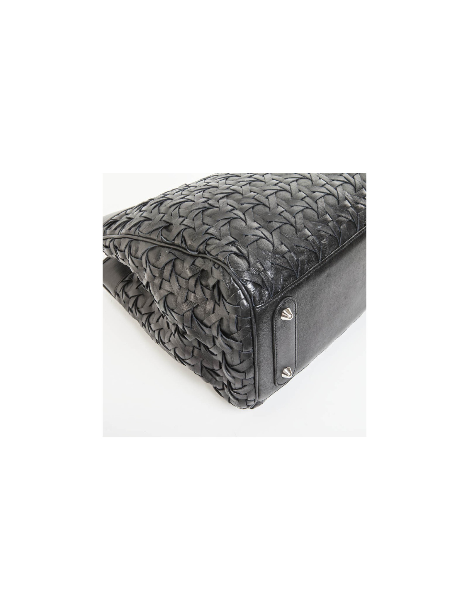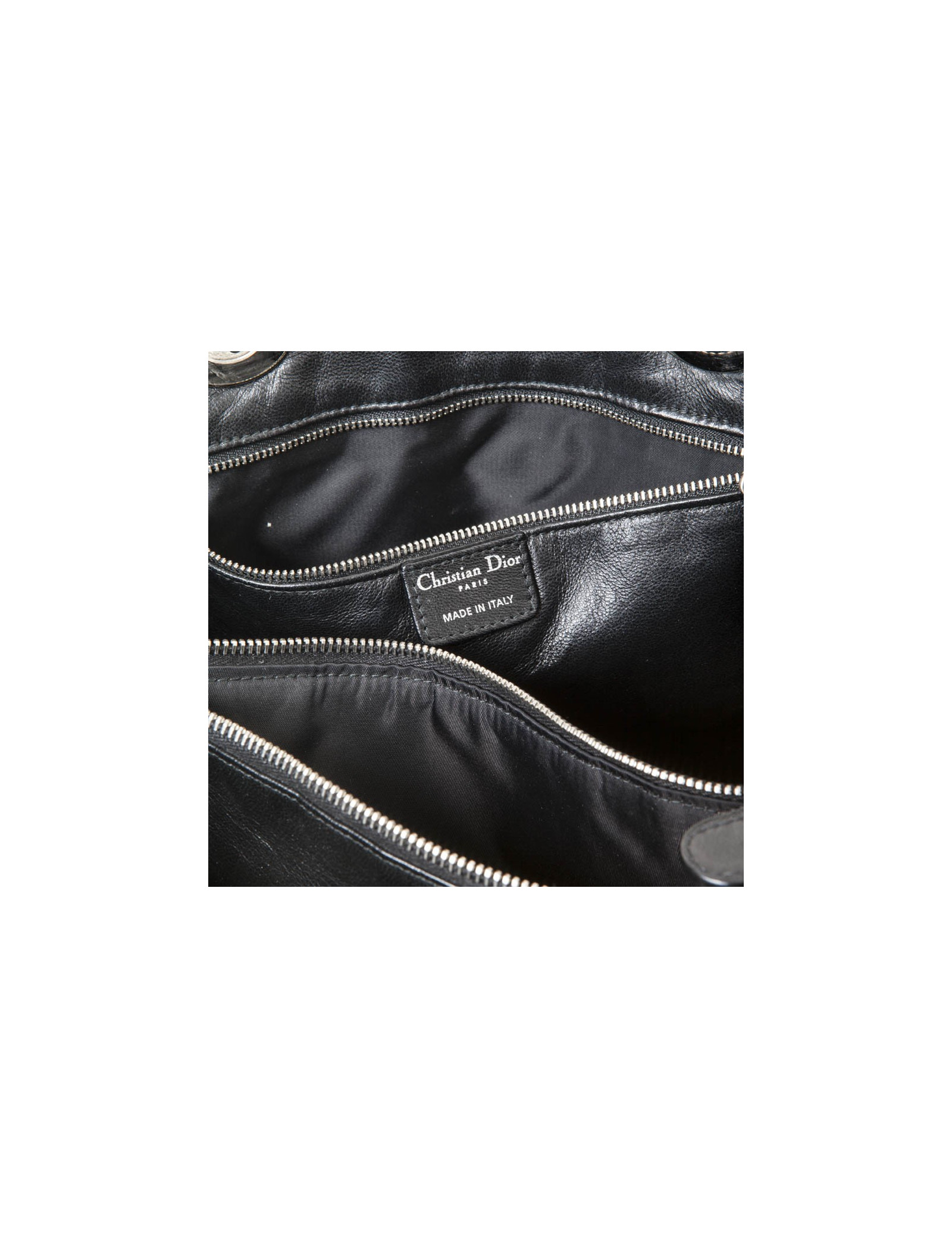 Bag shopping bag lady D, of Christian Dior black braided leather. Silver ring fittings. Inside two separated by a central pocket zippered storage spaces. The inner label serial number: O4-MA-0028.