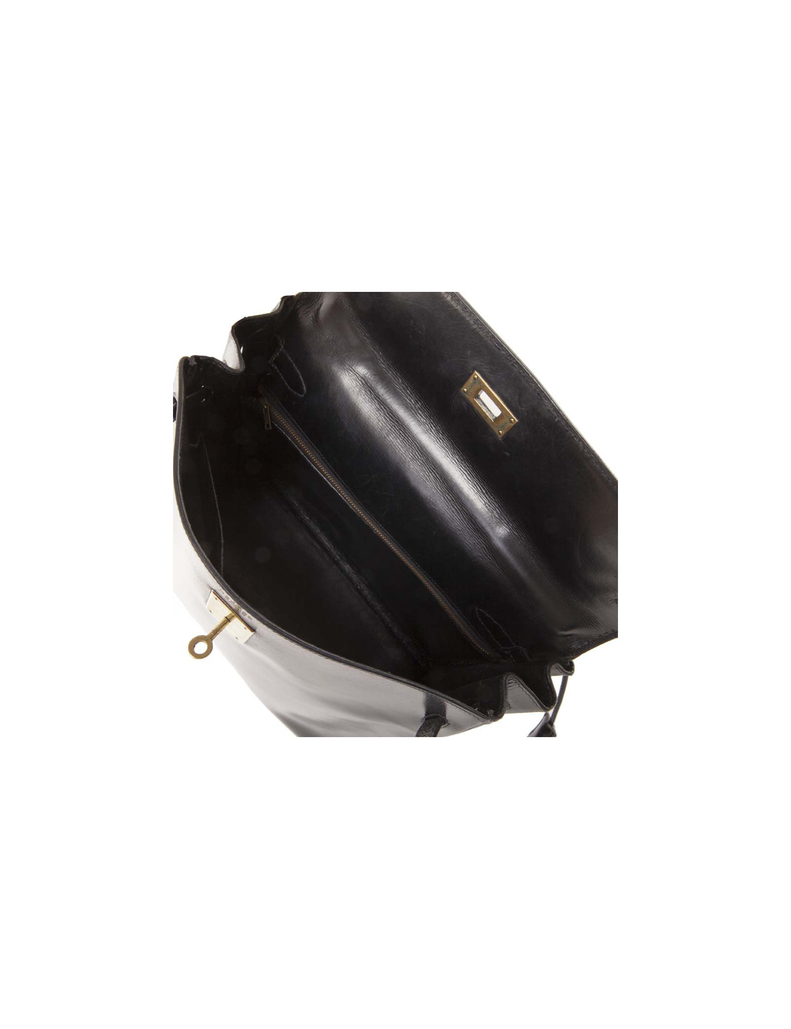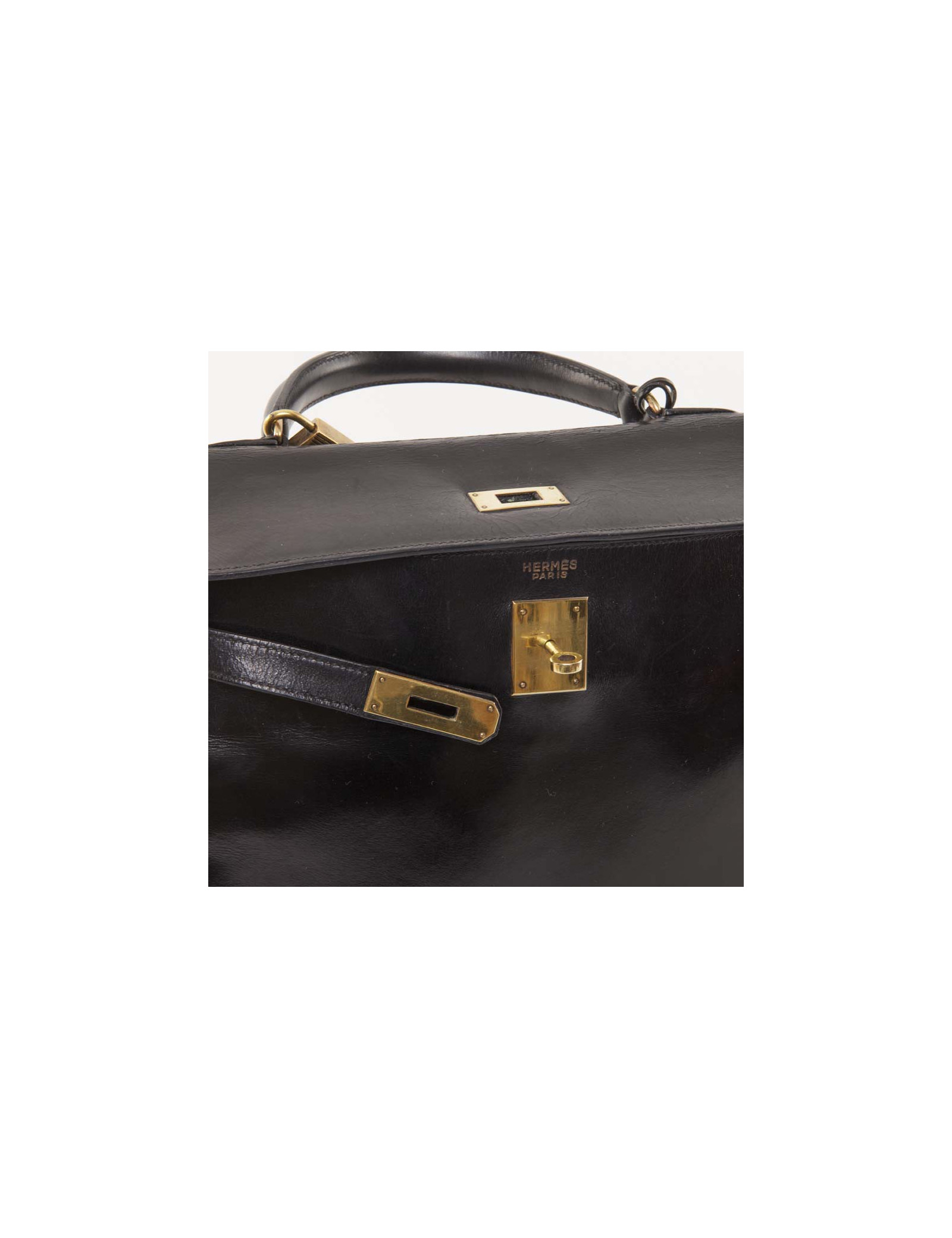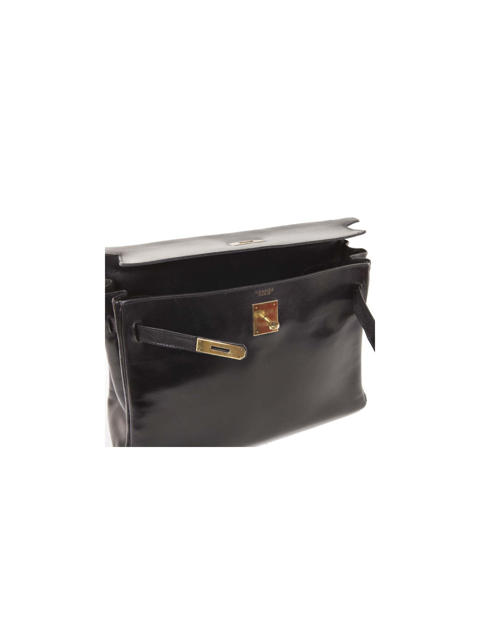 Vintage! Hermès Kelly 32 handbag in black box leather. Golden hardware. Stamp T (year 1964) but hardly readable.