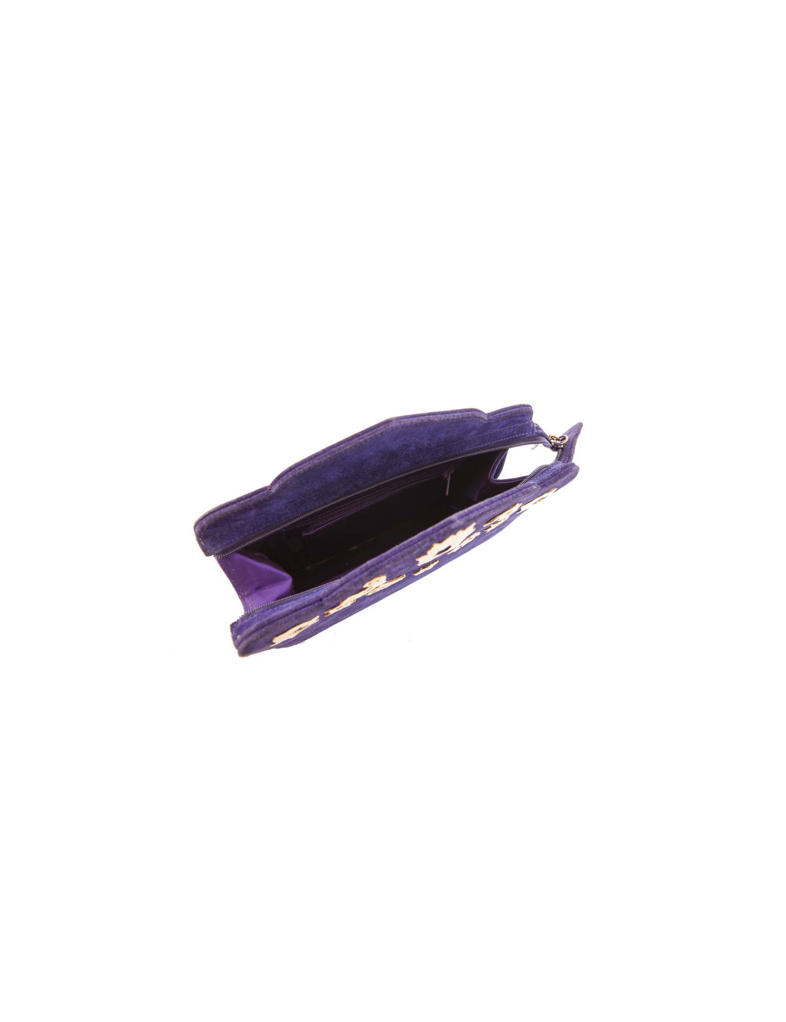 Vintage! Yves Saint Laurent clutch bag in purple velvet calf. Hardware in hammered gold metal. Zip closure.