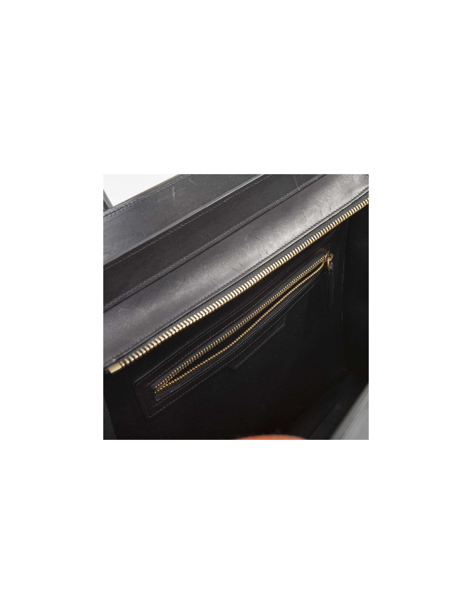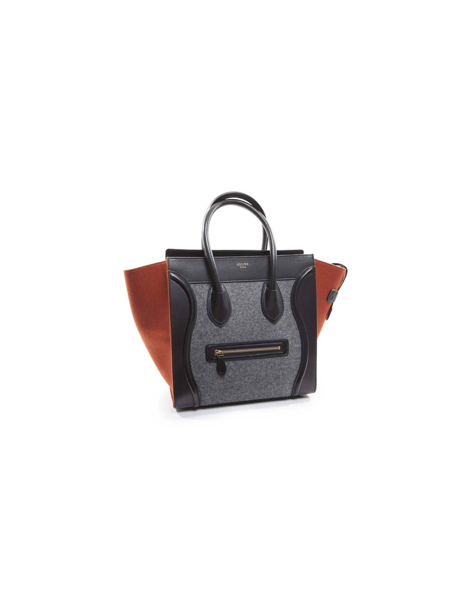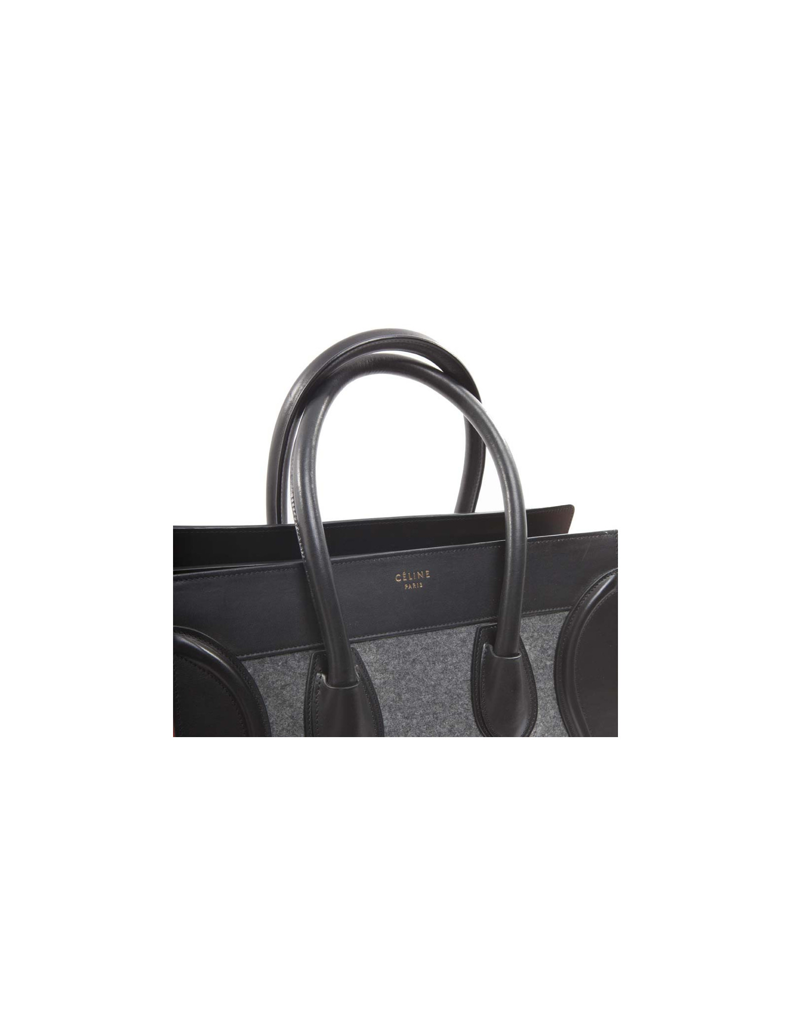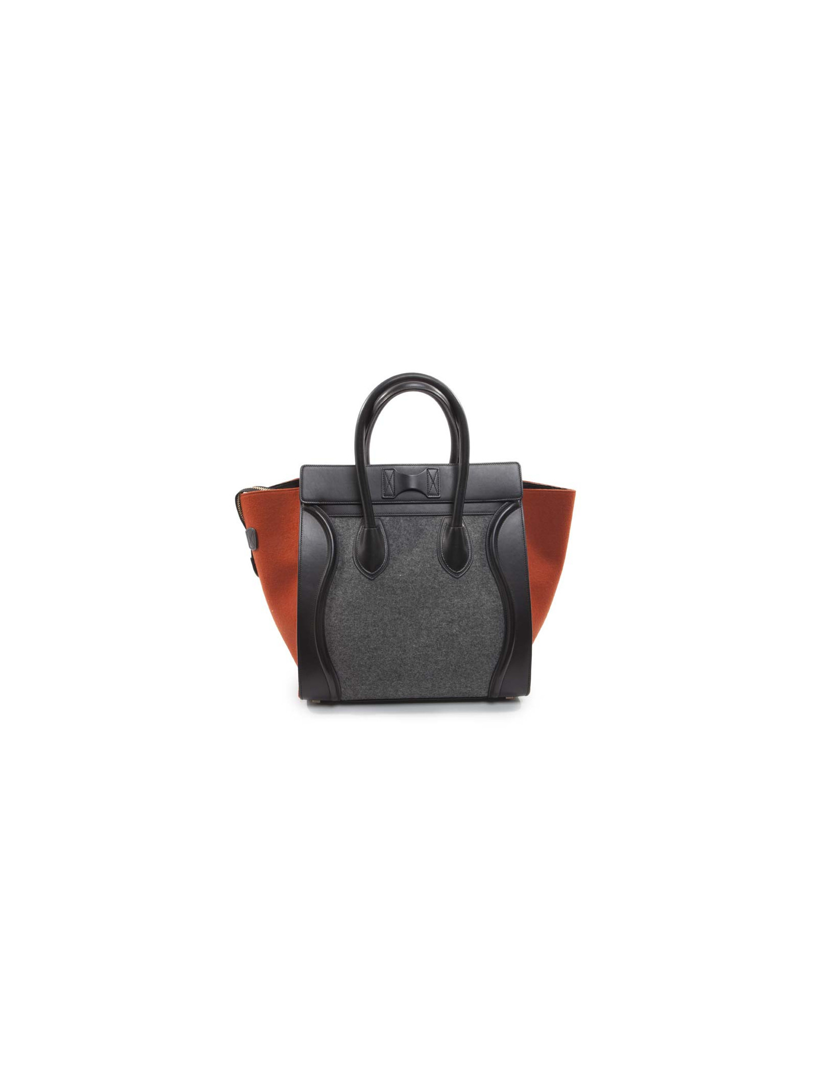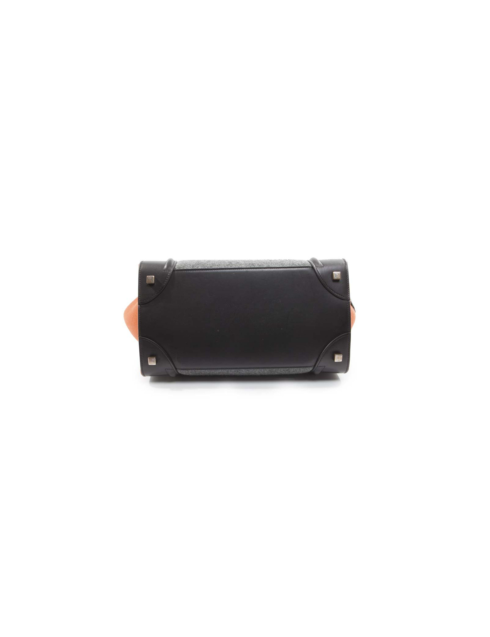 Phantom black smooth leather and ocher and gray of the Celine felt bag. Golden jewelry. Zipped. The Interior is black leather. Light scratches on the leather. In very good condition, very little done.